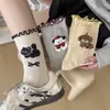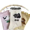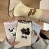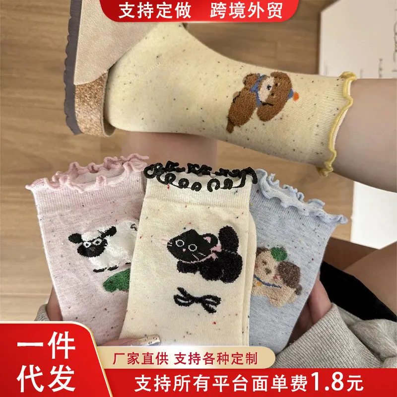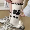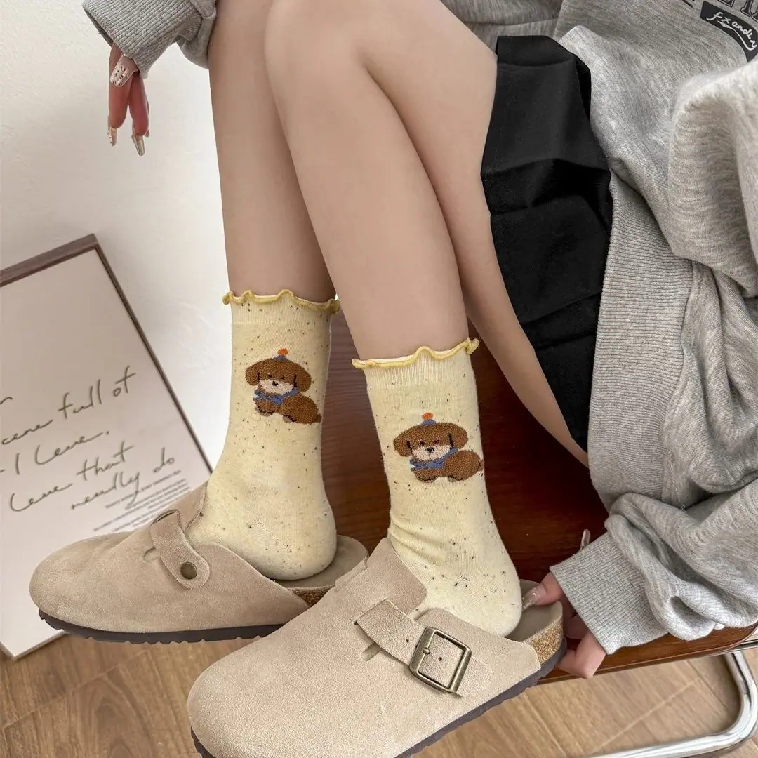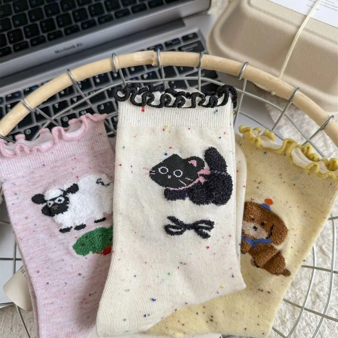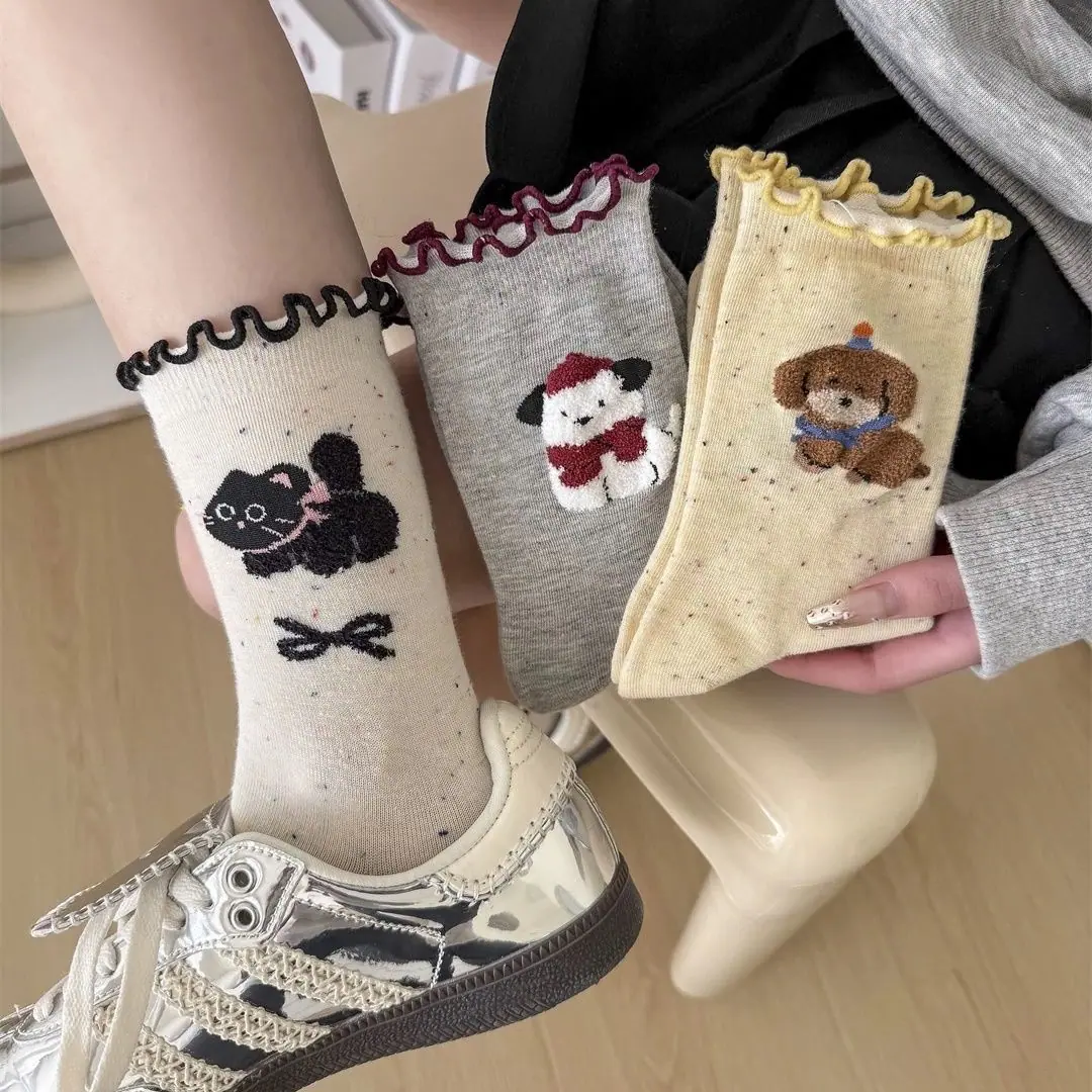 Calcetines de media caña para mujer, calcetines largos de encaje de oreja a la moda, primavera y otoño, calcetines de felpa de tubo largo versátiles de dibujos animados lindos para niñas