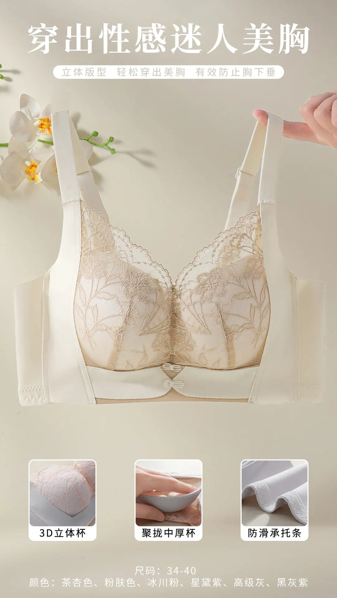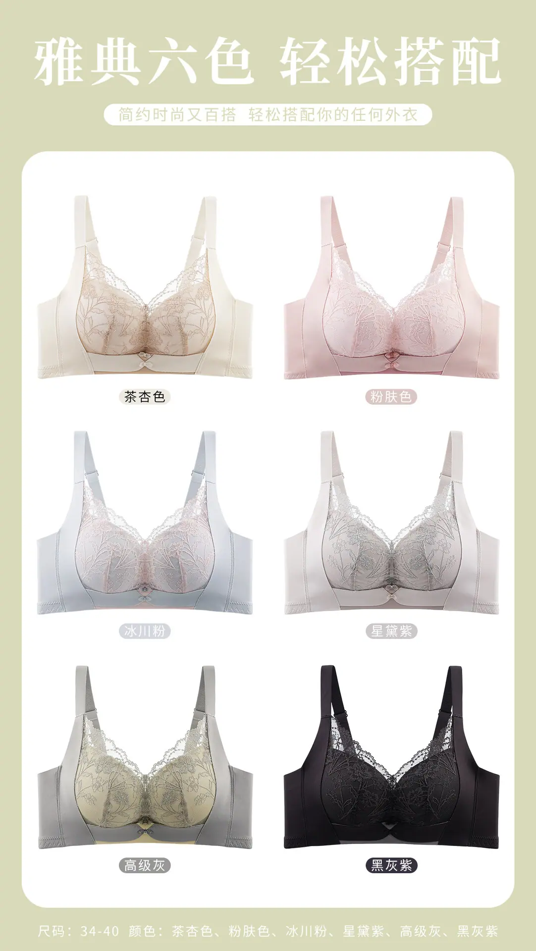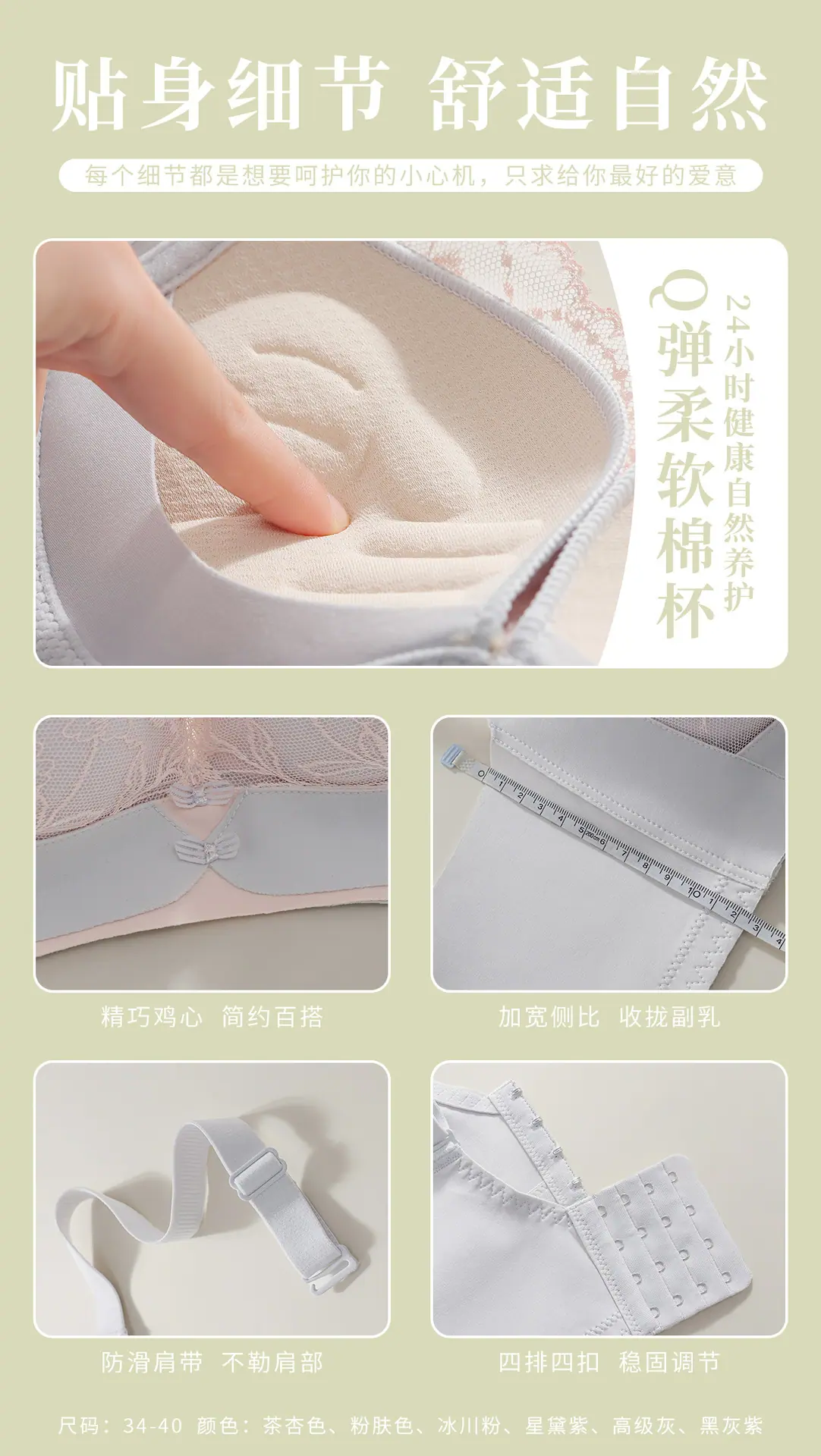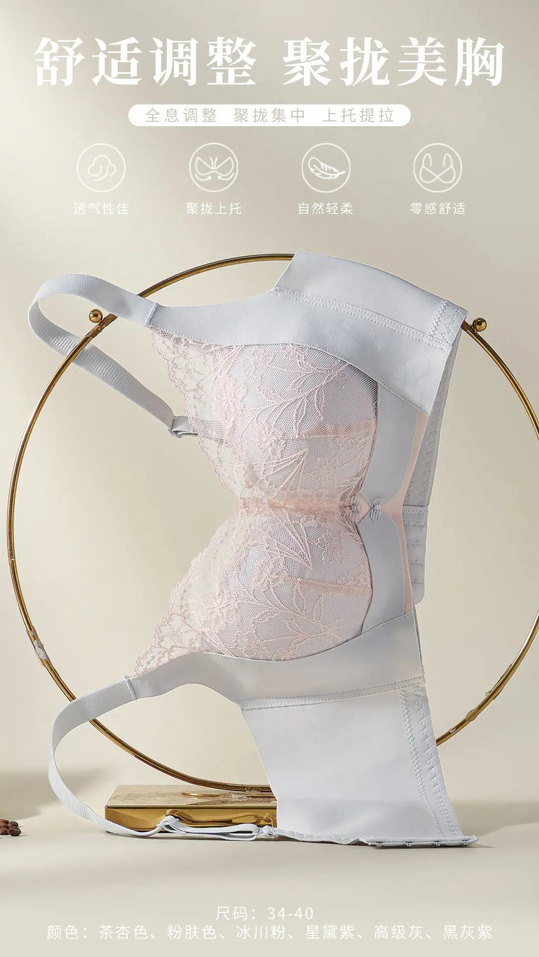 Cómodo Sujetador de Encaje Push-Up con Reunión Gancho y Ojal de Cuatro Filas Sin Magnético Sin Varilla Sin Varillas Laterales Sujetador Reunidor