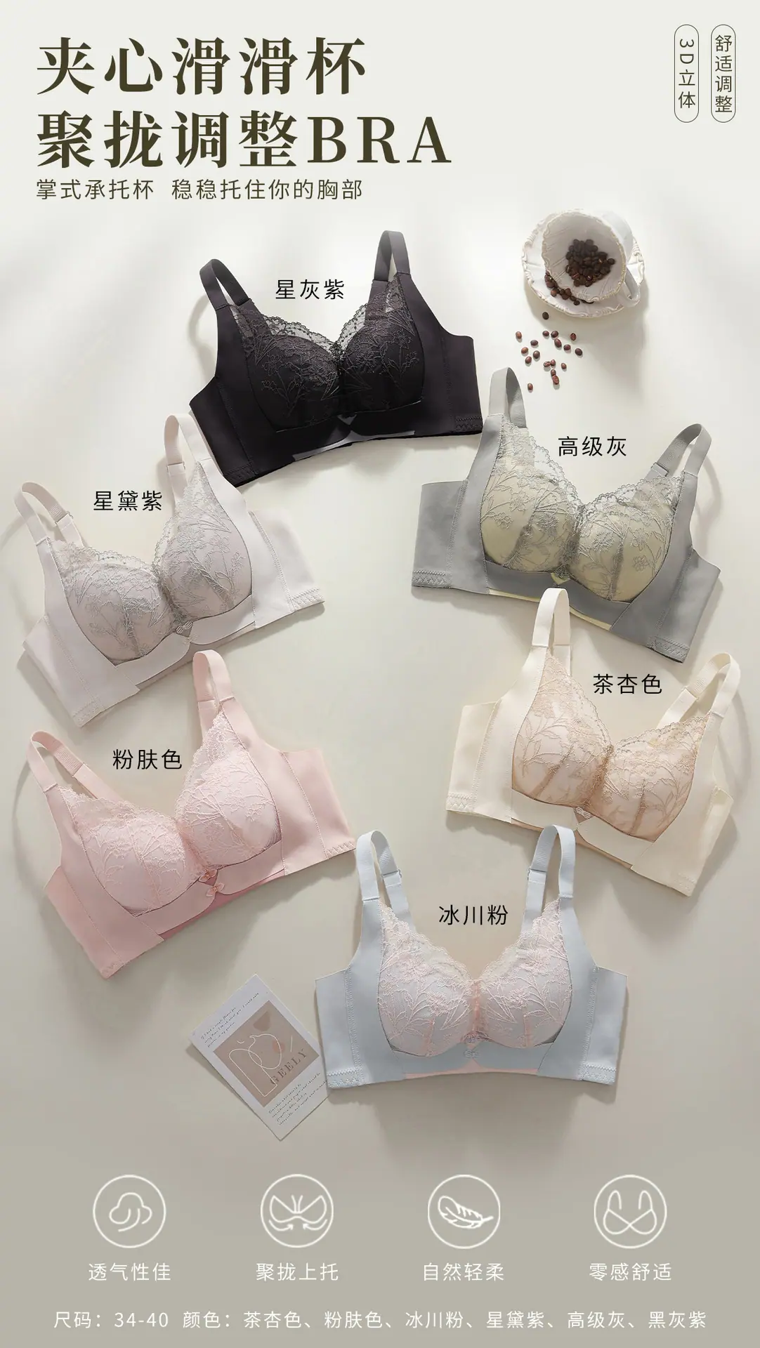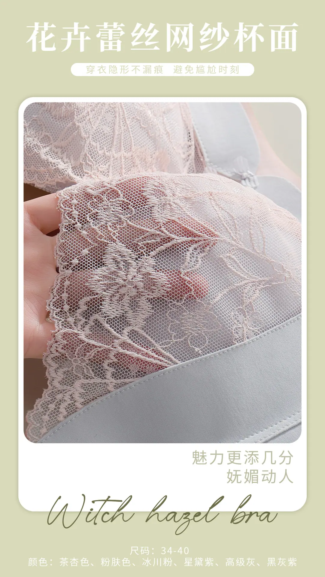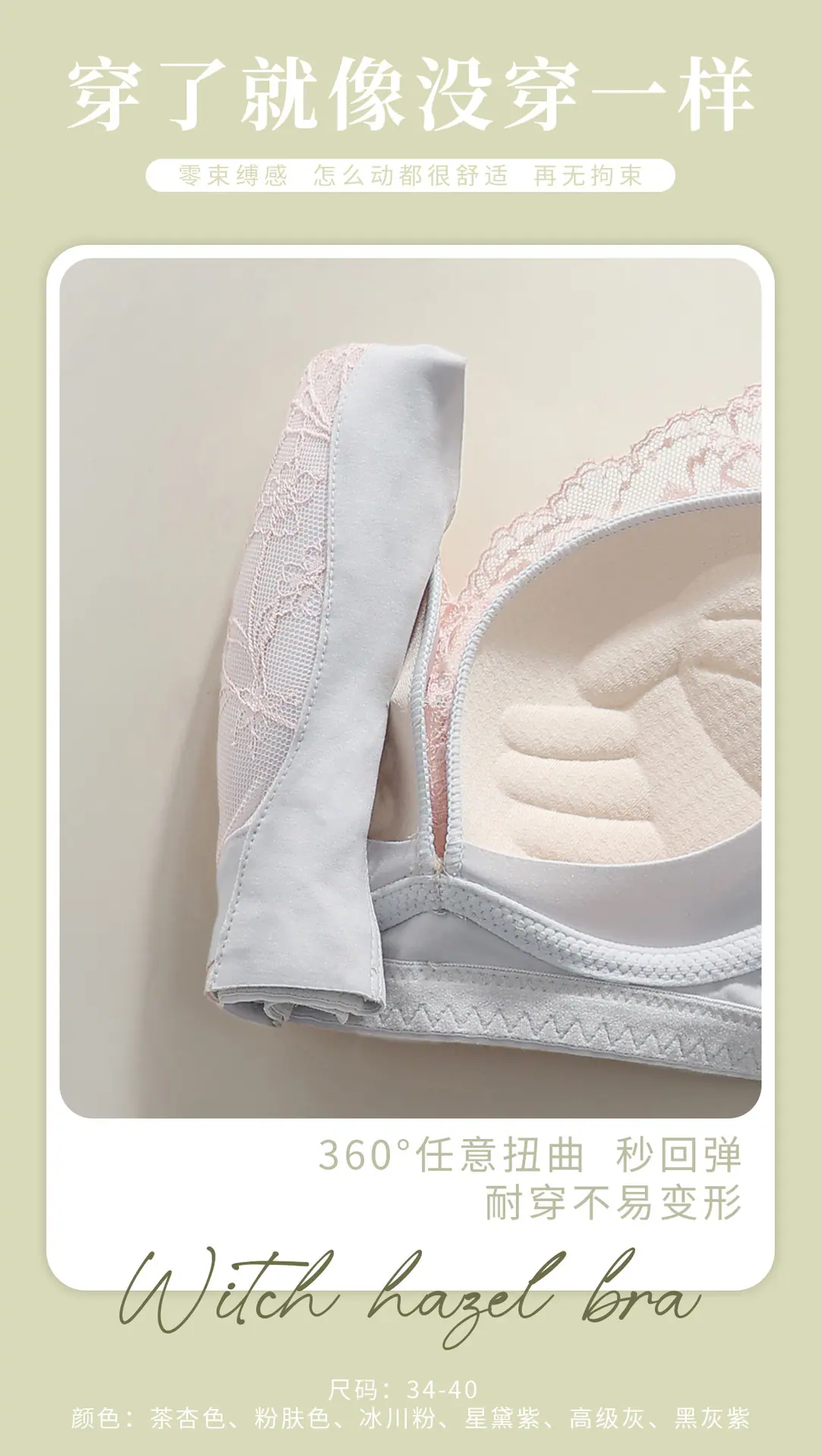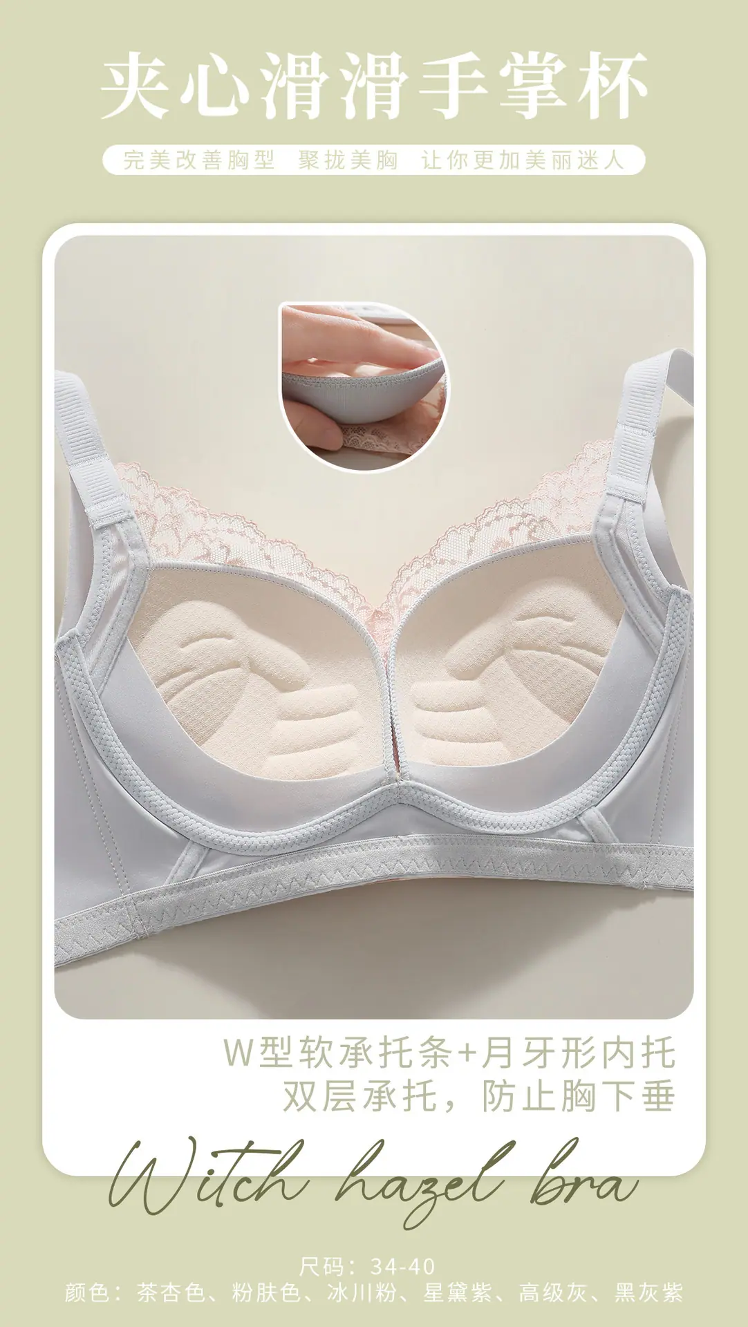 Cómodo Sujetador de Encaje Push-Up con Reunión Gancho y Ojal de Cuatro Filas Sin Magnético Sin Varilla Sin Varillas Laterales Sujetador Reunidor