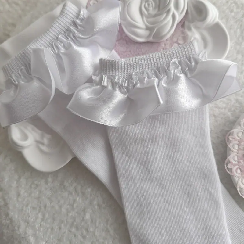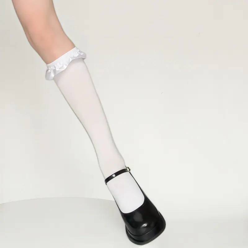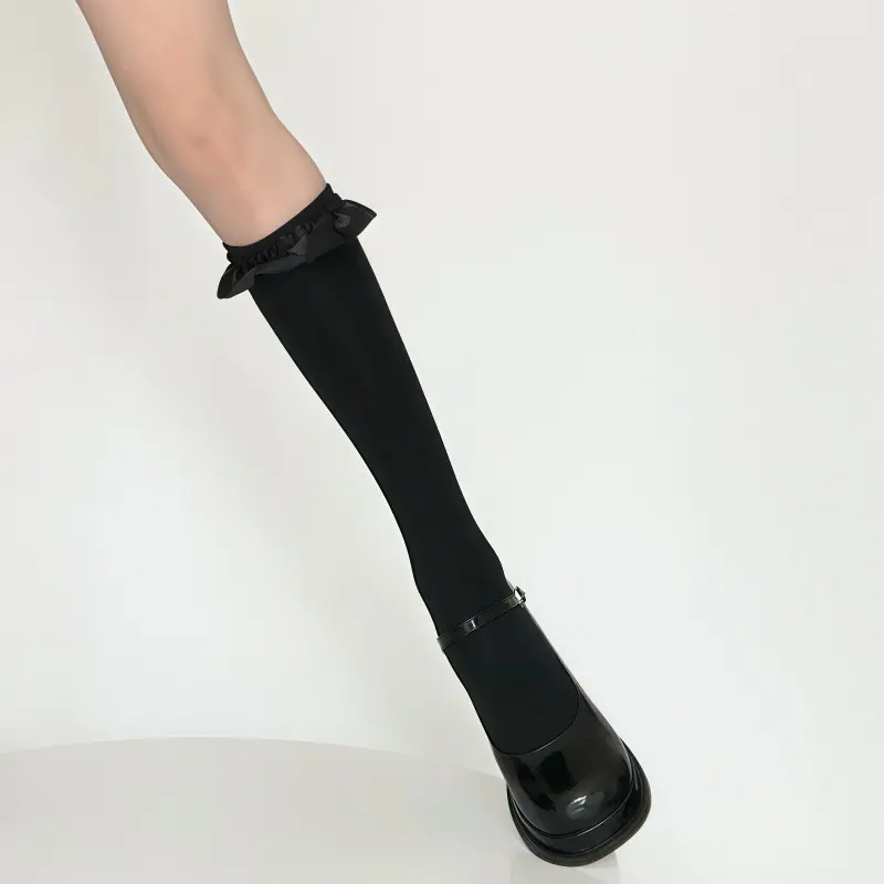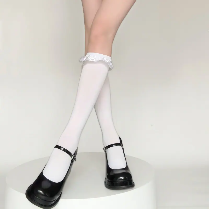 Calcetines Altos hasta la Rodilla con Volantes Kawaii Suave para Chica Japonesa JK Algodón Estudiante Lolita Calcetines de Media Caña para Mujer