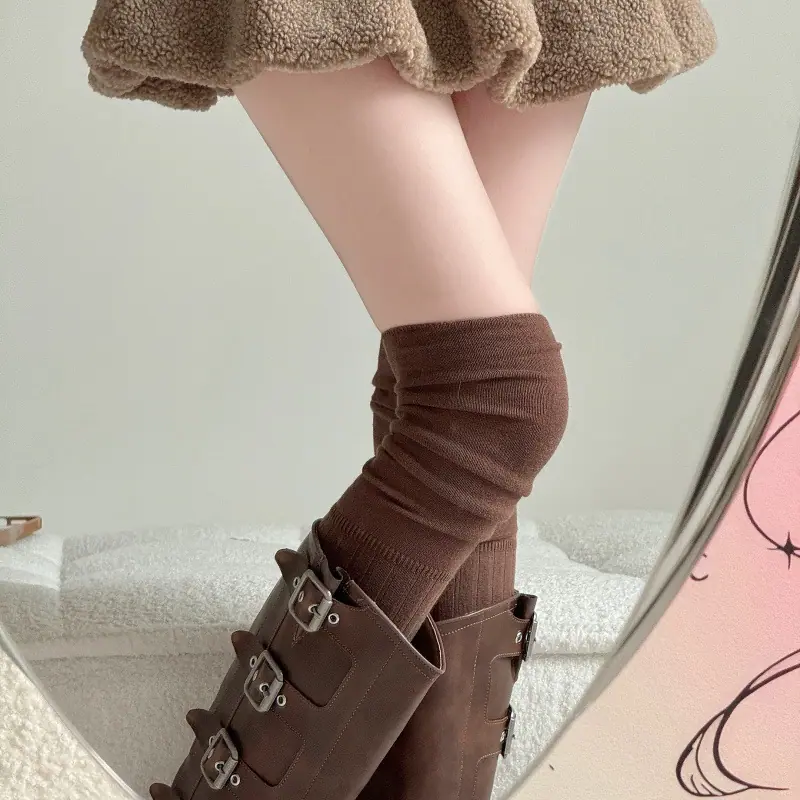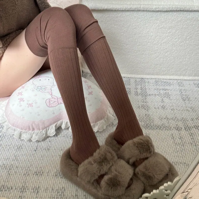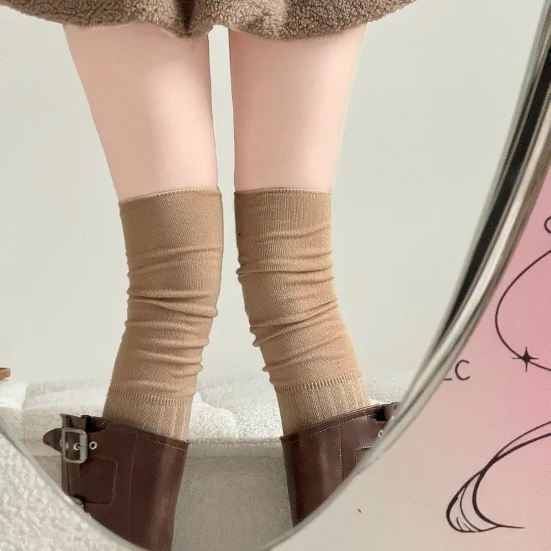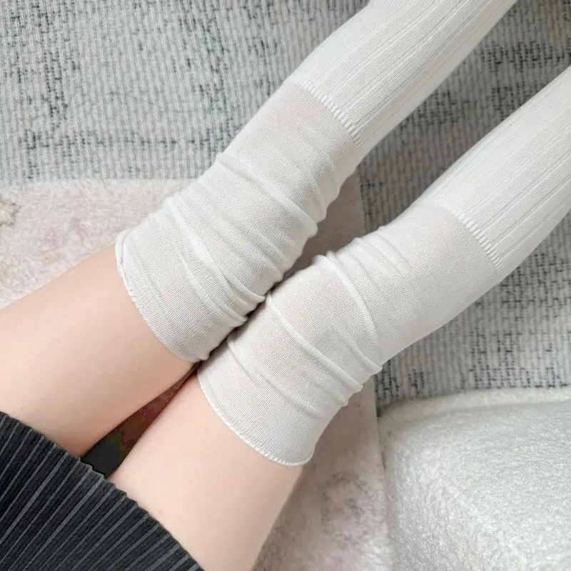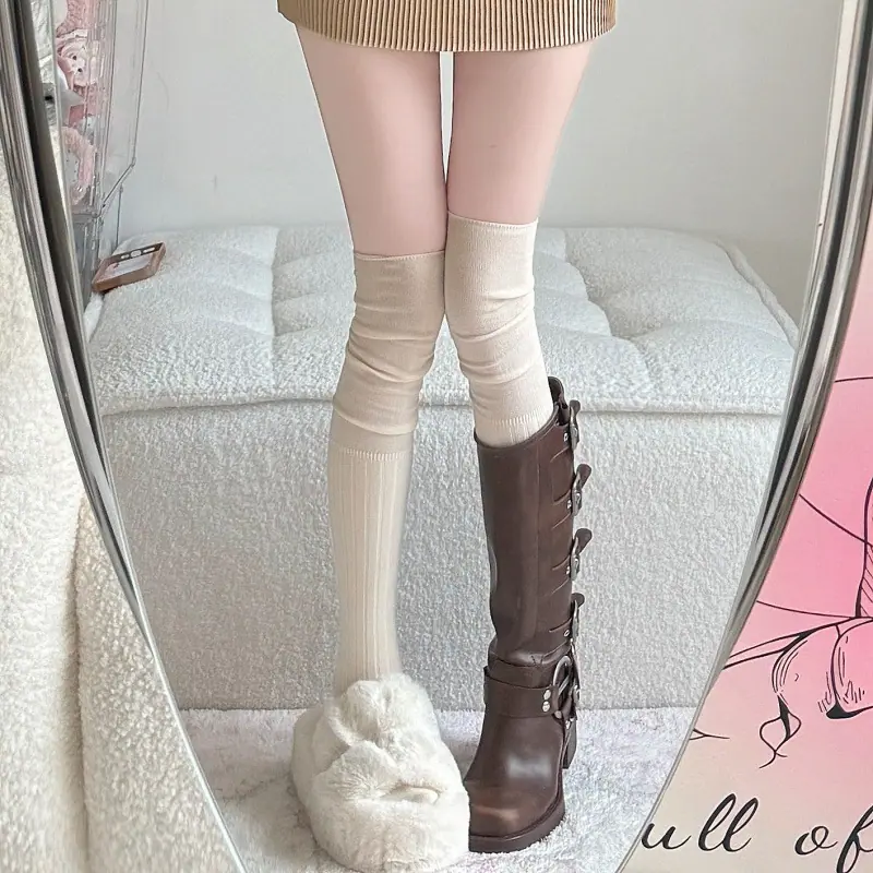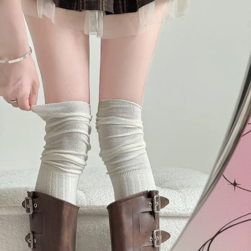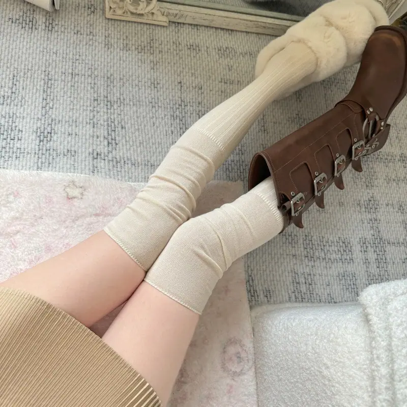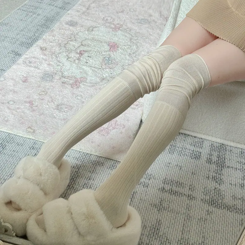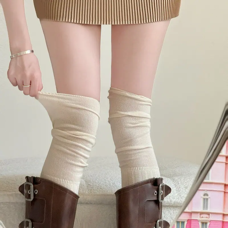 Compra Calcetines altos hasta el muslo color blanco leche para primavera y otoño para mujer, calcetines altos color caqui, calcetines beige por encima de la rodilla, calcetines japoneses de patchwork por encima de la rodilla, calcetines arrugados al por mayor en Joom.pro