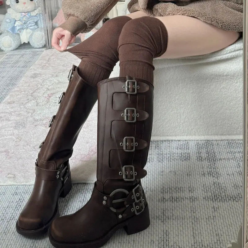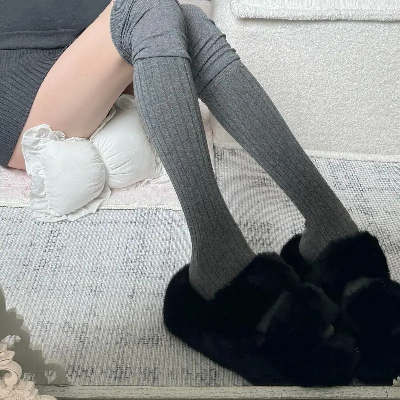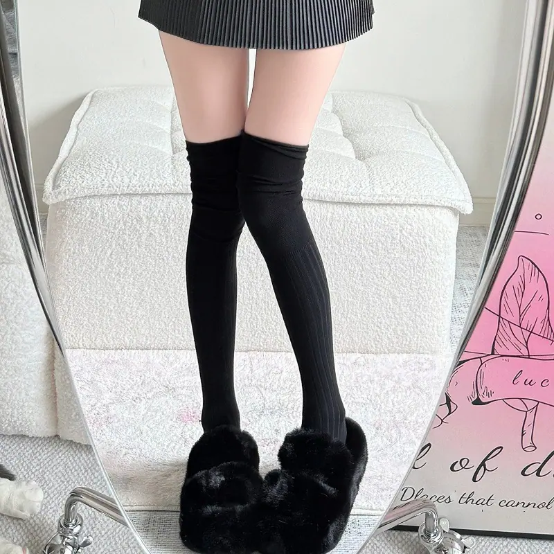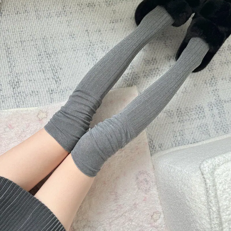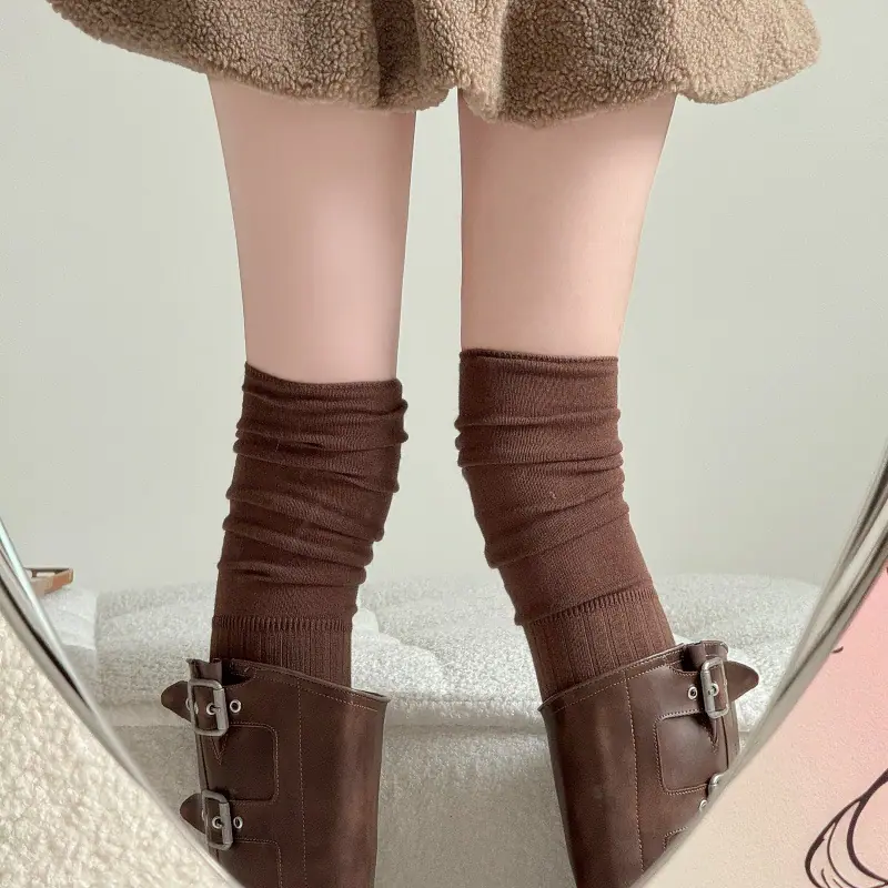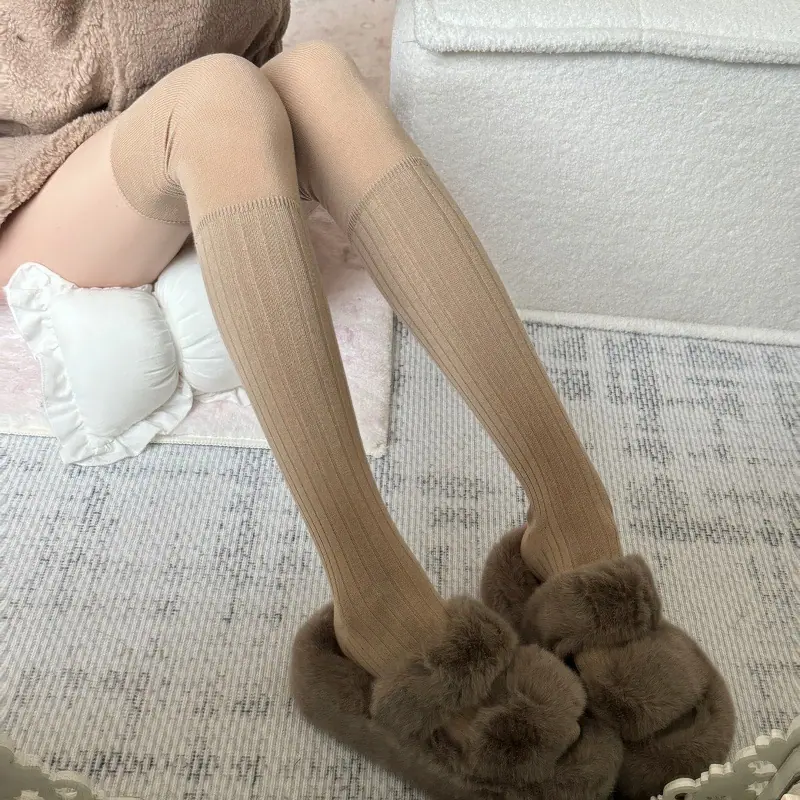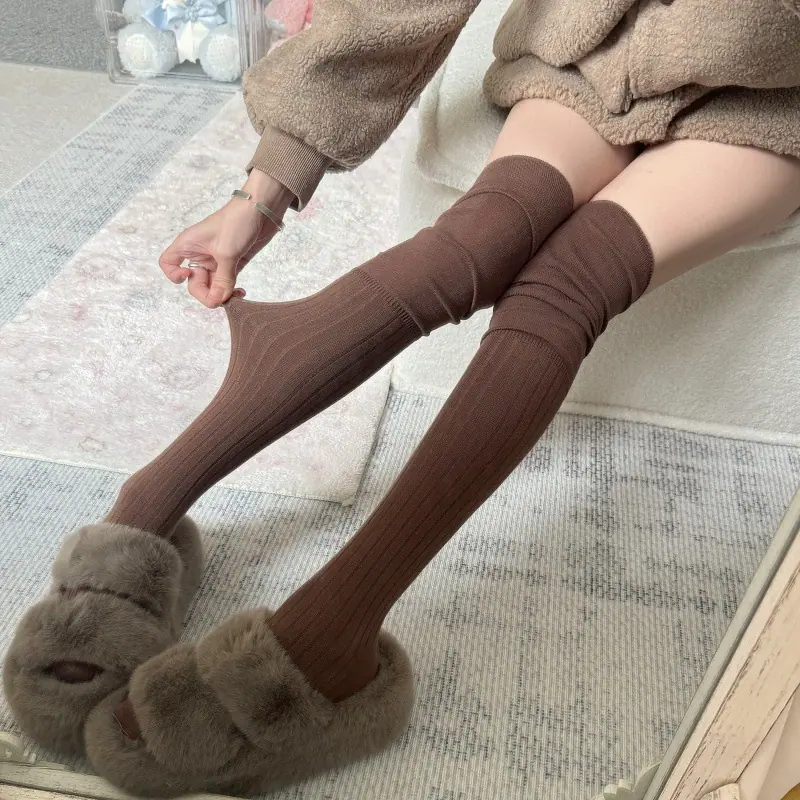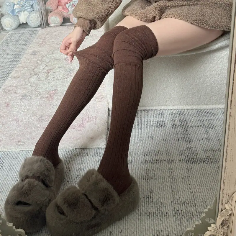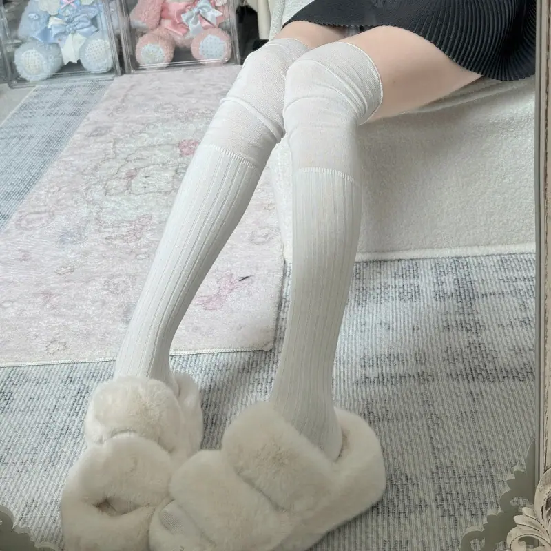 Compra Calcetines altos hasta el muslo color blanco leche para primavera y otoño para mujer, calcetines altos color caqui, calcetines beige por encima de la rodilla, calcetines japoneses de patchwork por encima de la rodilla, calcetines arrugados al por mayor en Joom.pro