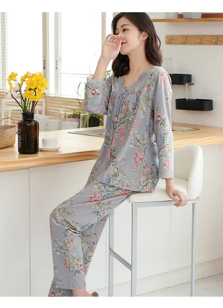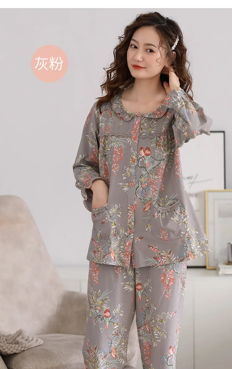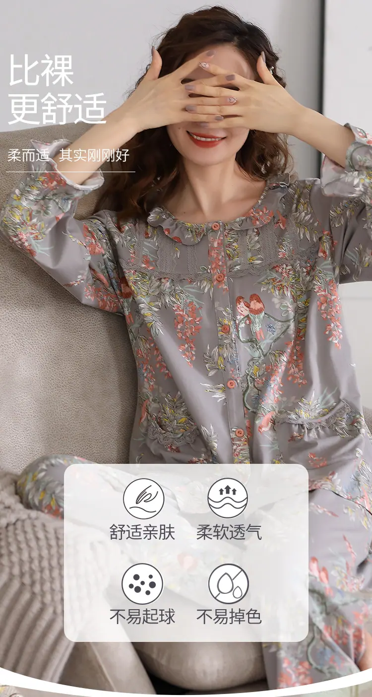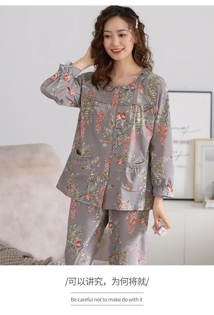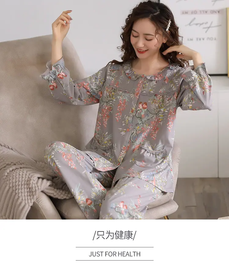 Compra Pijamas de Otoño para Mujer Algodón Pull-up Manga Larga Pantalones Cómodo Transpirable Suelto Talla Extra Traje Ropa de Casa para Mujer Ropa Exterior al por mayor en Joom.pro