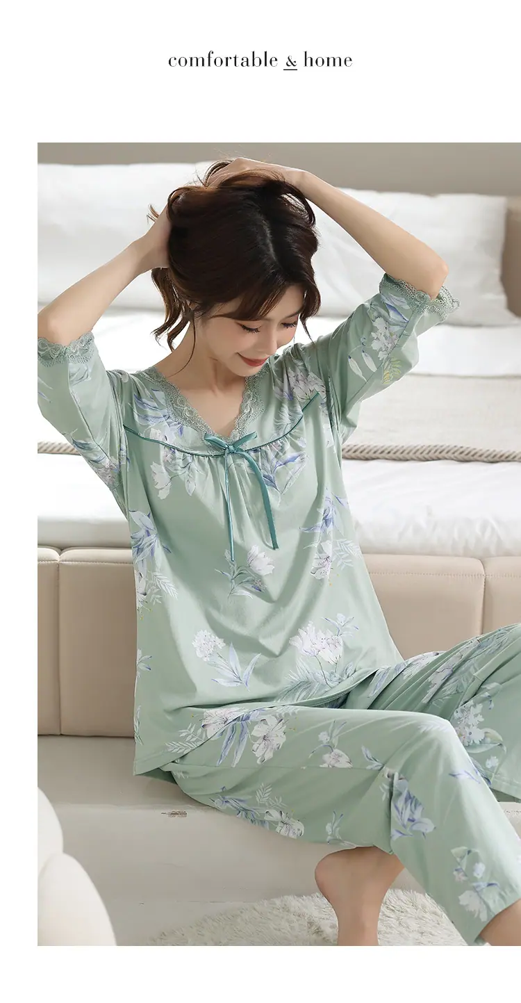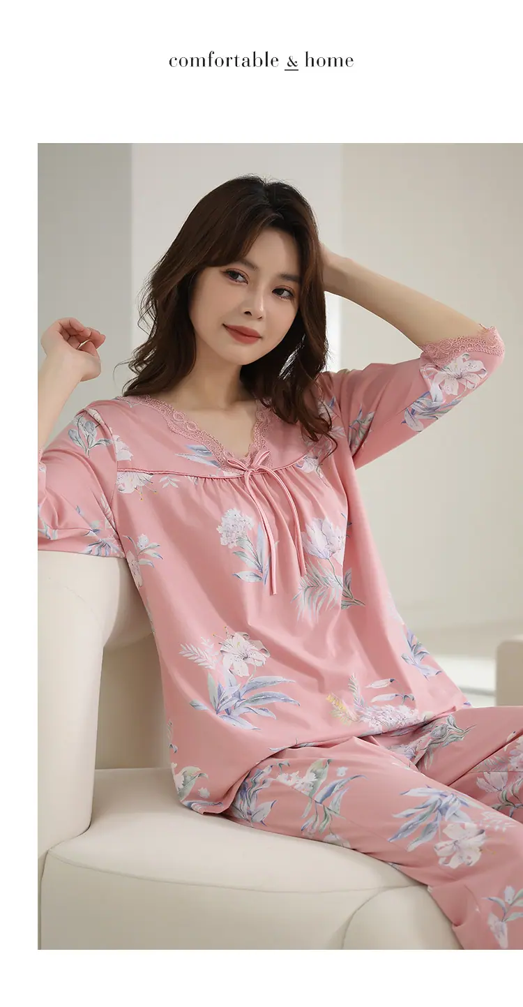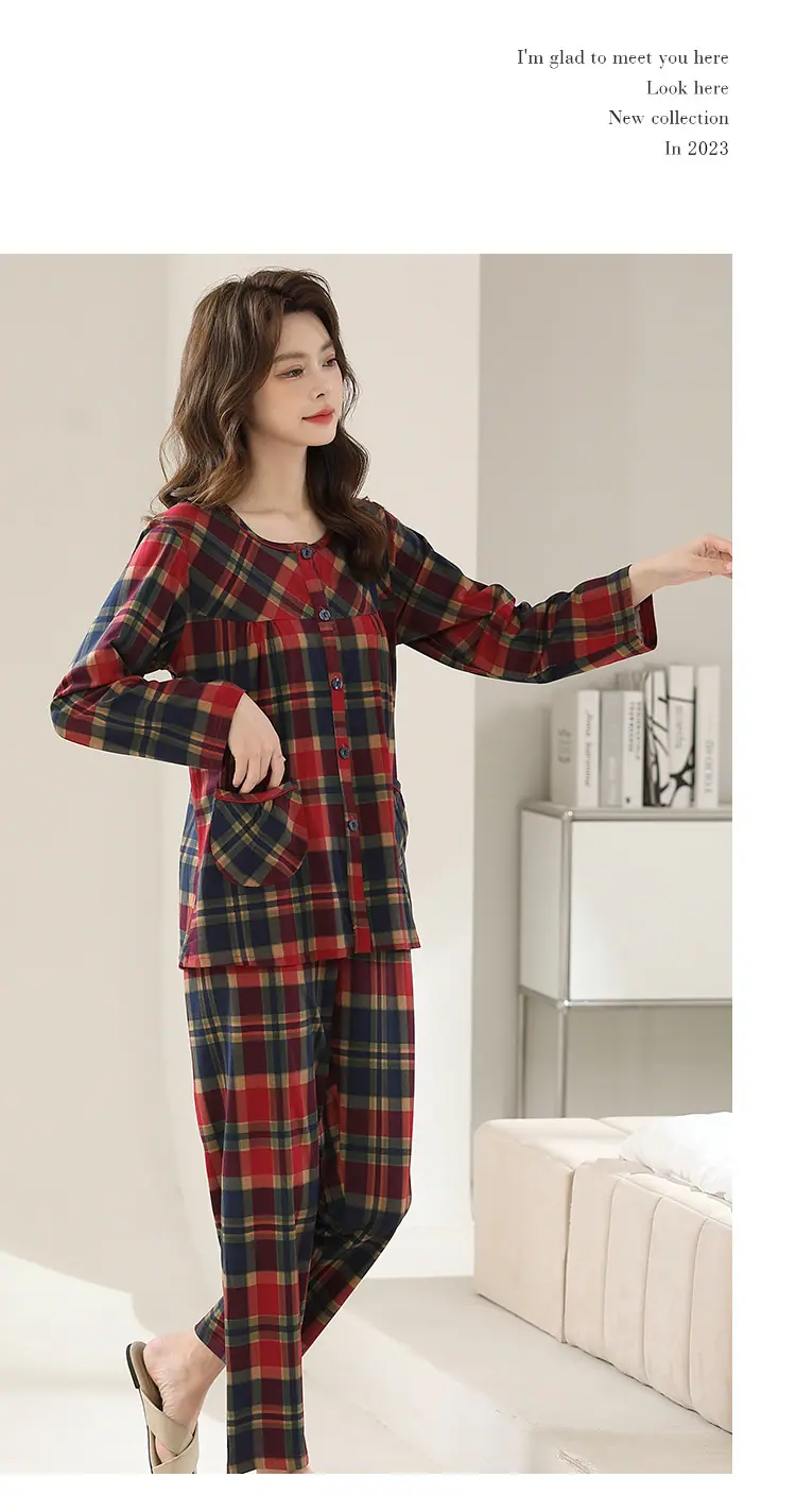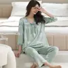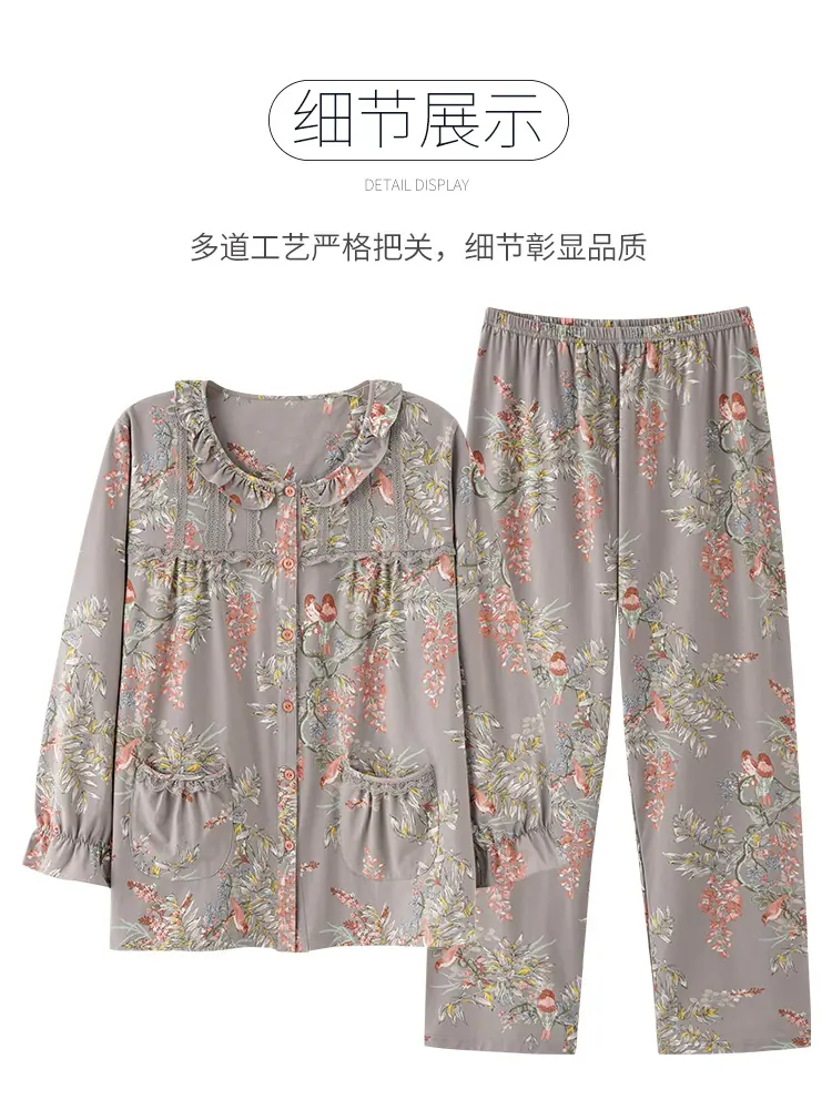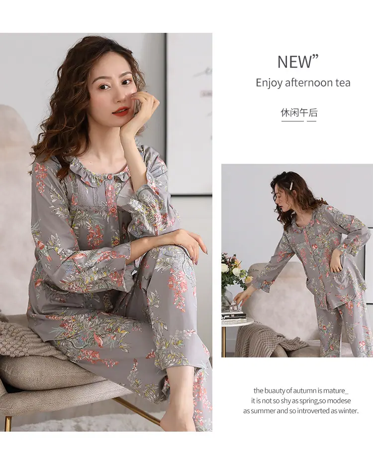 Compra Pijamas de Otoño para Mujer Algodón Pull-up Manga Larga Pantalones Cómodo Transpirable Suelto Talla Extra Traje Ropa de Casa para Mujer Ropa Exterior al por mayor en Joom.pro