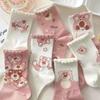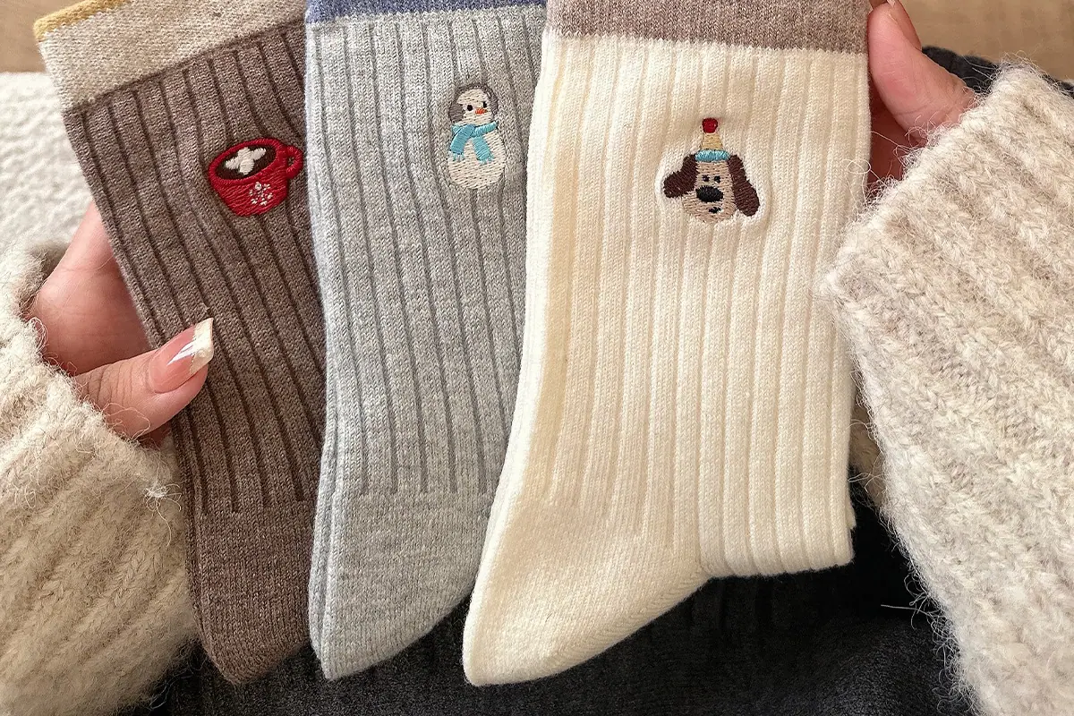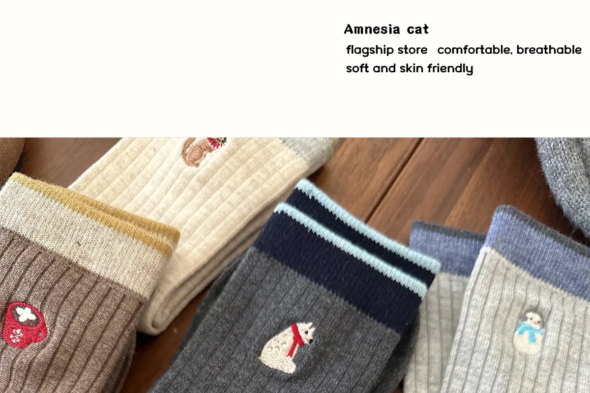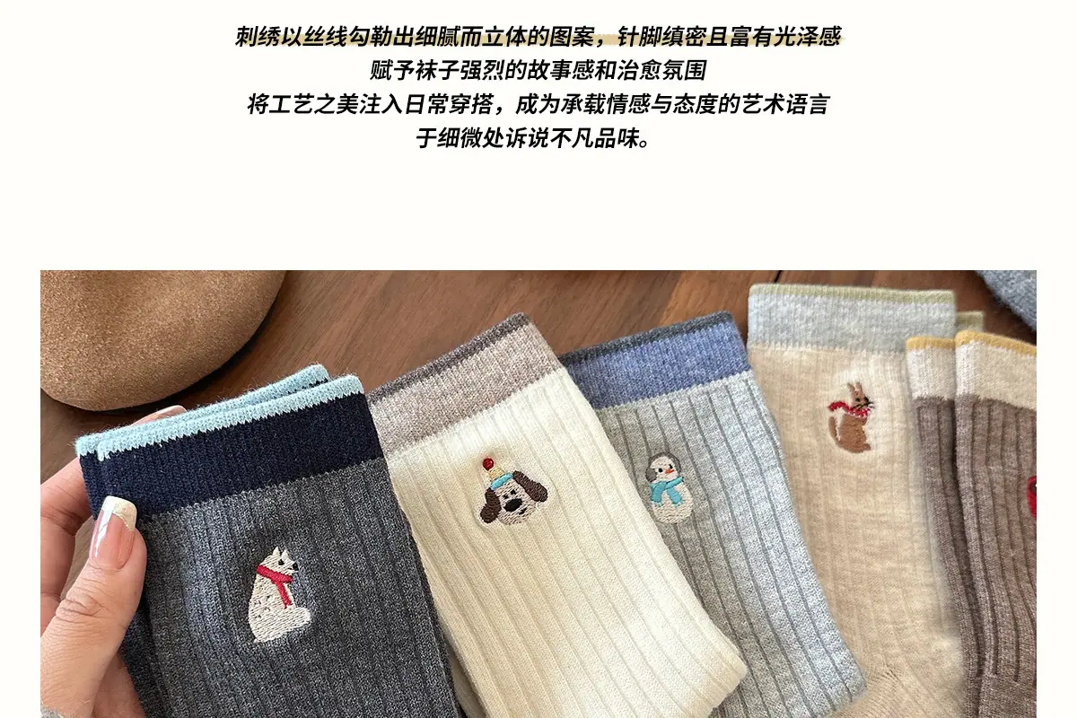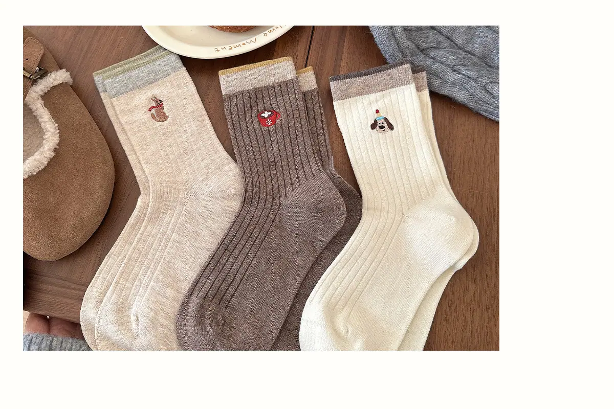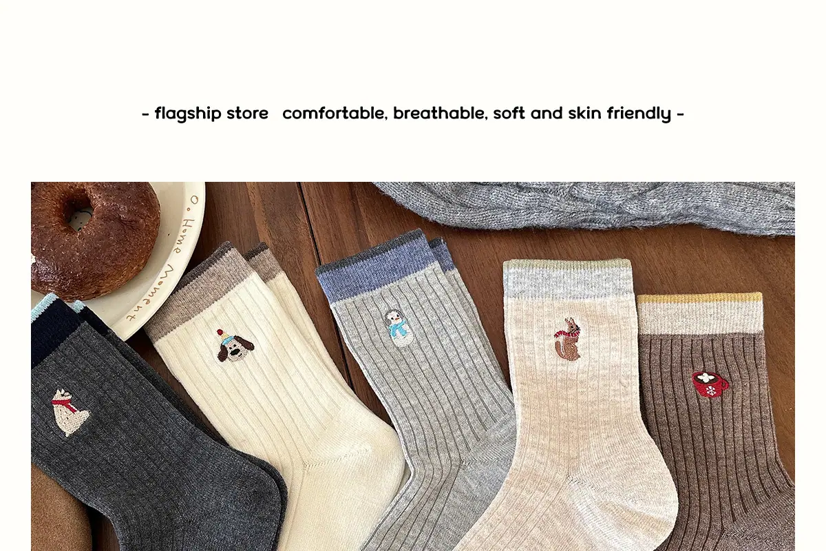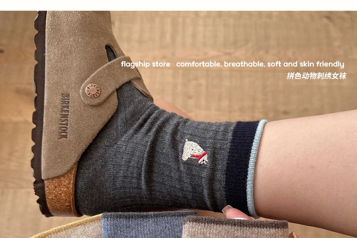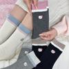 Otoño e Invierno Calcetines Japoneses de Dibujos Animados sin Costuras Calcetines de Algodón Puro hasta la Mitad de la Pantorrilla Bordado Lindo Bloque de Color Bordado Calcetines de Algodón Estilo Versátil