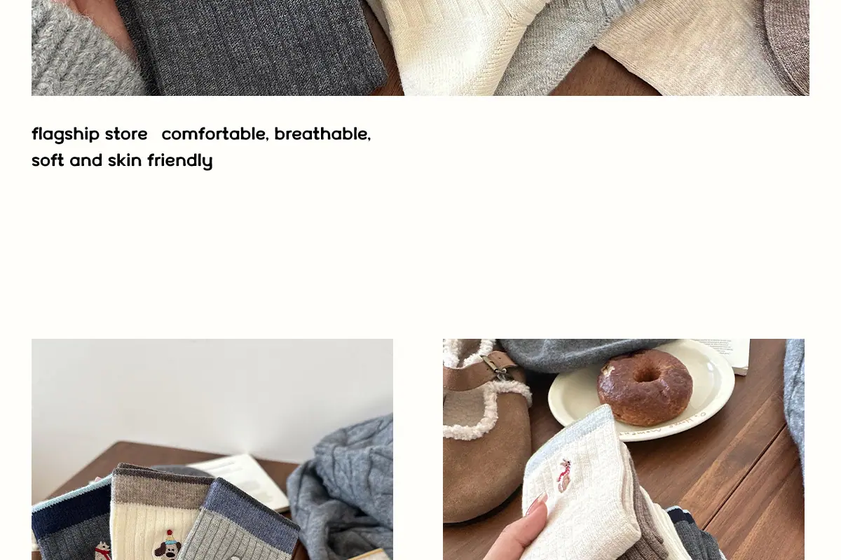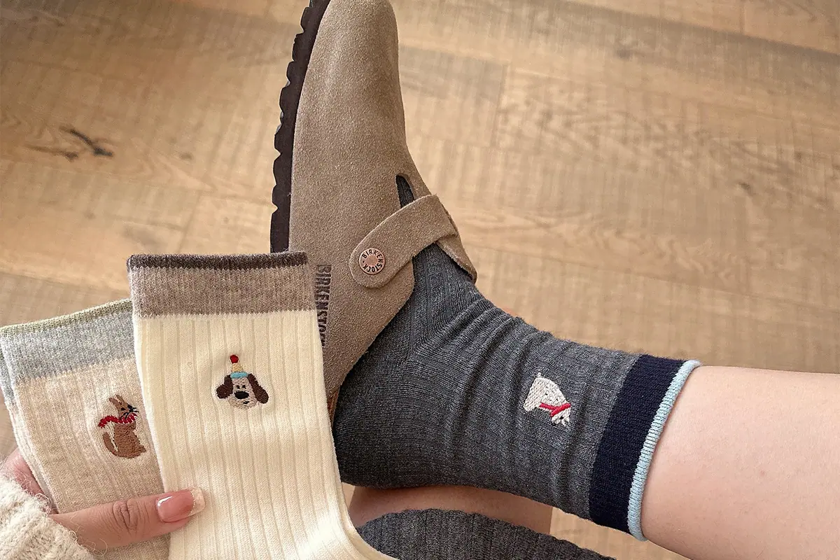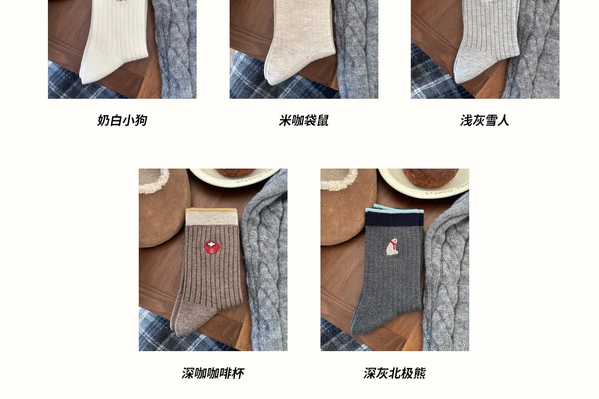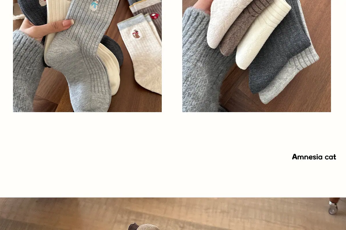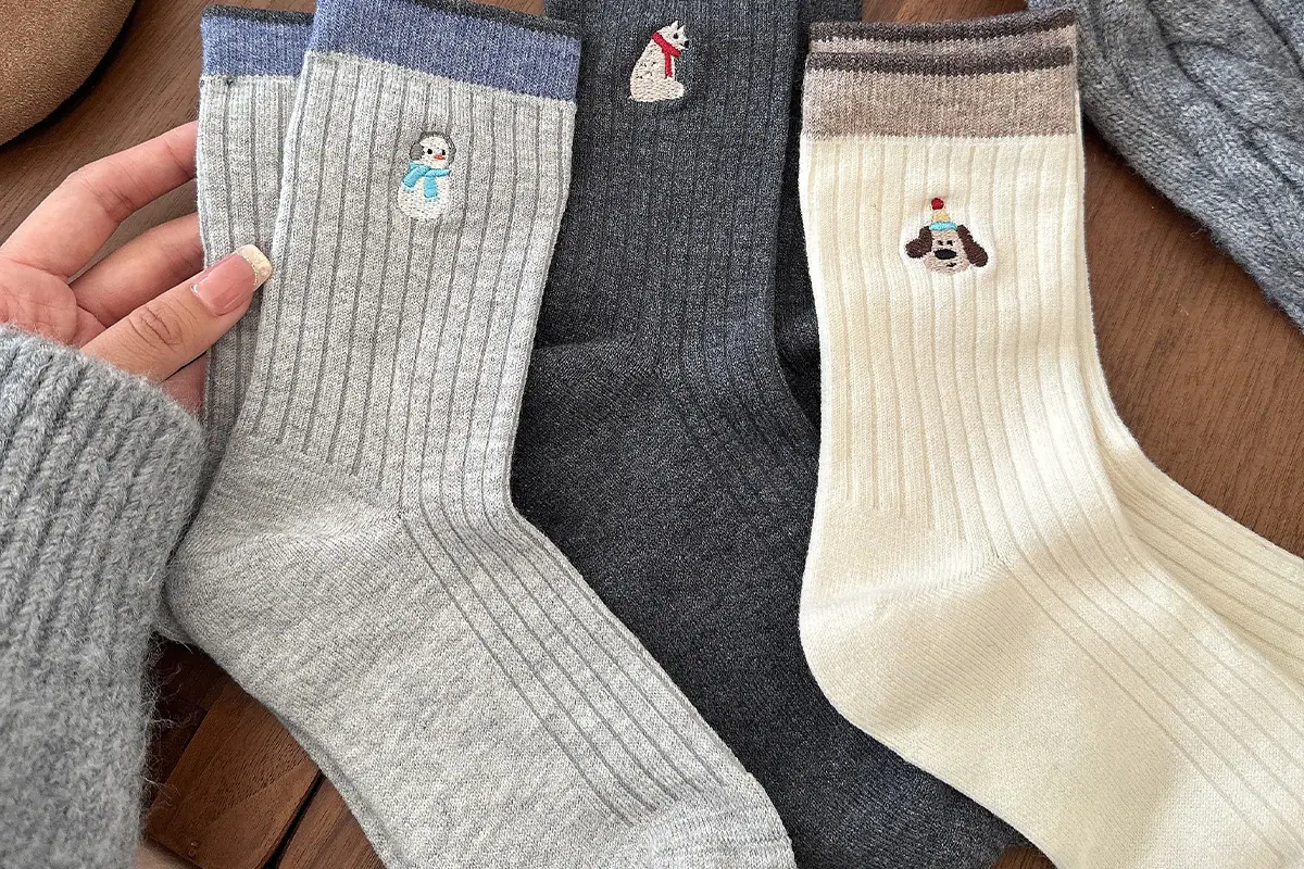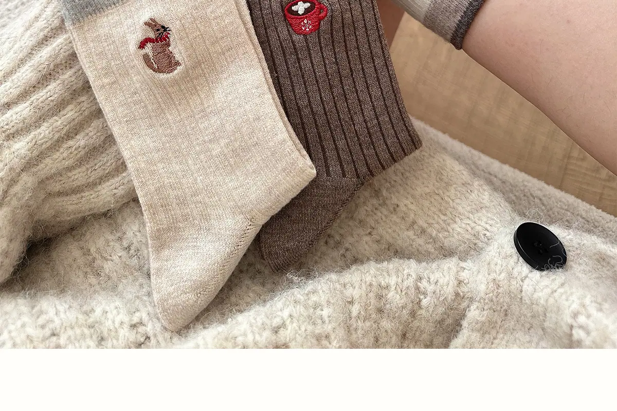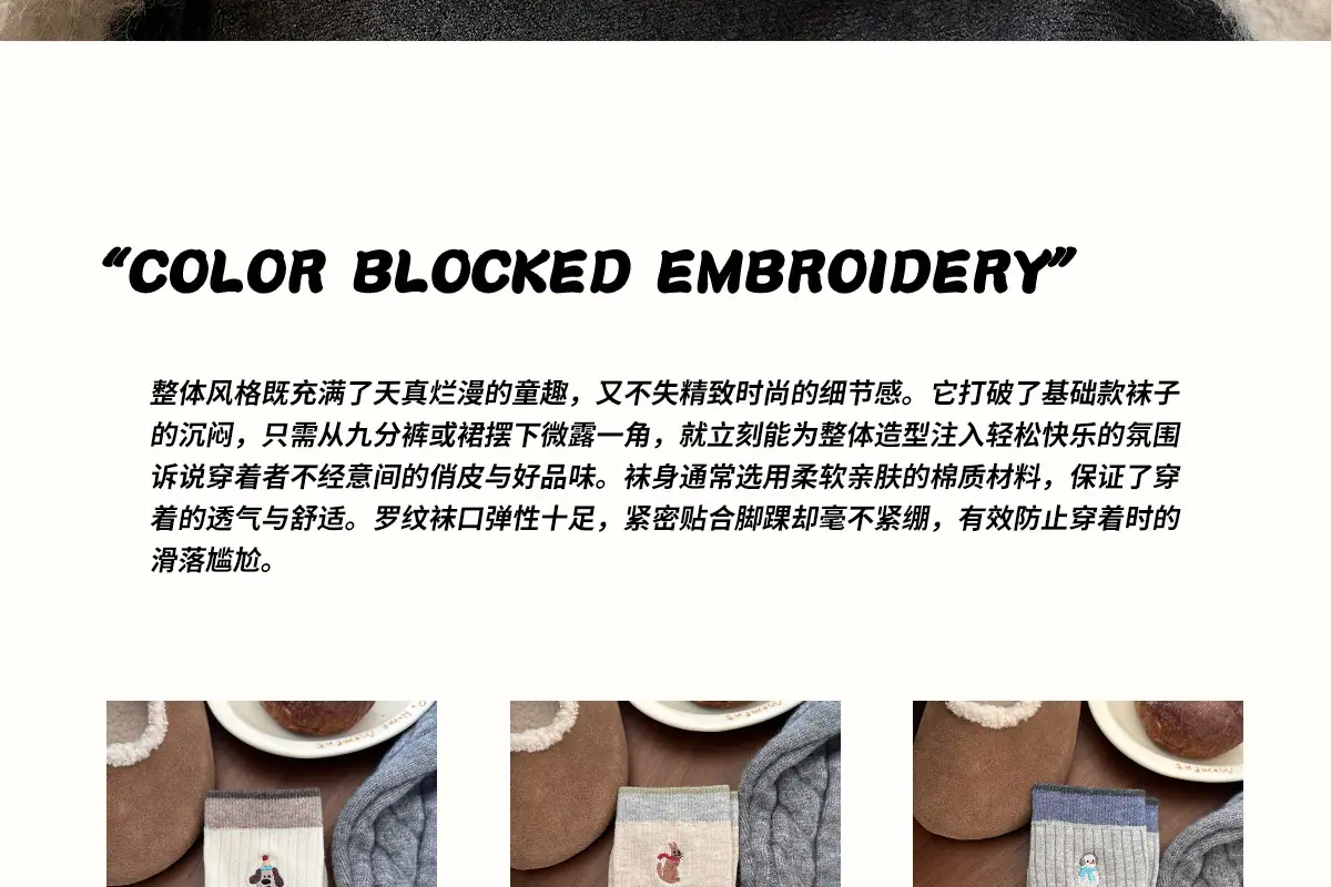 Otoño e Invierno Calcetines Japoneses de Dibujos Animados sin Costuras Calcetines de Algodón Puro hasta la Mitad de la Pantorrilla Bordado Lindo Bloque de Color Bordado Calcetines de Algodón Estilo Versátil