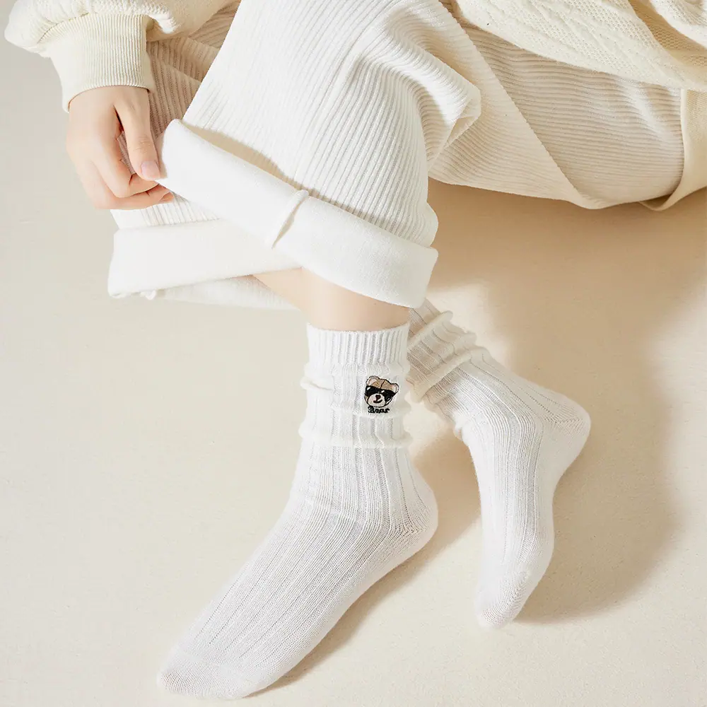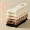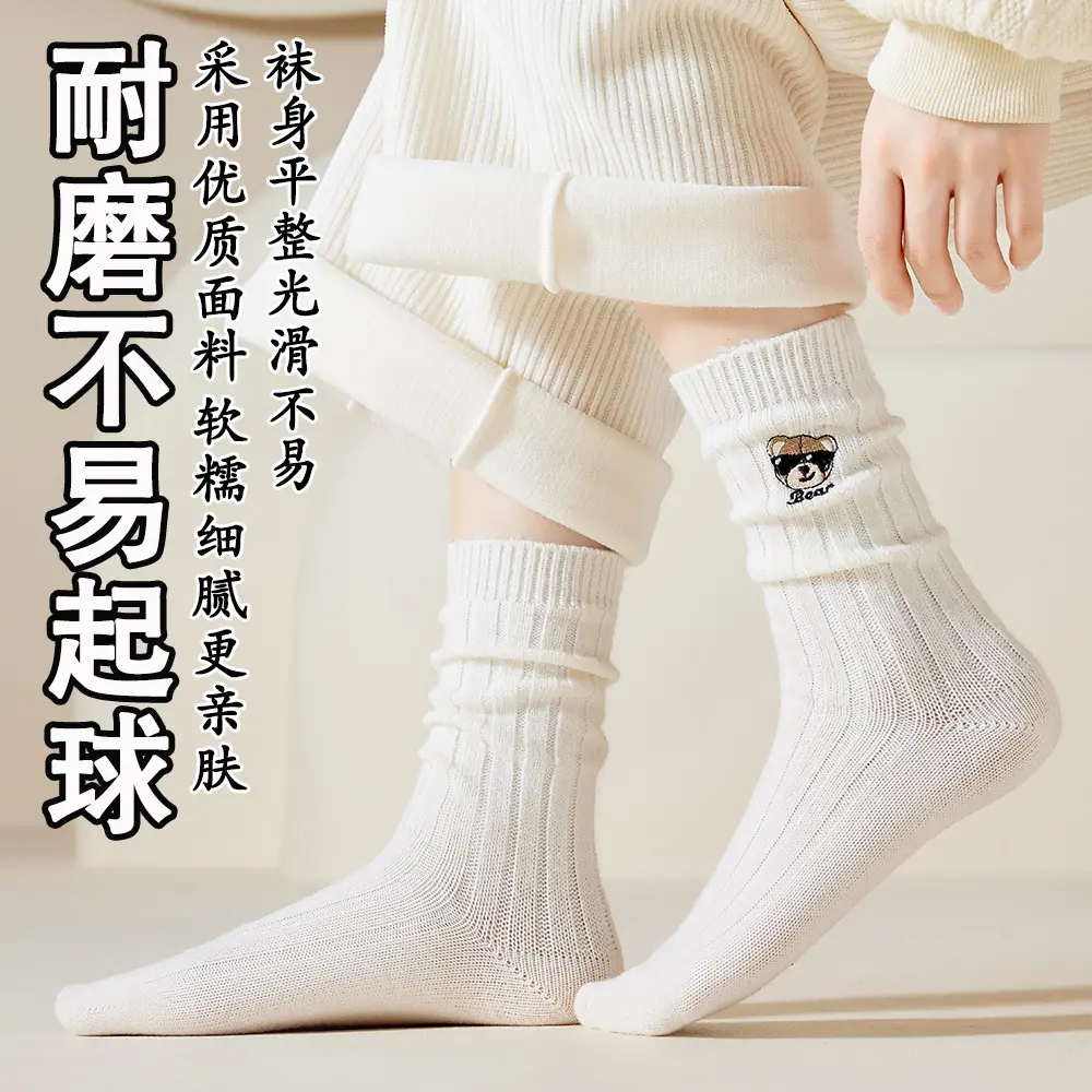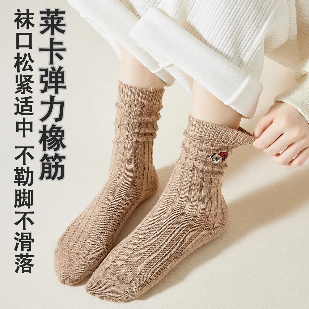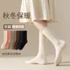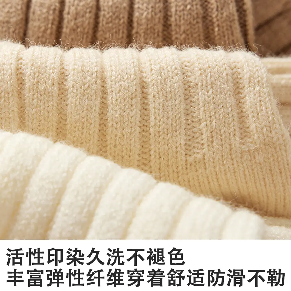 Calcetines de Lana de Doble Aguja Engrosados Cálidos para Mujer Otoño e Invierno Bloque de Color Media Caña Arrugados Calcetines de Piso Versátiles