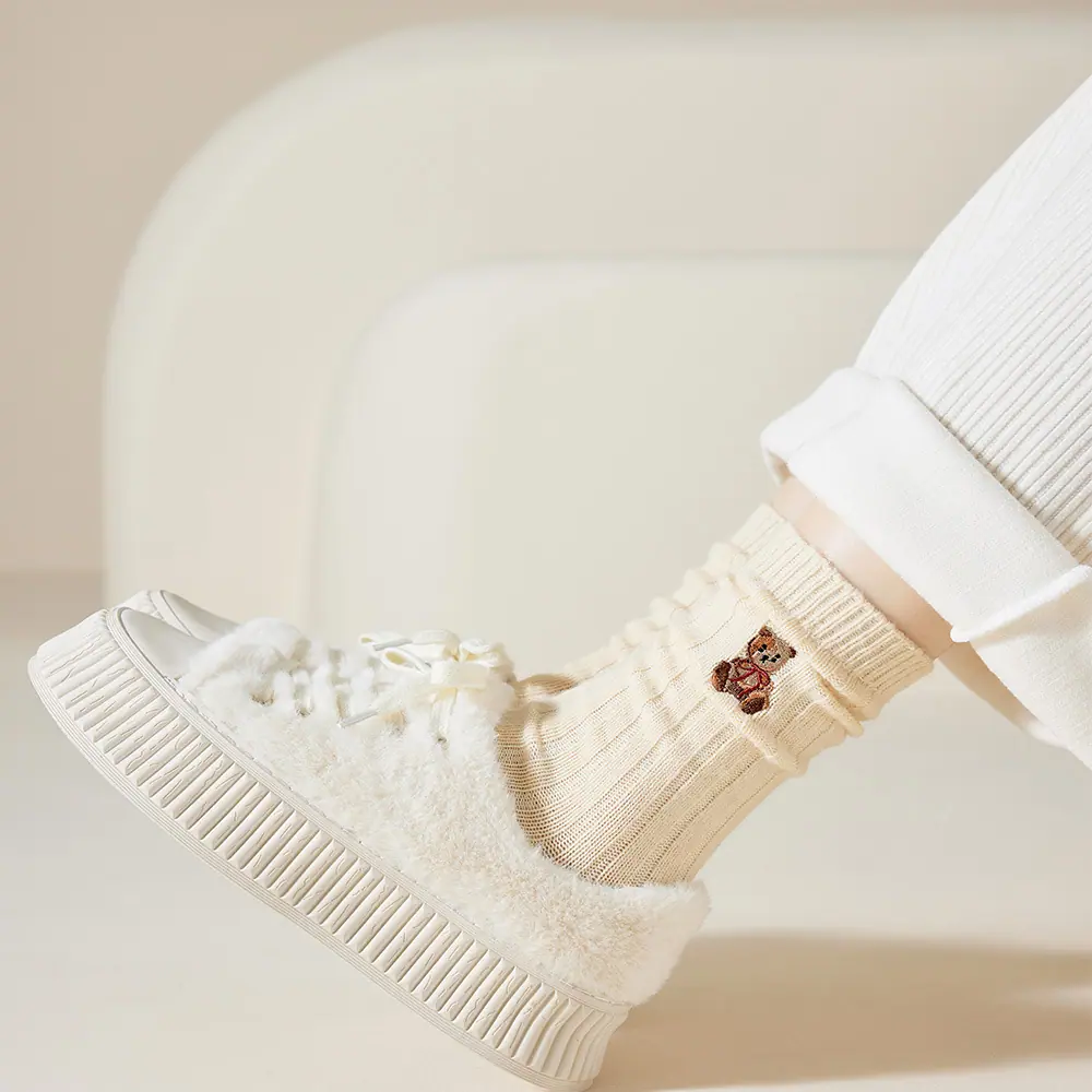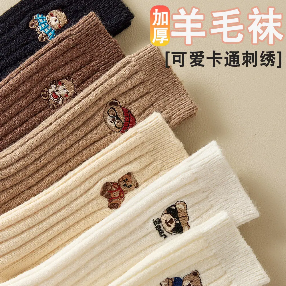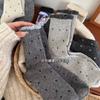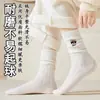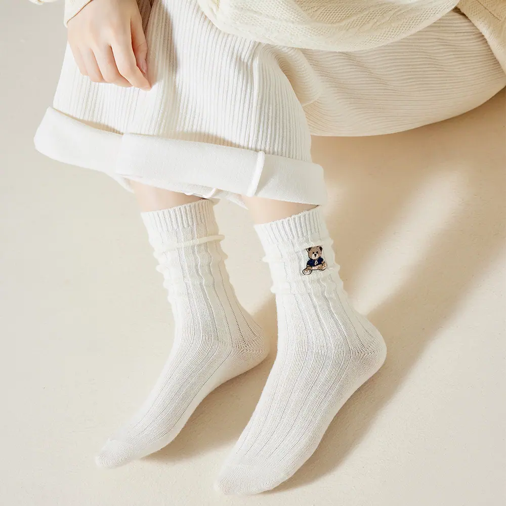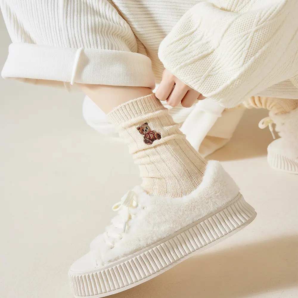 Calcetines de Lana de Doble Aguja Engrosados Cálidos para Mujer Otoño e Invierno Bloque de Color Media Caña Arrugados Calcetines de Piso Versátiles