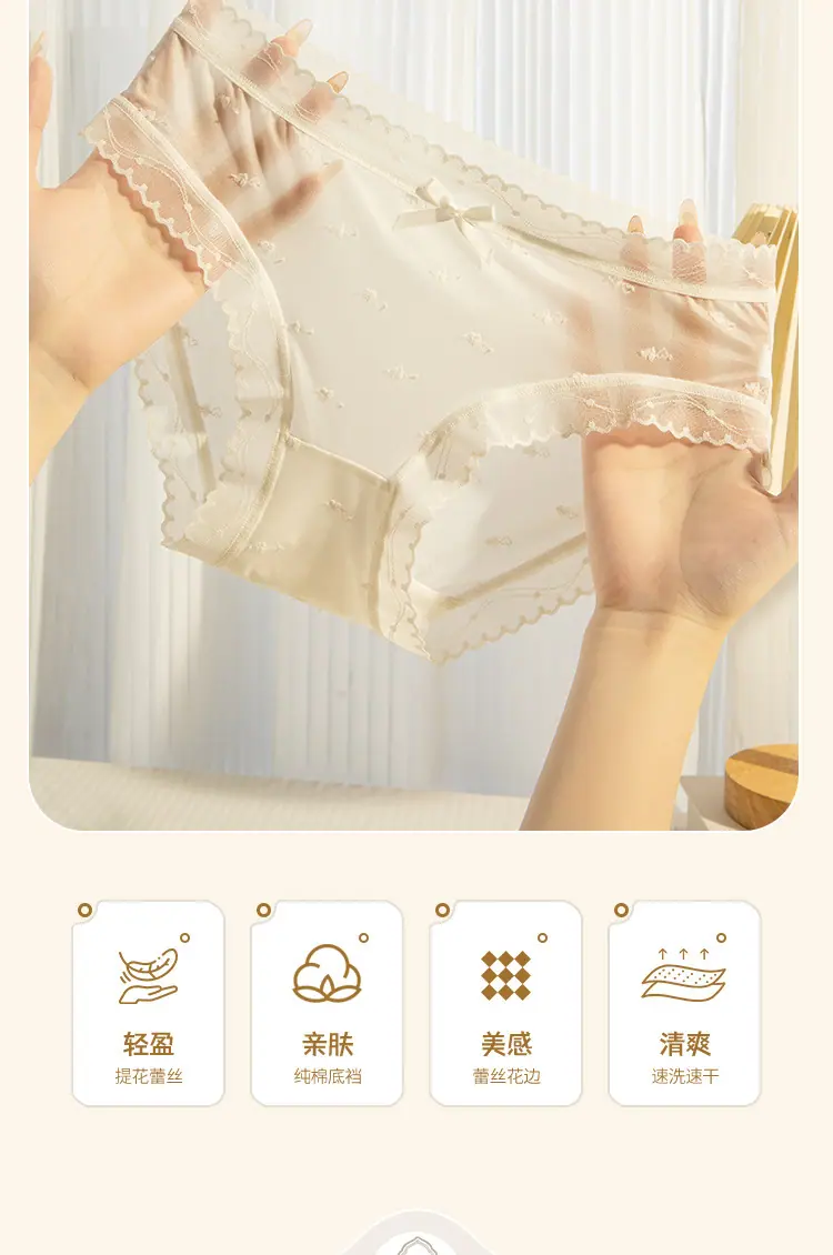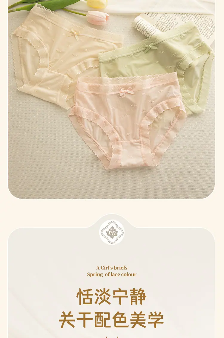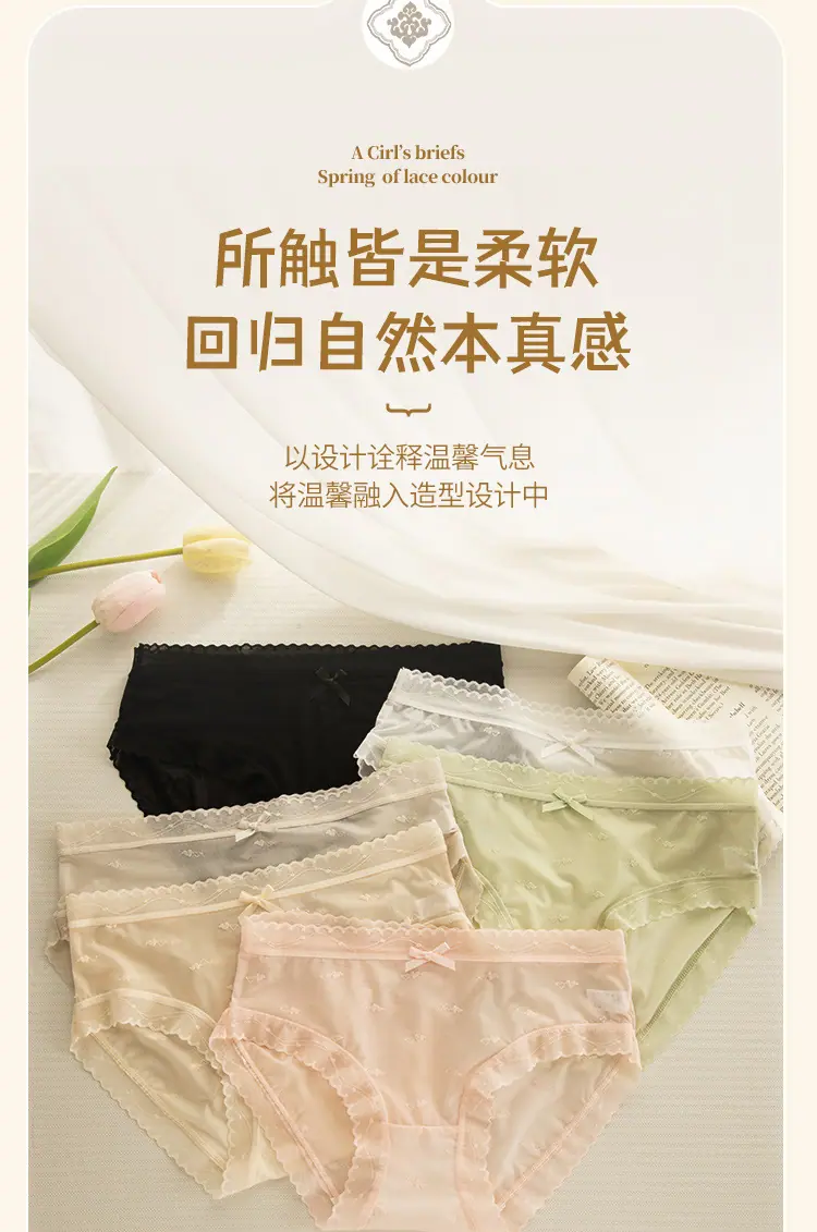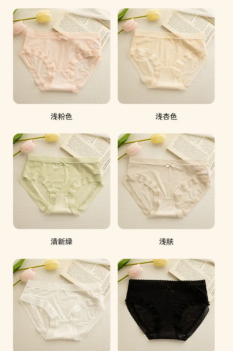 Compra Pantaletas de Verano Delgadas para Niña de Cintura Media Encaje Malla Deseo Puro Amigables con la Piel Transpirables Entrepierna Interior de Algodón Puro Sin Calzoncillos de Cadera al por mayor en Joom.pro