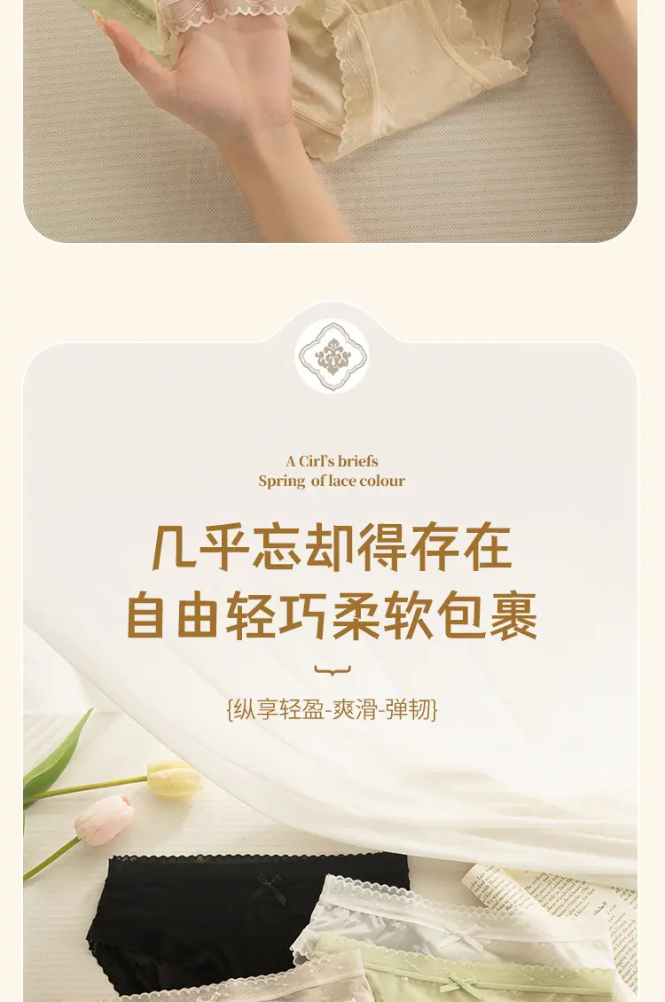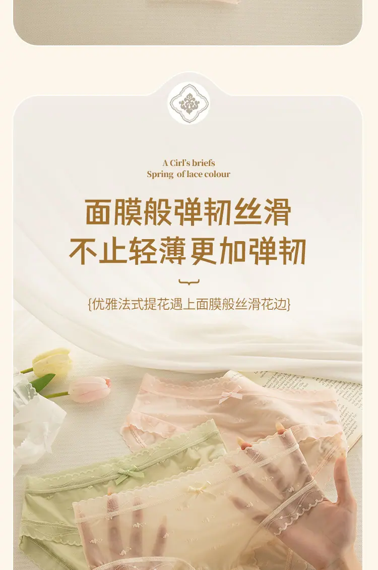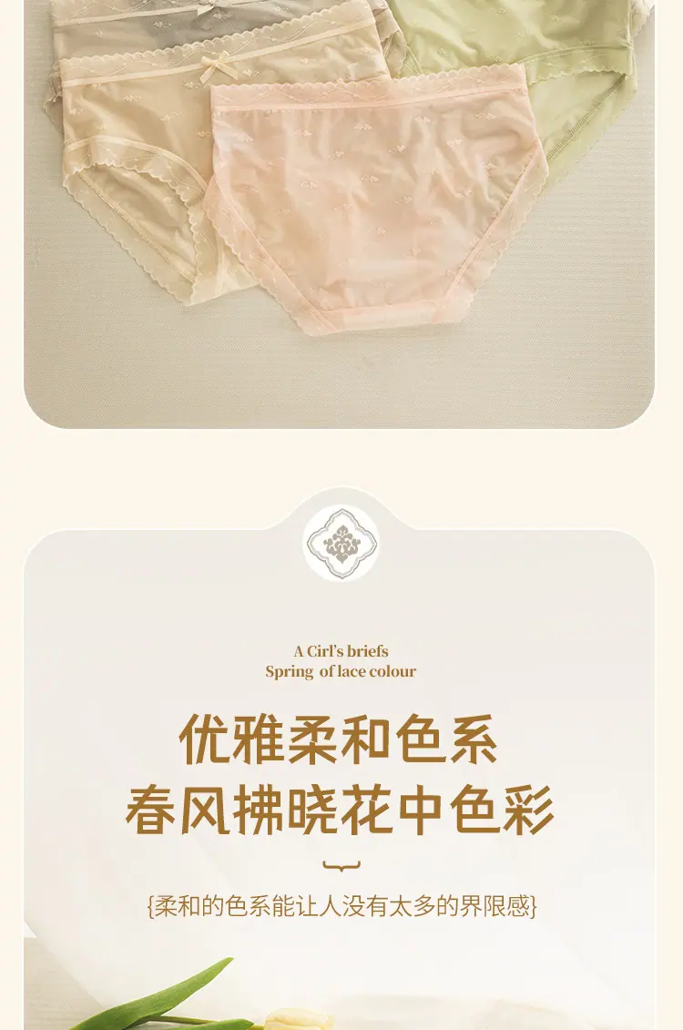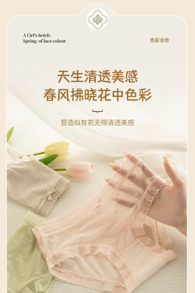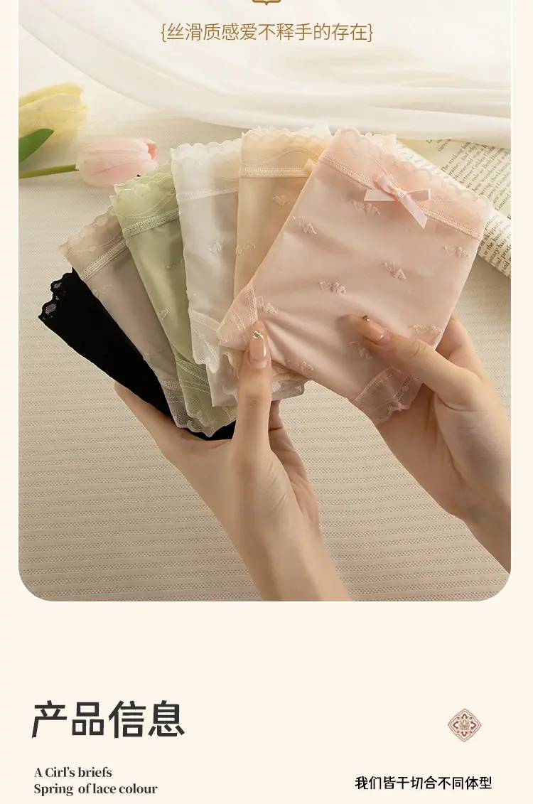 Compra Pantaletas de Verano Delgadas para Niña de Cintura Media Encaje Malla Deseo Puro Amigables con la Piel Transpirables Entrepierna Interior de Algodón Puro Sin Calzoncillos de Cadera al por mayor en Joom.pro