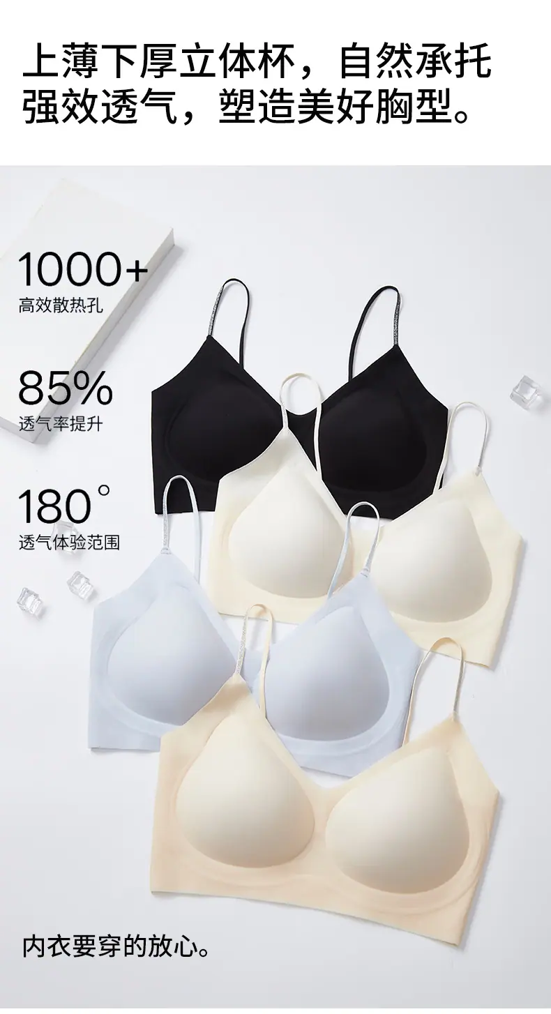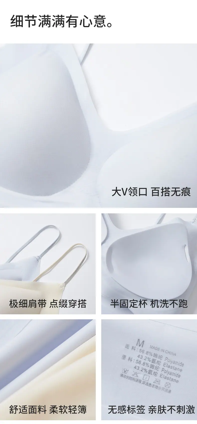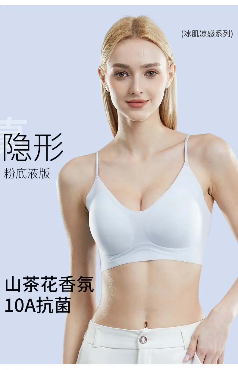 Nueva Fragancia Camelia Ropa Interior Transpirable Ultradelgada Comodidad Fresca Tirantes Espagueti Seda de Hielo Sujetador Sin Costuras Herbal Mismo Estilo
