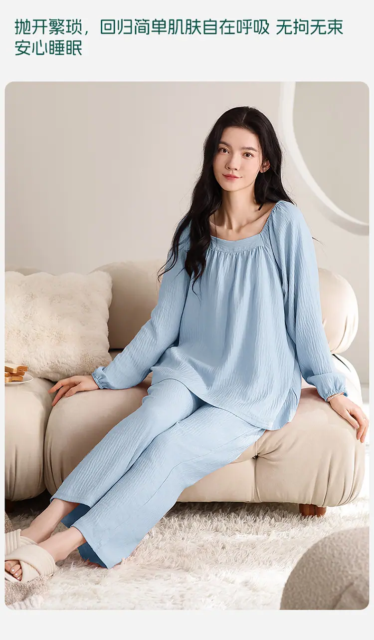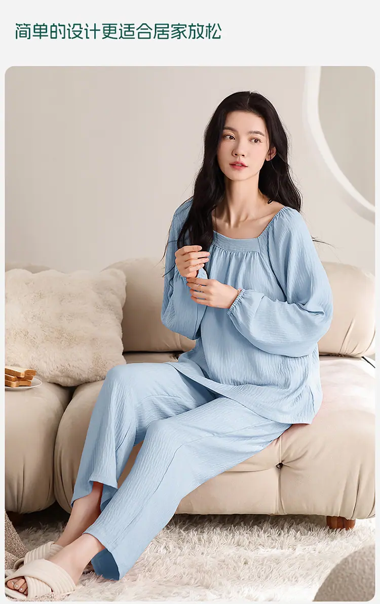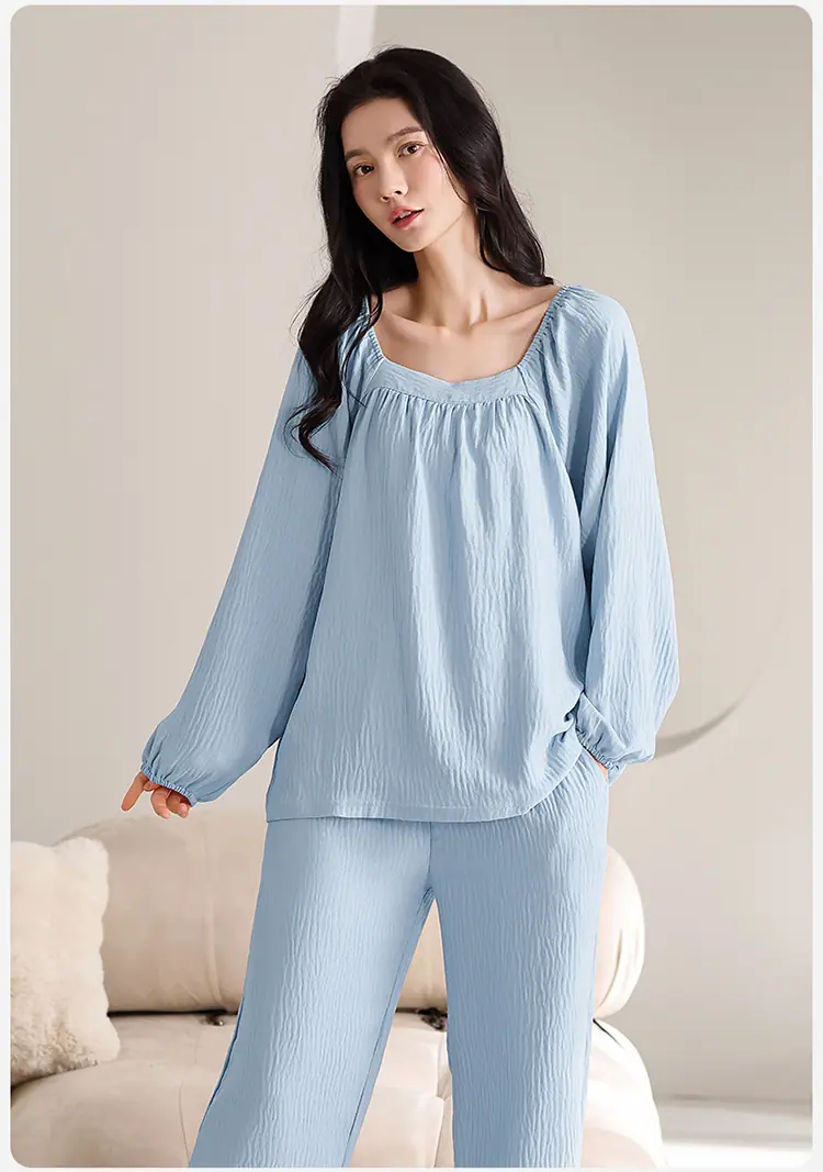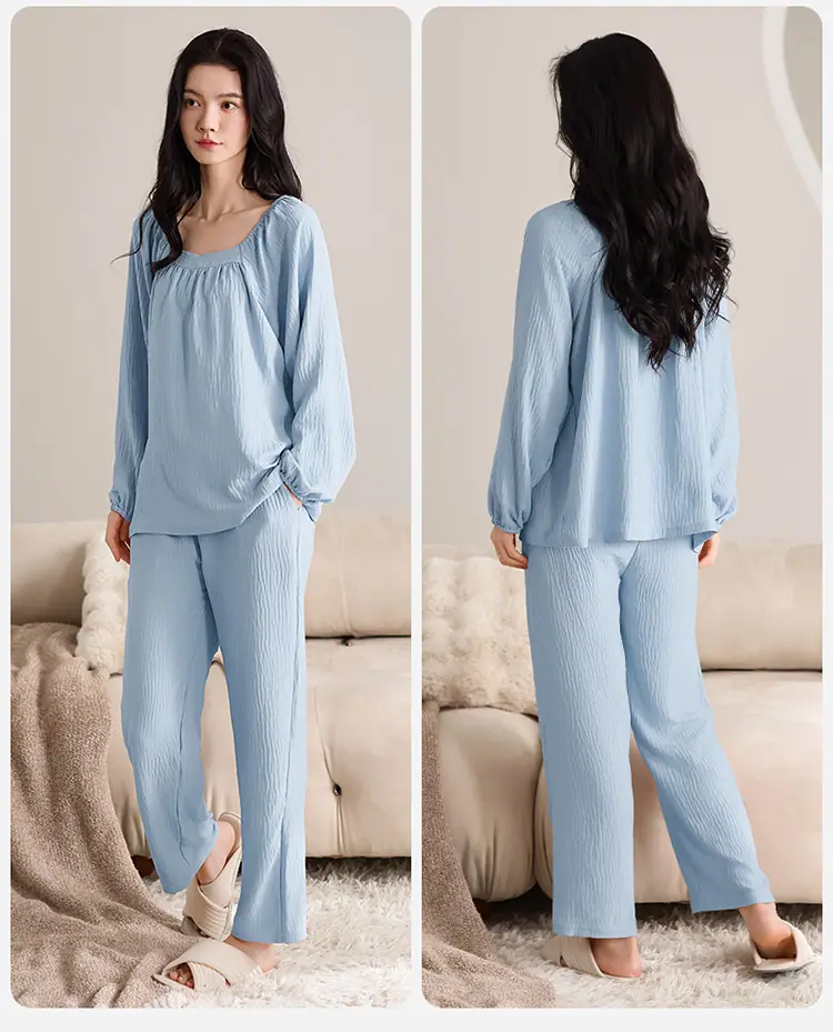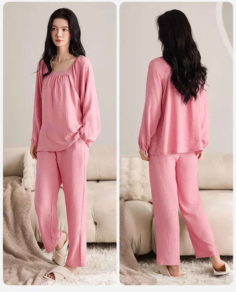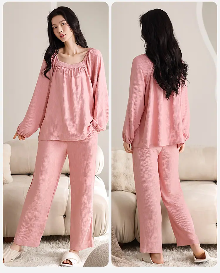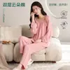 Pijama de Algodón Nube de Doble Cara Otoño Manga Larga Pantalón Largo Dulce y Encantador Otoño Dulce y Encantador Se Puede Usar para Salir Ropa para Estar en Casa