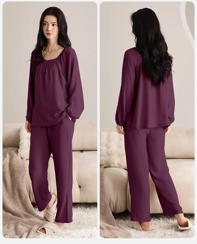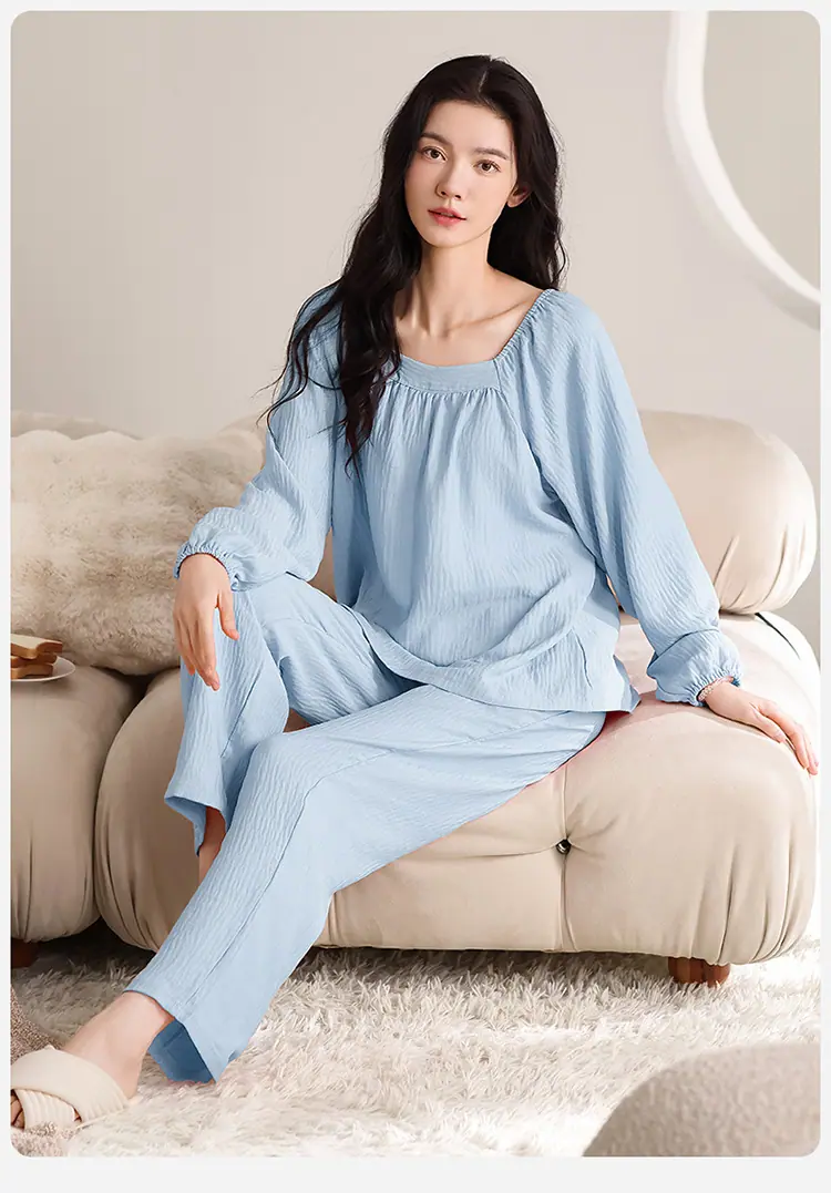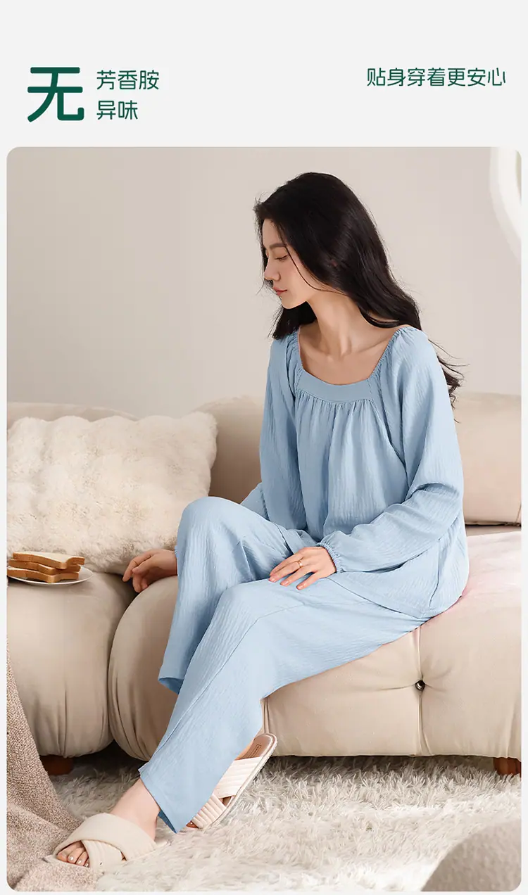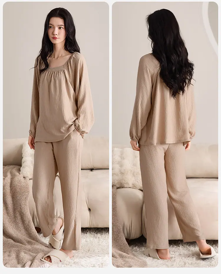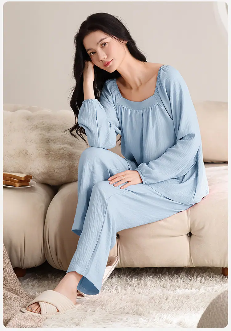 Pijama de Algodón Nube de Doble Cara Otoño Manga Larga Pantalón Largo Dulce y Encantador Otoño Dulce y Encantador Se Puede Usar para Salir Ropa para Estar en Casa
