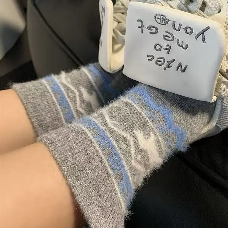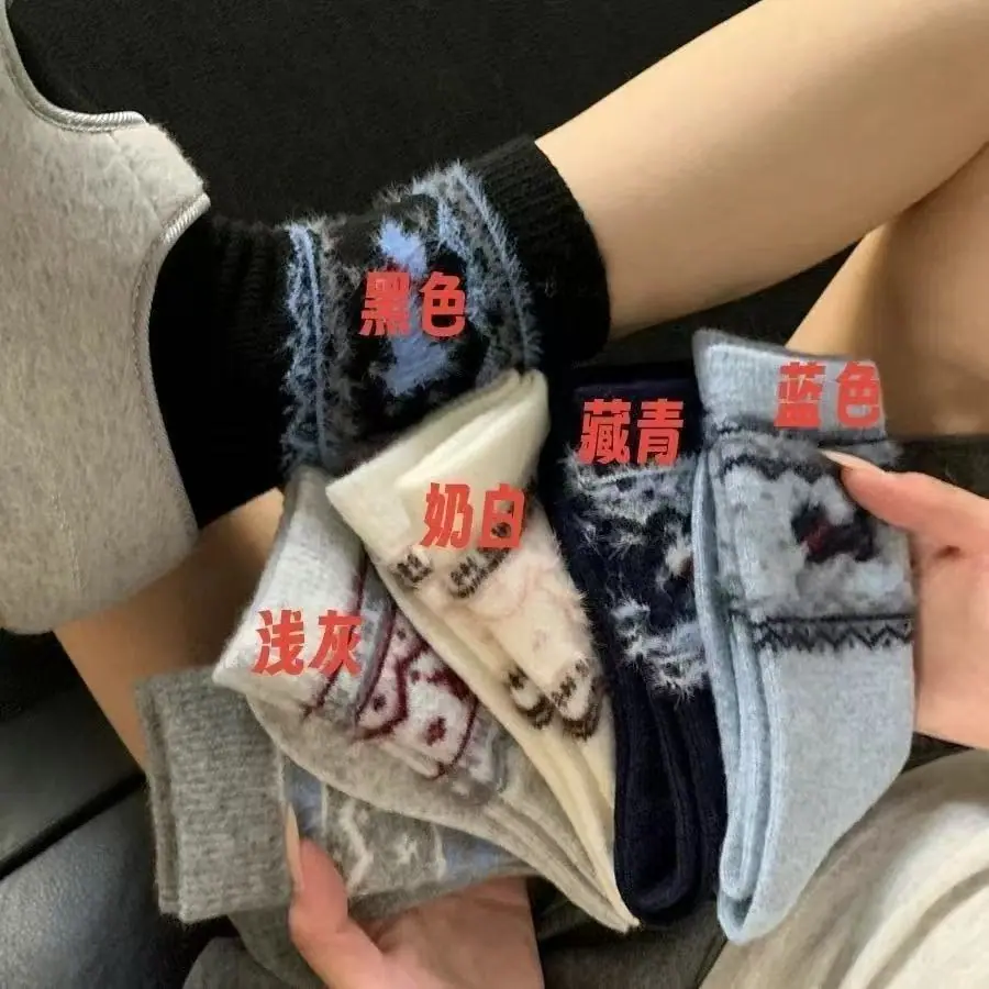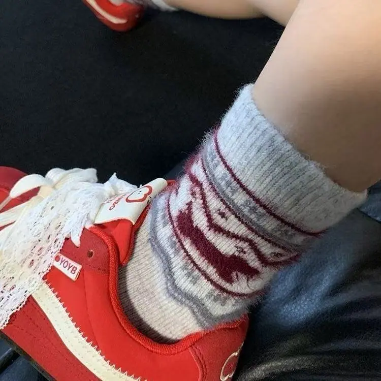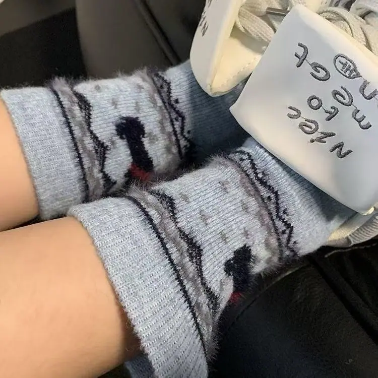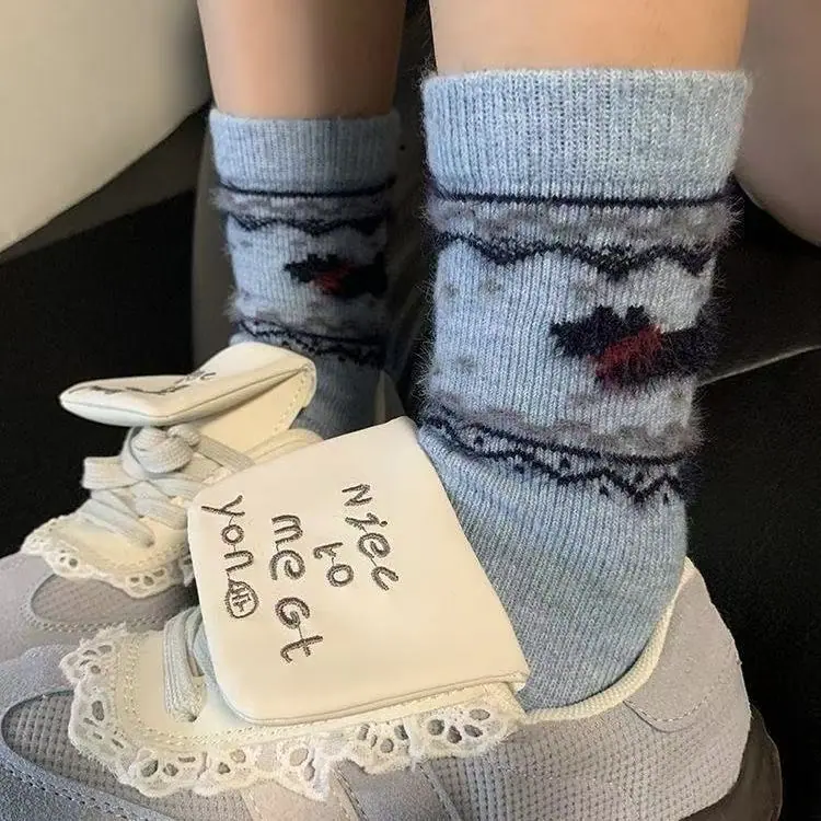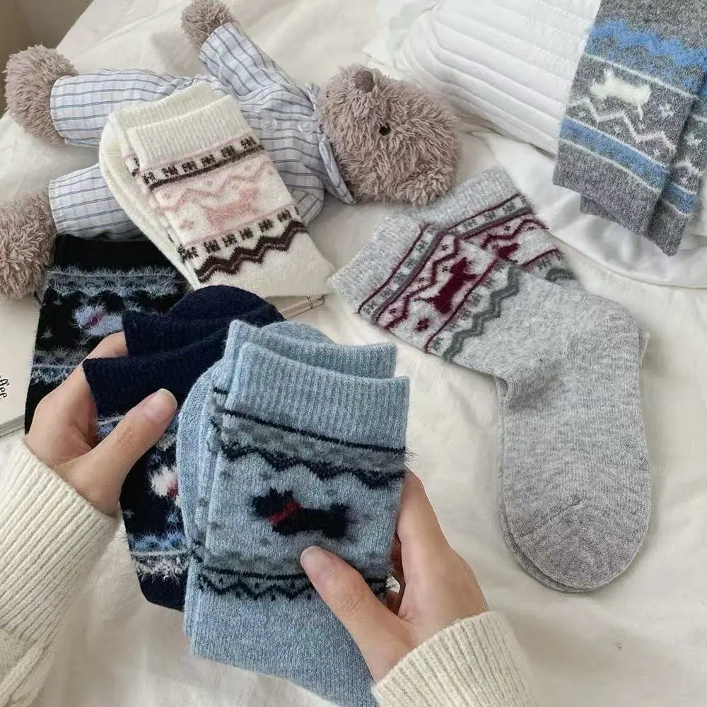 Fair Isle francés ins otoño e invierno cálido calcetines de media pantorrilla holgados estilo retro japonés dachshund Mori de felpa para mujer