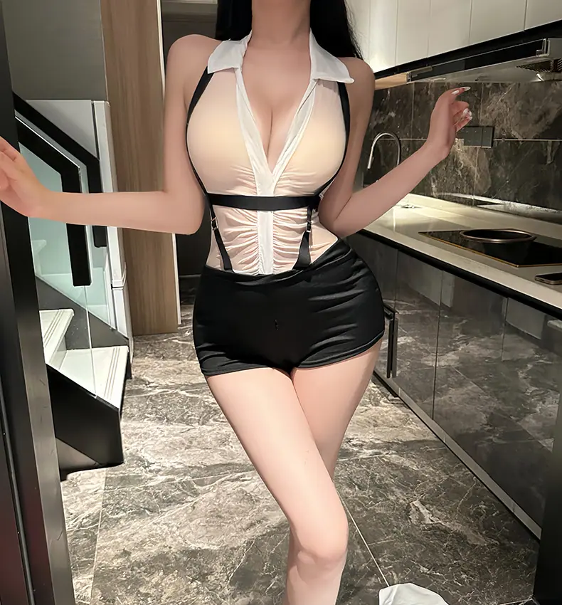 Lencería Sexy Sexy Liberación Rápida Ajustada Club Nocturno Diversión Secretaria Ajustada Caderas Pecho Abierto Caliente Espalda Descubierta Conjunto Uniforme