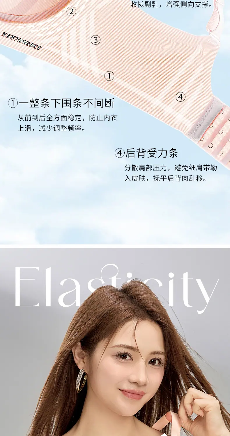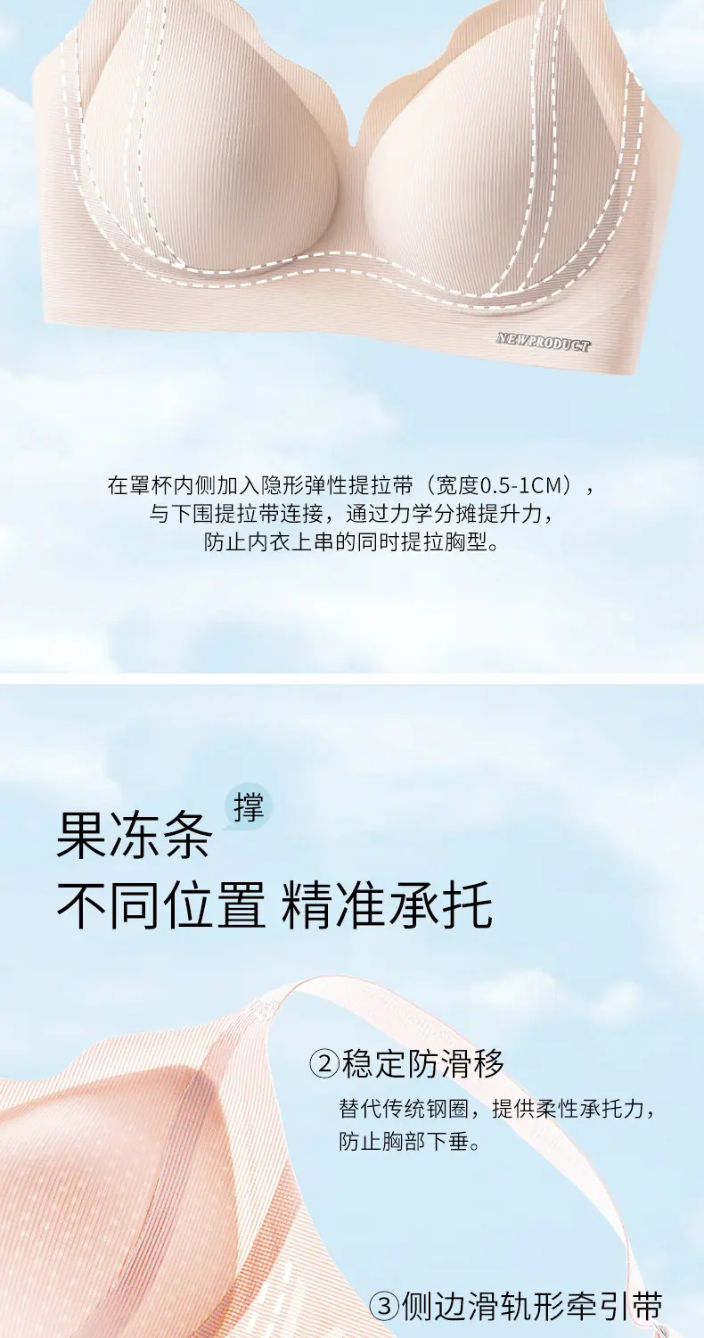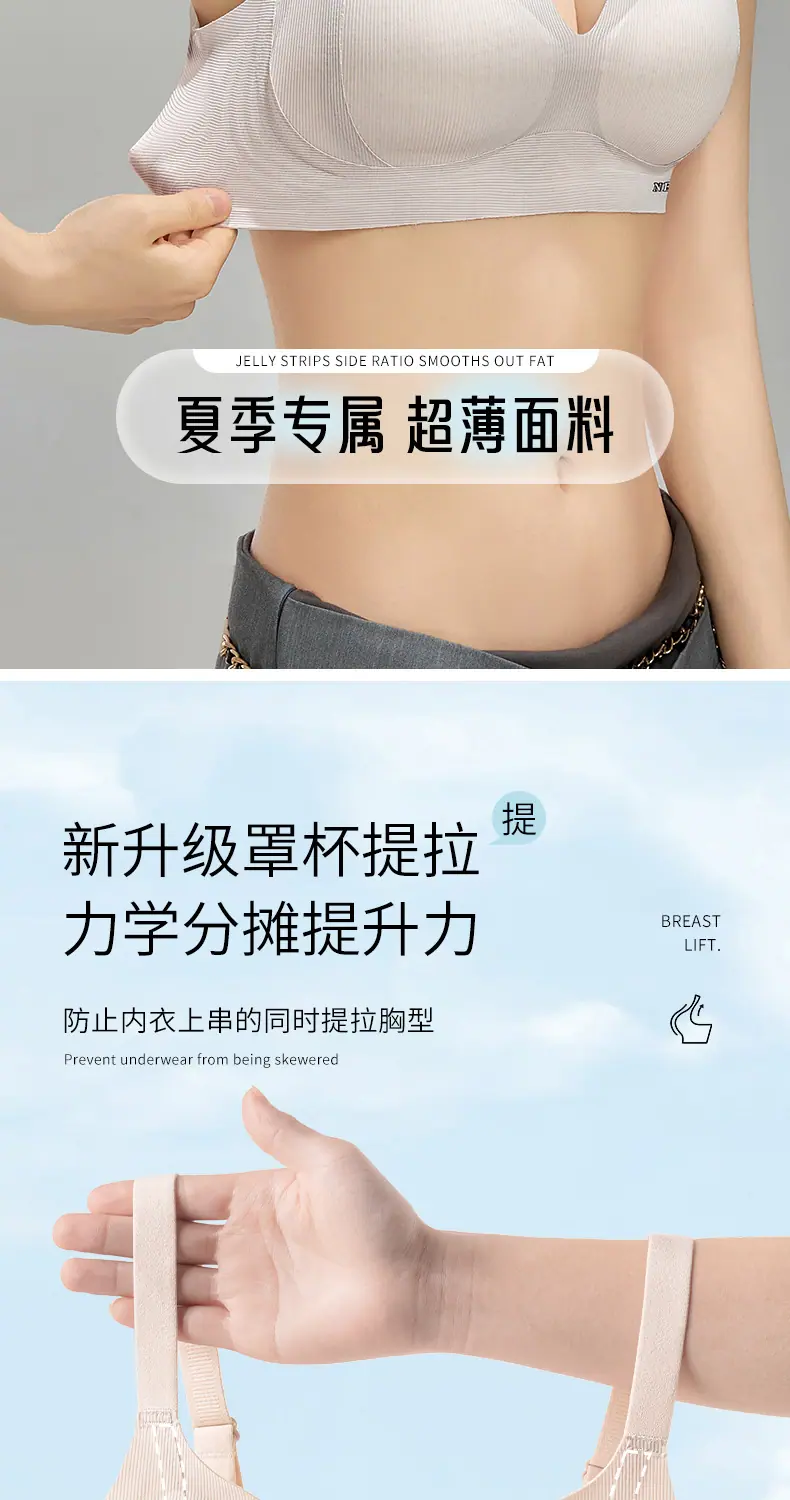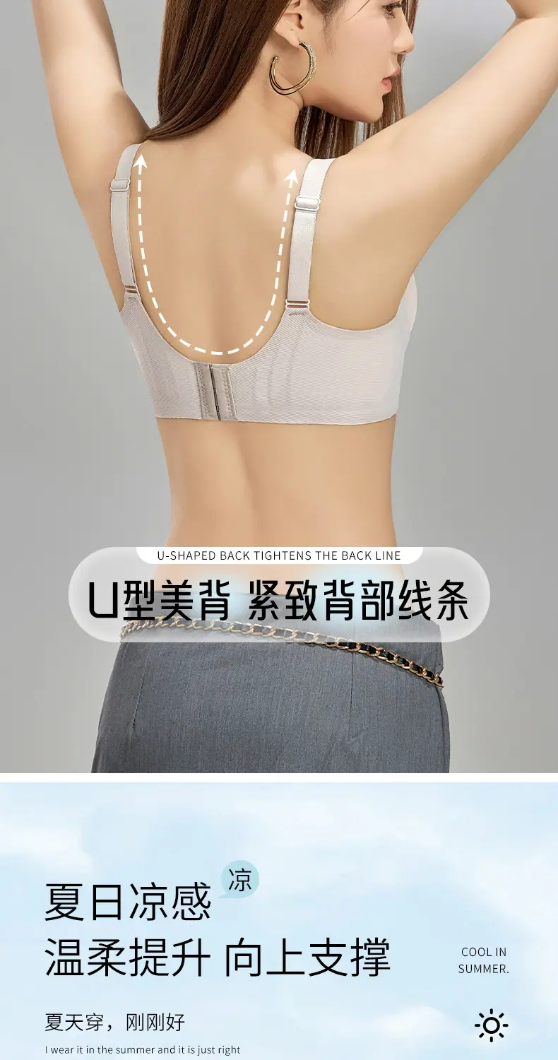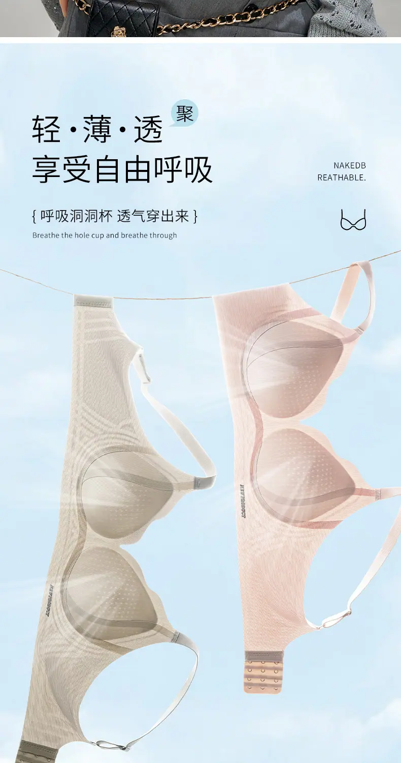 Ropa interior sin costuras para mujer, fina, con realce, transpirable, soporte lateral, recogido, push-up, anti flacidez, copa de sujetador de soporte suave, sexy