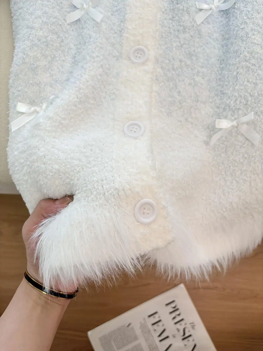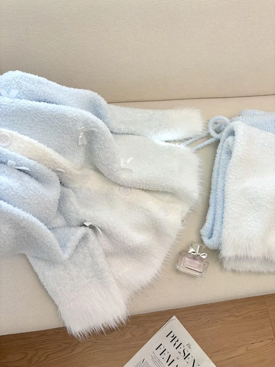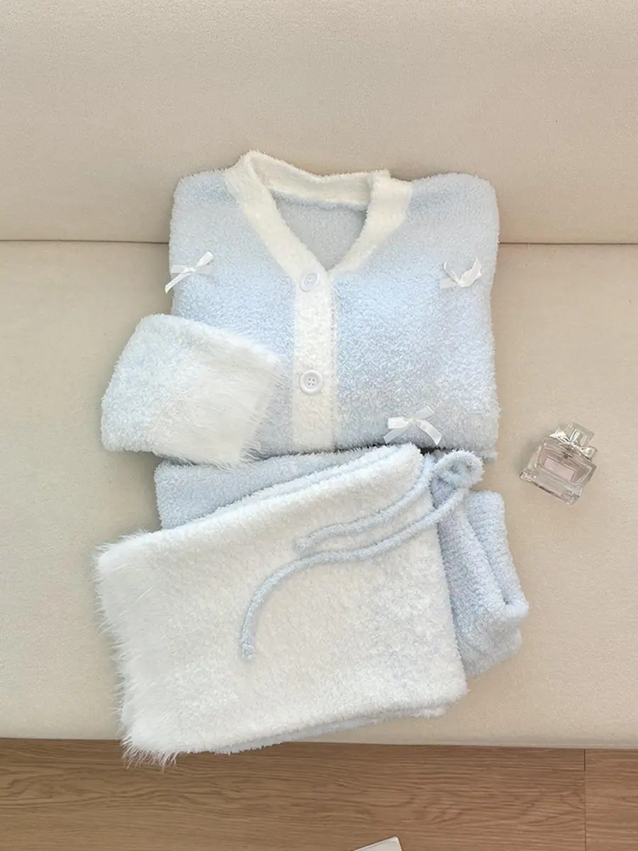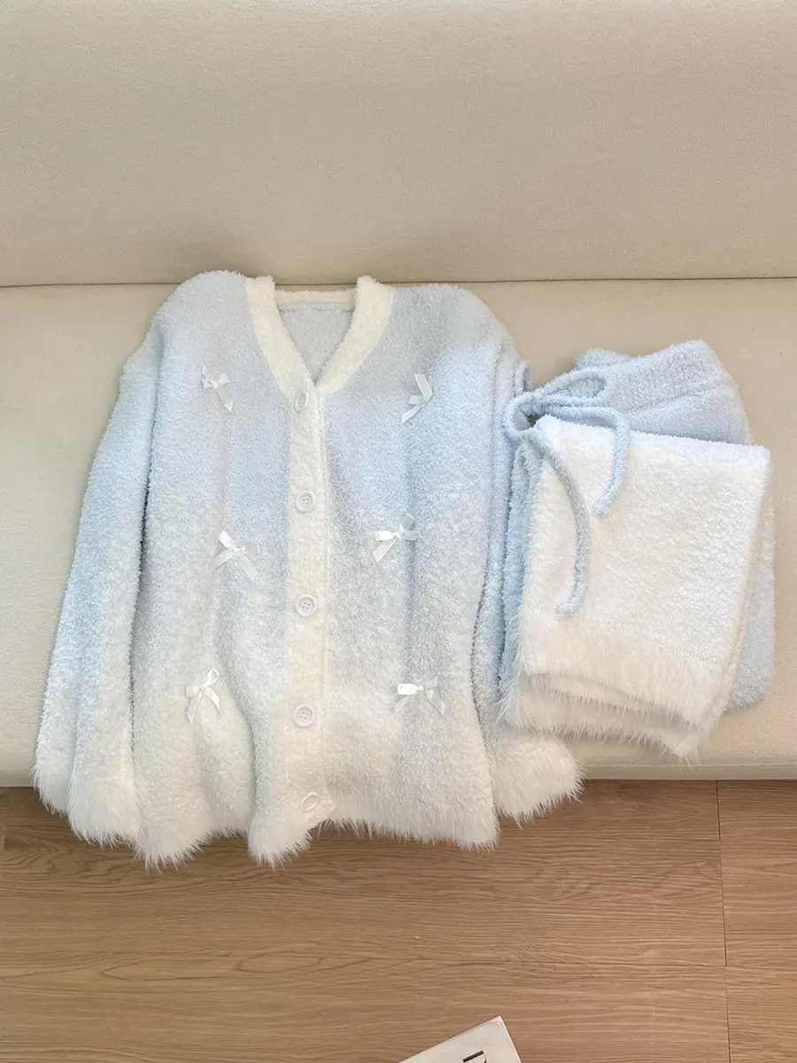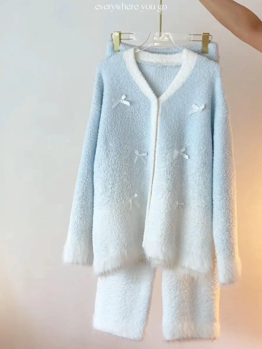 Pijama de Terciopelo de Media Manga para Niña Dulce, Fresco, con Lazo Dulce y Degradado, para Mujer, Otoño Invierno, Grueso y Cálido, Ropa para el Hogar, a la Moda