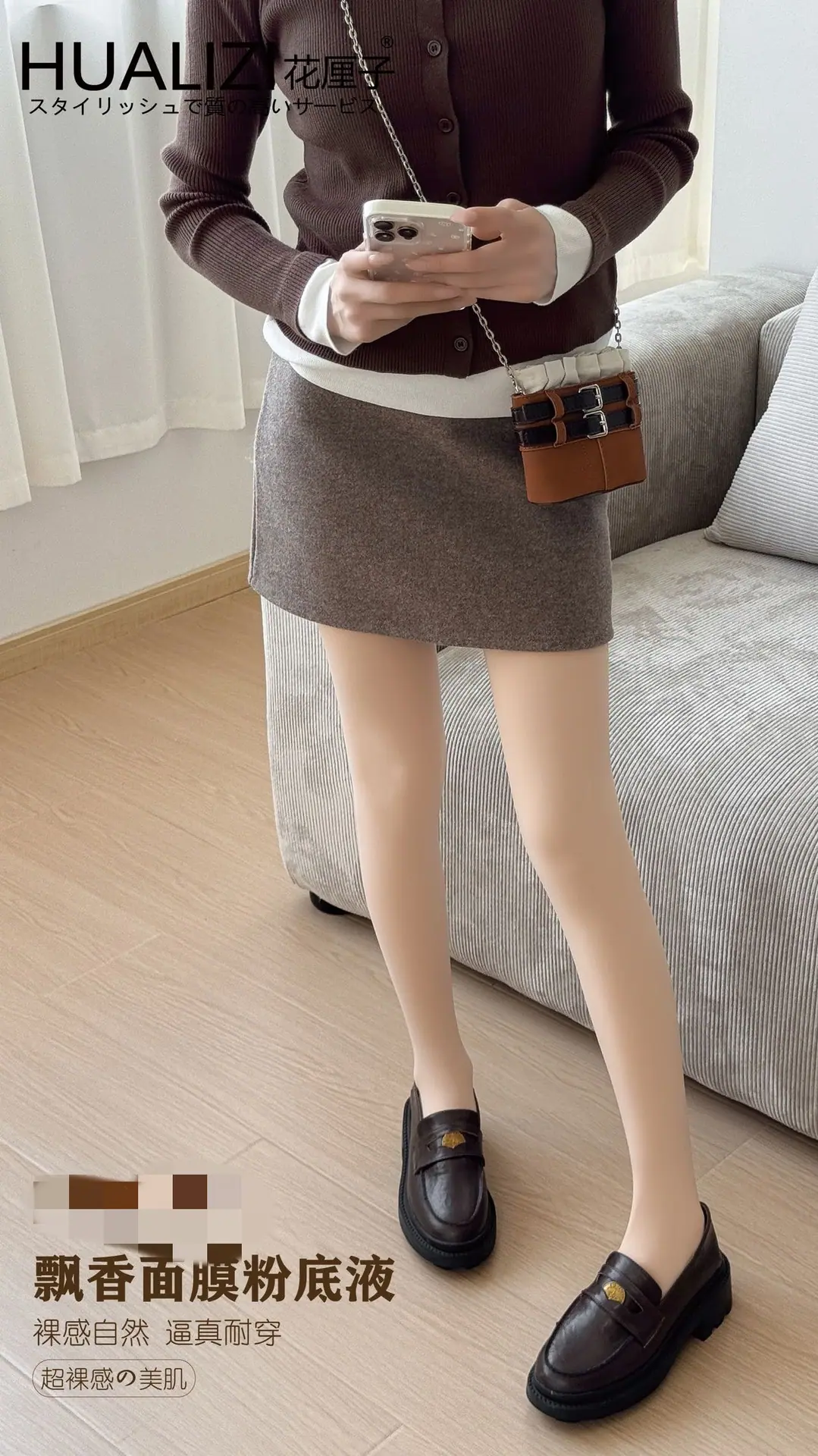 Artefacto de Pierna Descubierta Leggings Base Natural Sensación Desnuda para Mujer Color Base Color Carne Medias Otoño e Invierno Forrado de Felpa Espesado Color Piel Pantimedias
