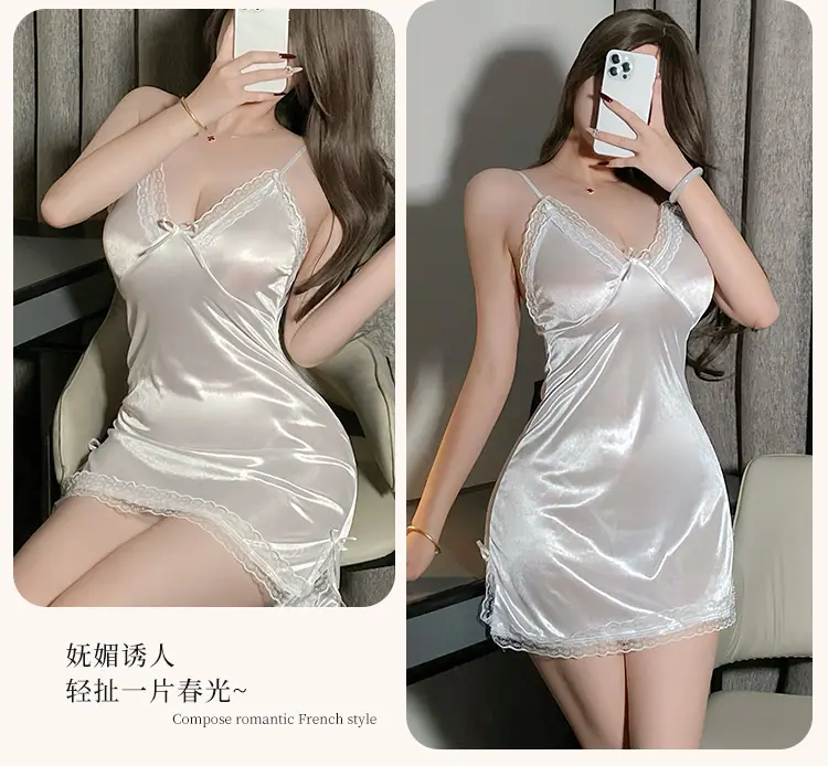 Pijama de Lencería Sexy para Mujer Camisola Linda de Encaje sin Mangas Camisón