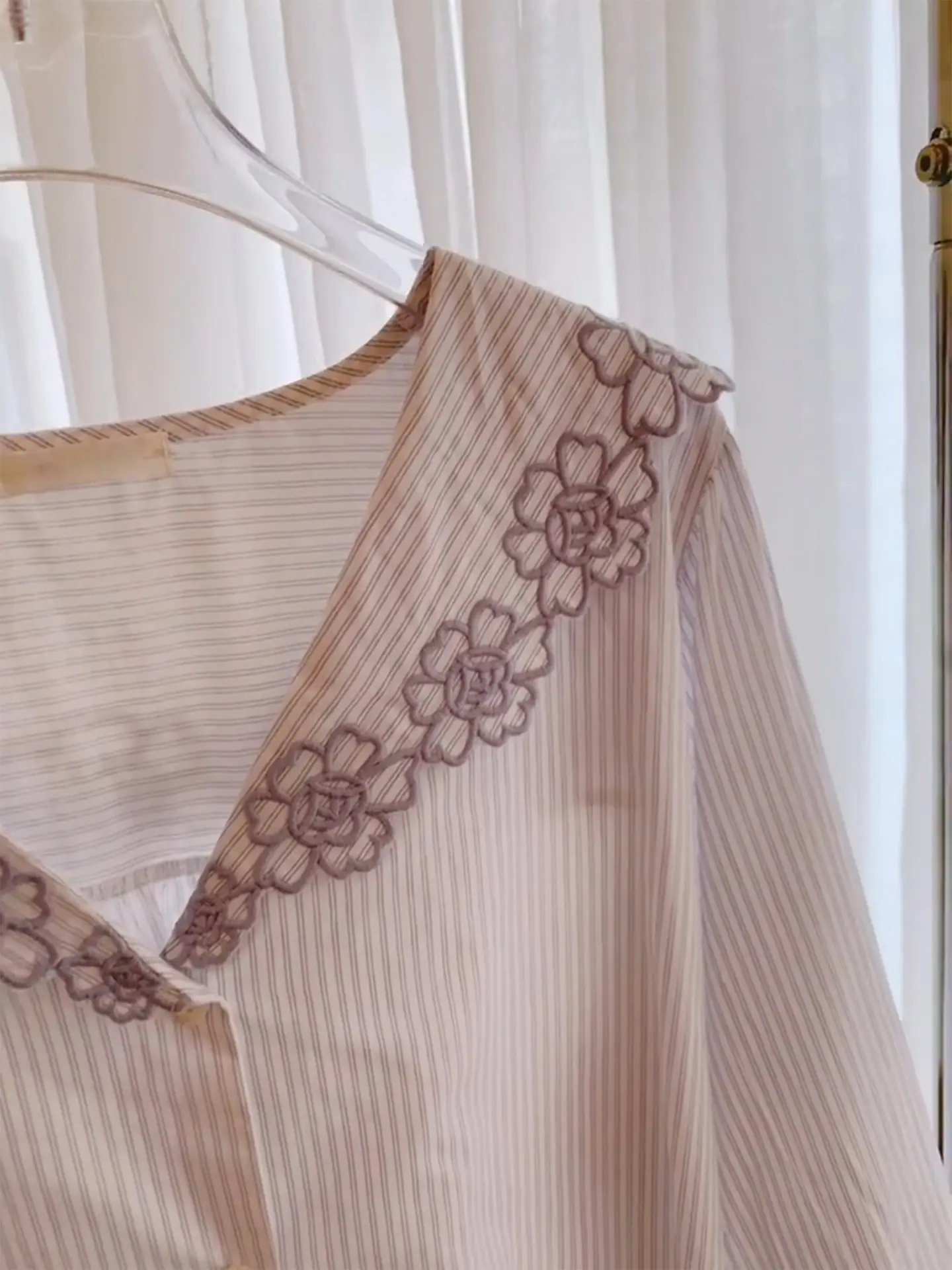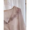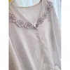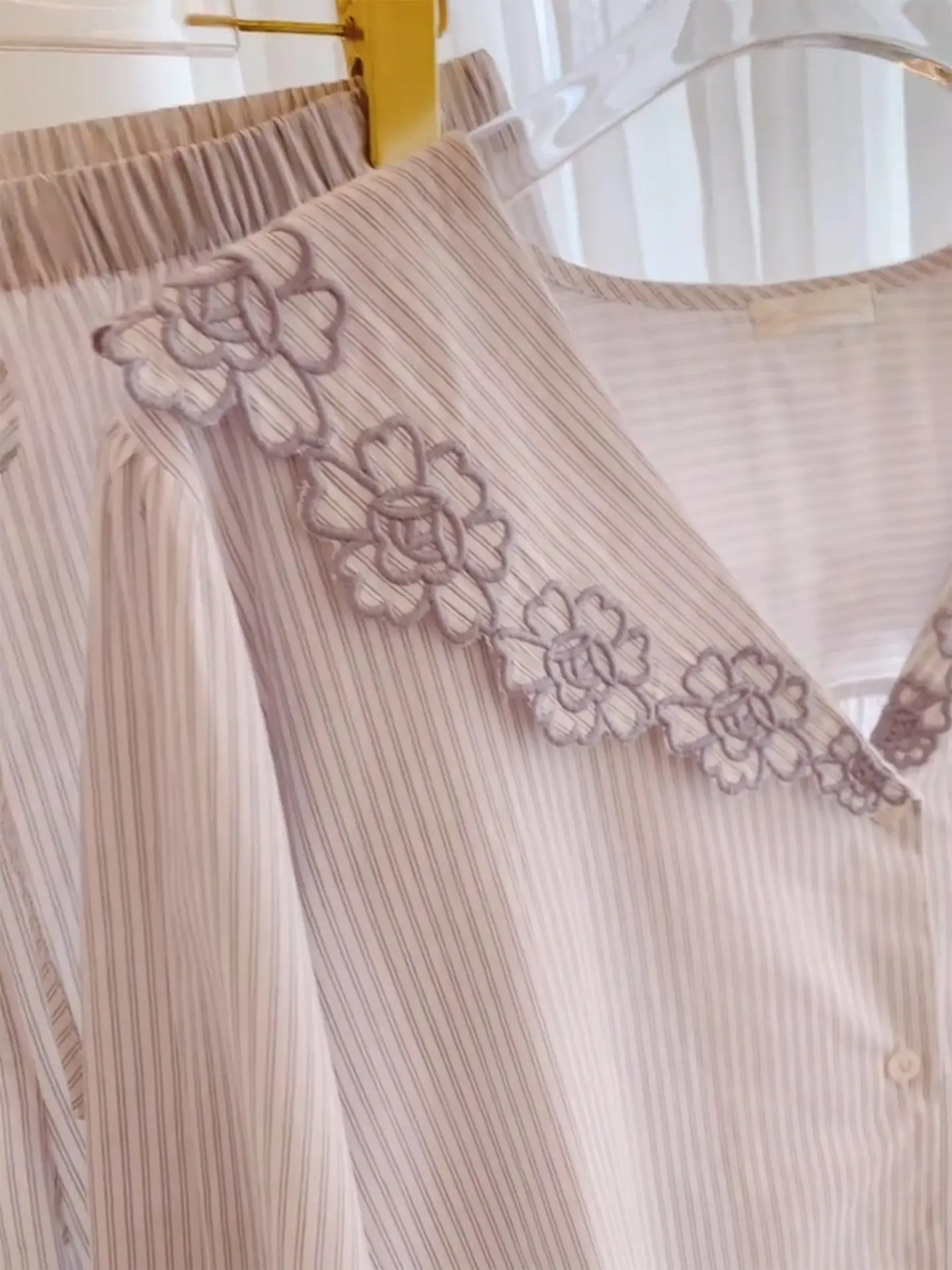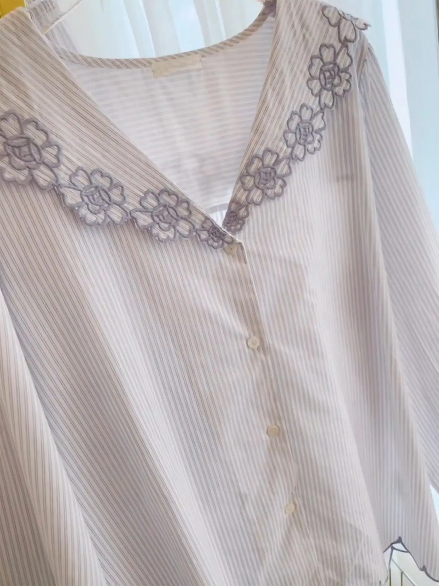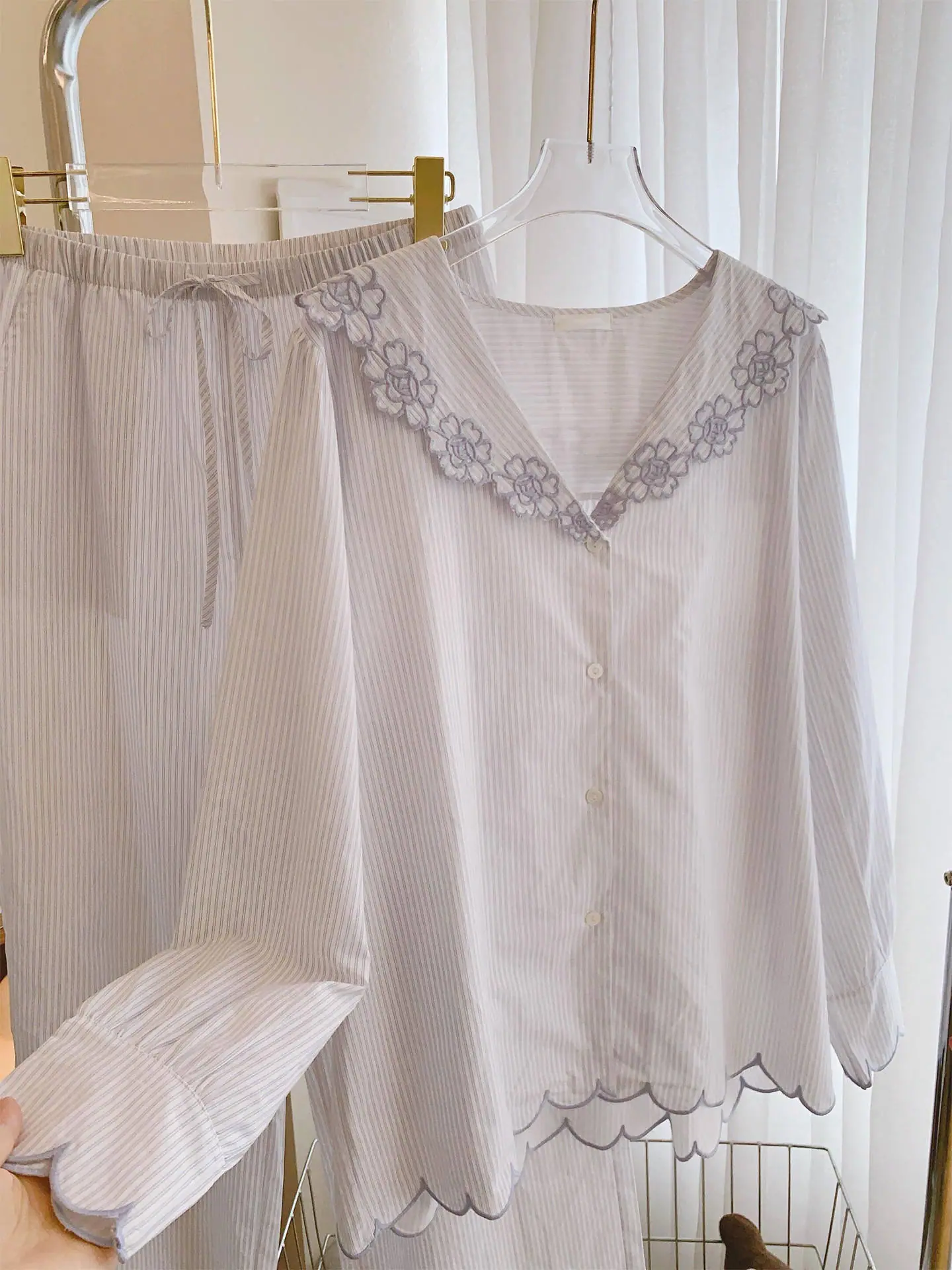 Compra Pijama de encaje a rayas puro y dulce estilo coreano para mujer, otoño nuevo, sencillo, de manga larga y pantalón largo, conjunto de ropa de casa de talla grande al por mayor en Joom.pro