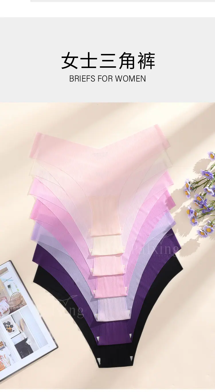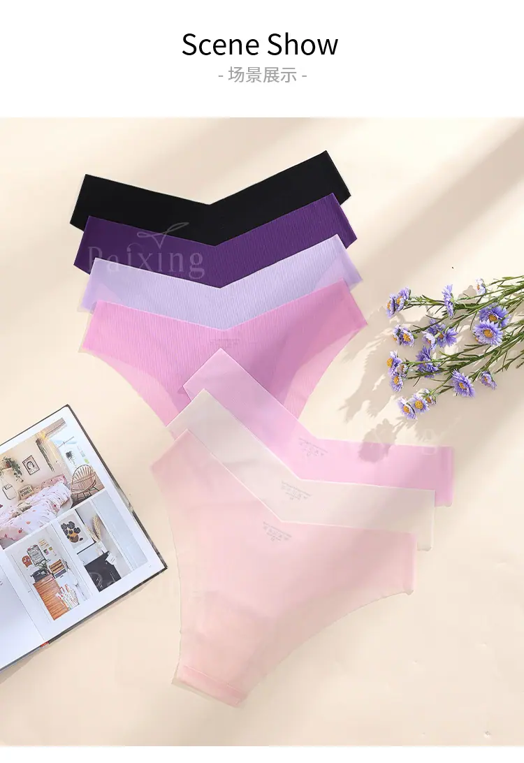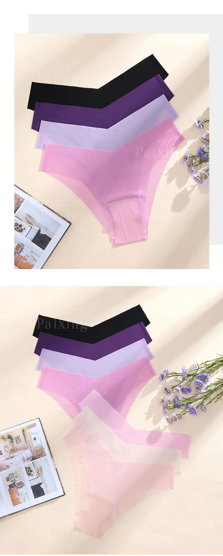 Ropa interior de yoga invisible delgada de una pieza sin costuras para mujer talla grande sexy de corte bajo seda de hielo sensación fresca verano calzones triangulares