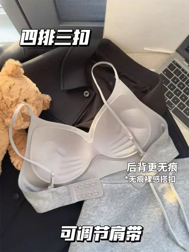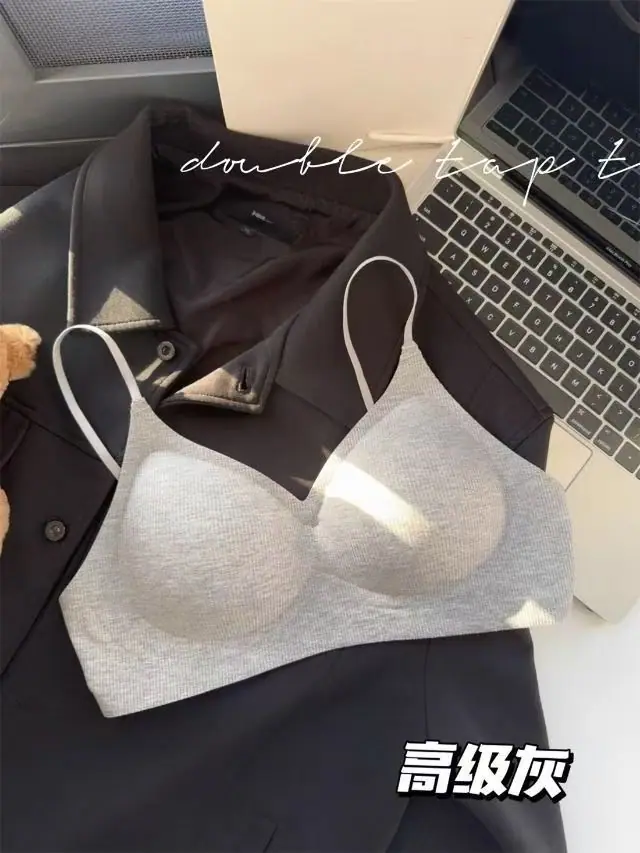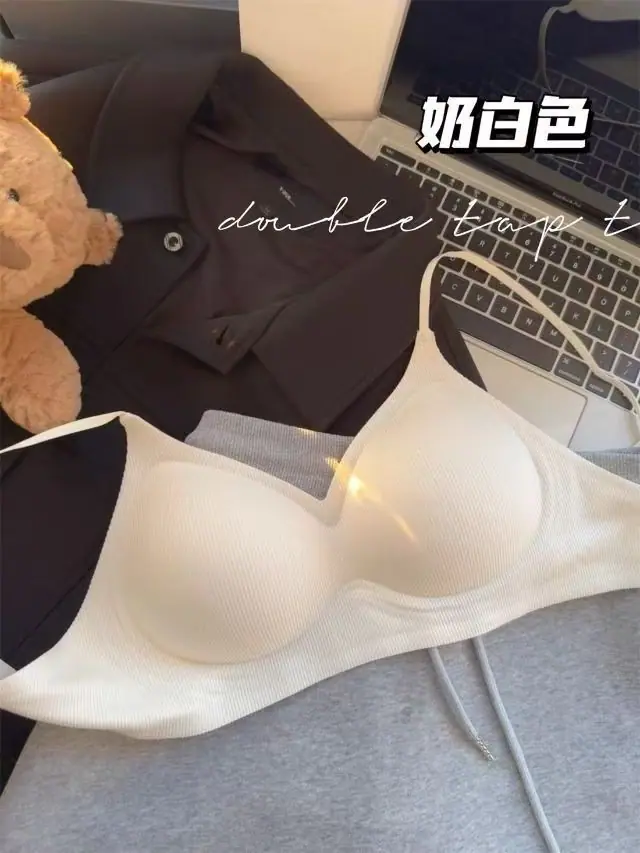 Sujetador deportivo sin costuras con tirantes para mujer, cómodo, con copa fija, para busto pequeño, realce para mostrar busto grande, caricatura, sin aros, sujetador fino