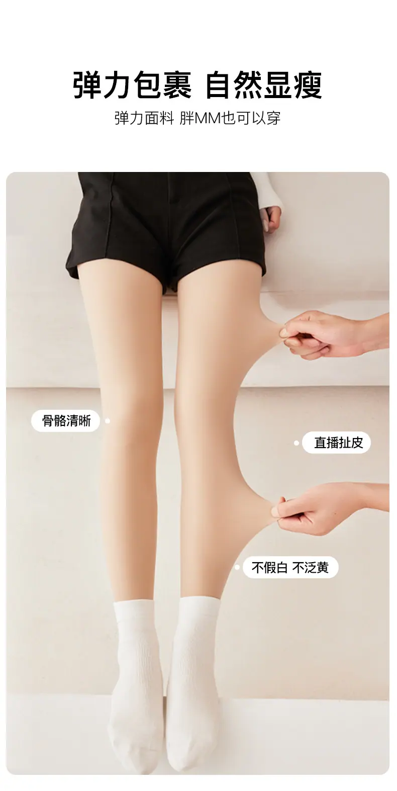 Medias de Terciopelo para Mujer Sensación Desnuda Pierna Ligera Otoño e Invierno Nuevo Grueso Forrado de Lana Color Carne Leggings al por Mayor