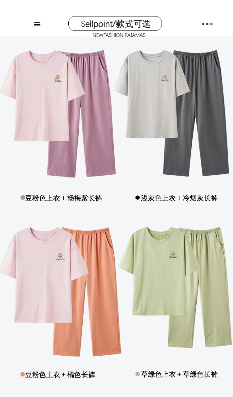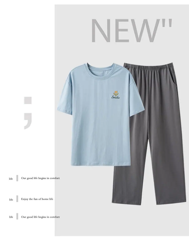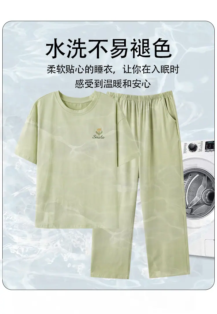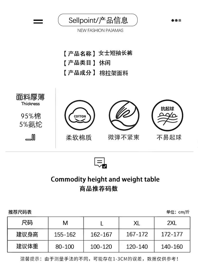 Pijama para Mujer Pantalones de Manga Corta Algodón Fresco Verano Traje Casual Amigable con la Piel Suave Ropa de Exterior Algodón para Mujer Ropa para el Hogar