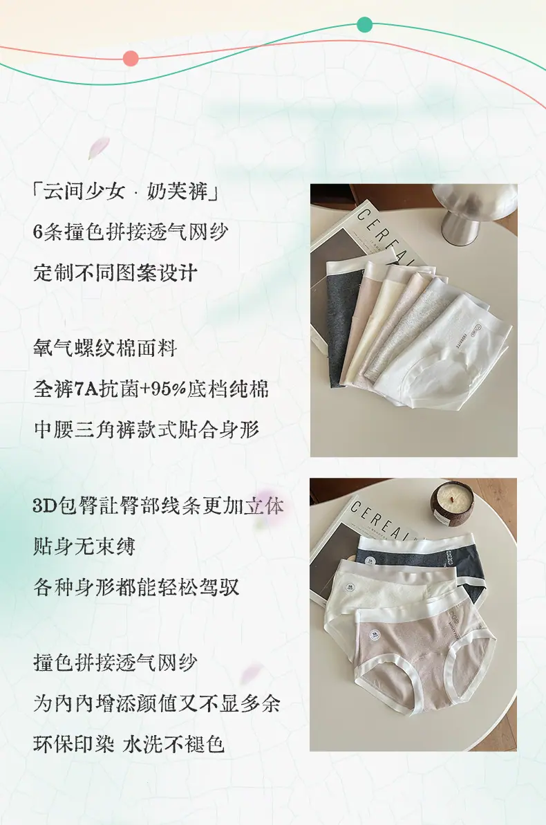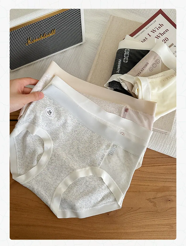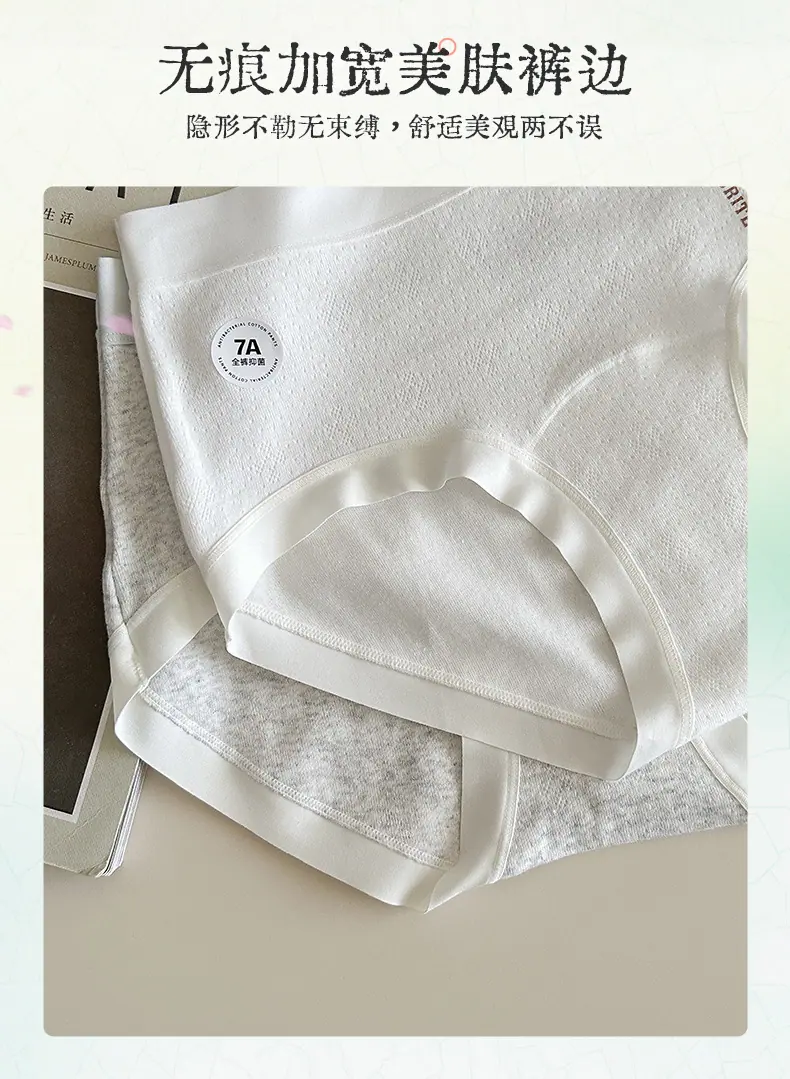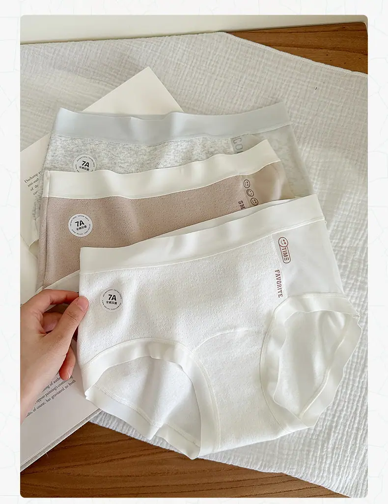 Braguitas para Mujer Estilo Azure Dulce y Puro 7A Antibacterianas Algodón Puro Empalmado Malla Suave Respetuosas con la Piel Tiro Medio Braguitas Triángulo para Mujer