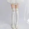 Meias Brancas de Renda Lolita Acima do Joelho jk Estilo Ballet Laço de Fita Azul Estudante Versátil Meias Longas