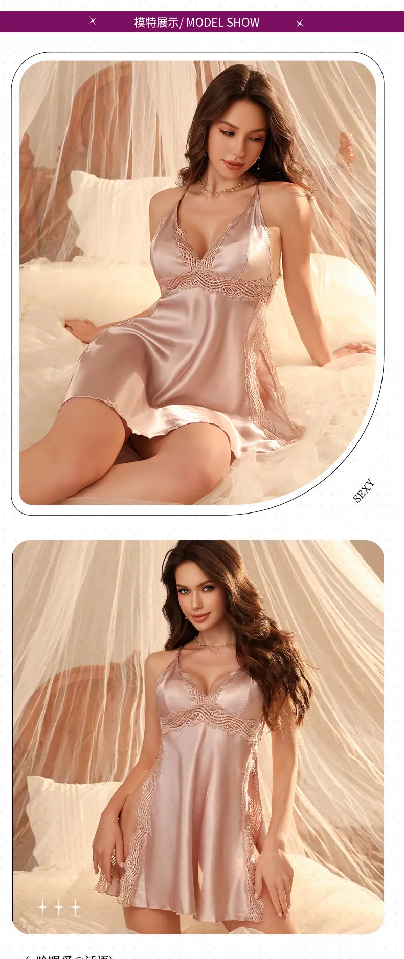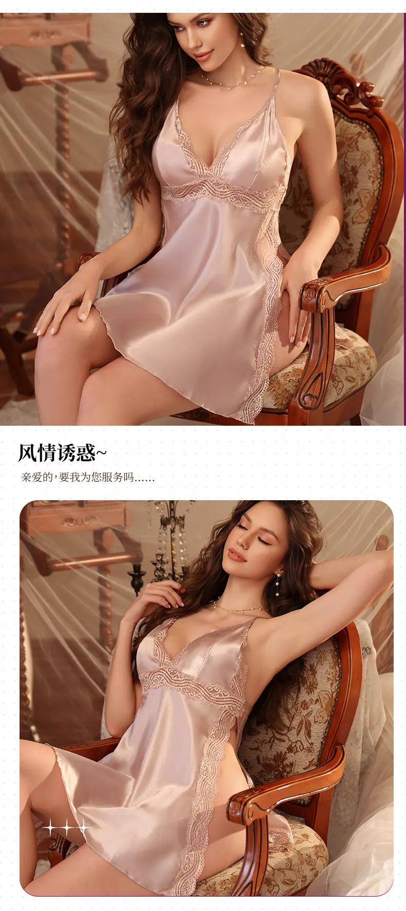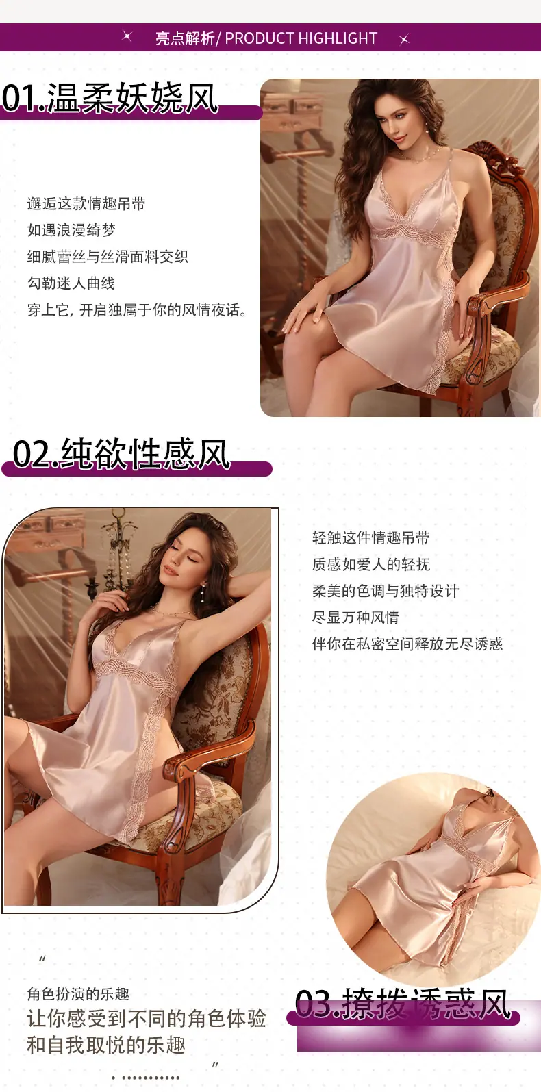 Compra Xi Yun Lencería Sexy Europea y Americana Camisón Sexy de Deseo Puro Encaje Tentación Pijama de Una Pieza Falda Sexy con Tirantes para Mujer al por mayor en Joom.pro