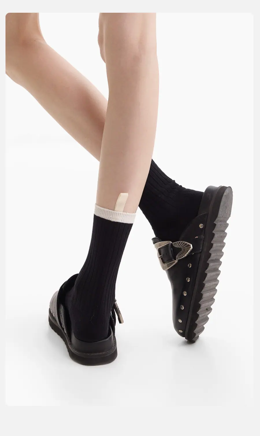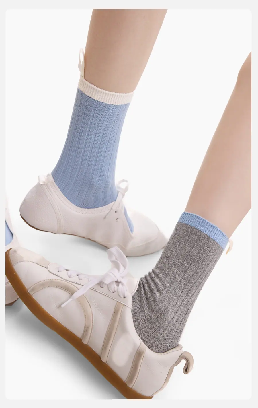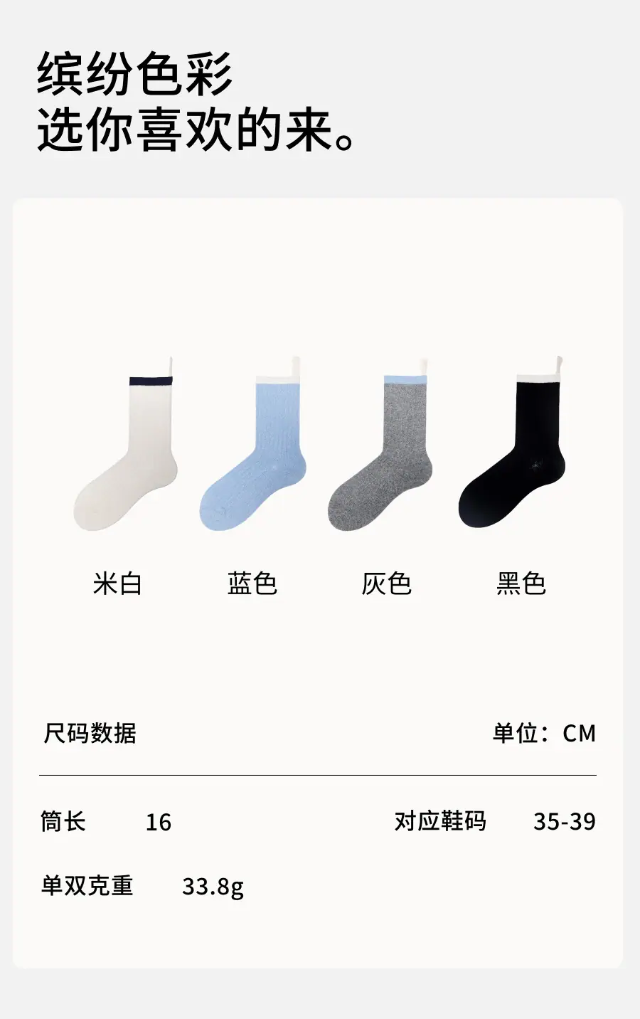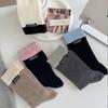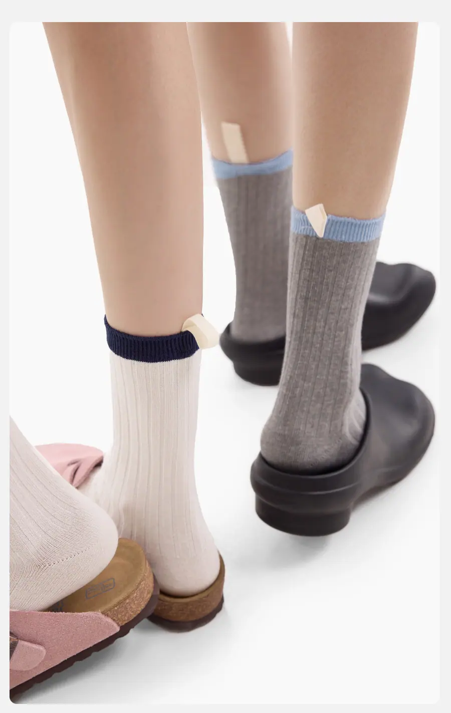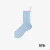 Calcetines de Mujer Algodón Puro Otoño e Invierno Clásico Bloque de Color Patchwork Calcetines Holgados Calcetines de Media Caña Casuales Blancos Usables Estilo Coreano Etiqueta de Tela