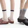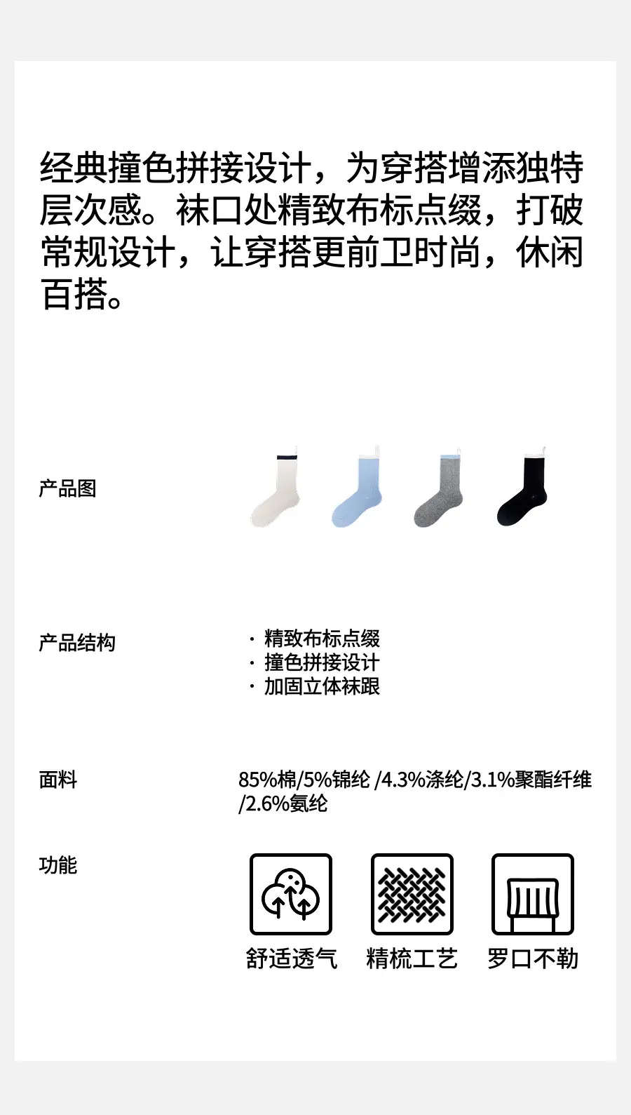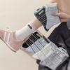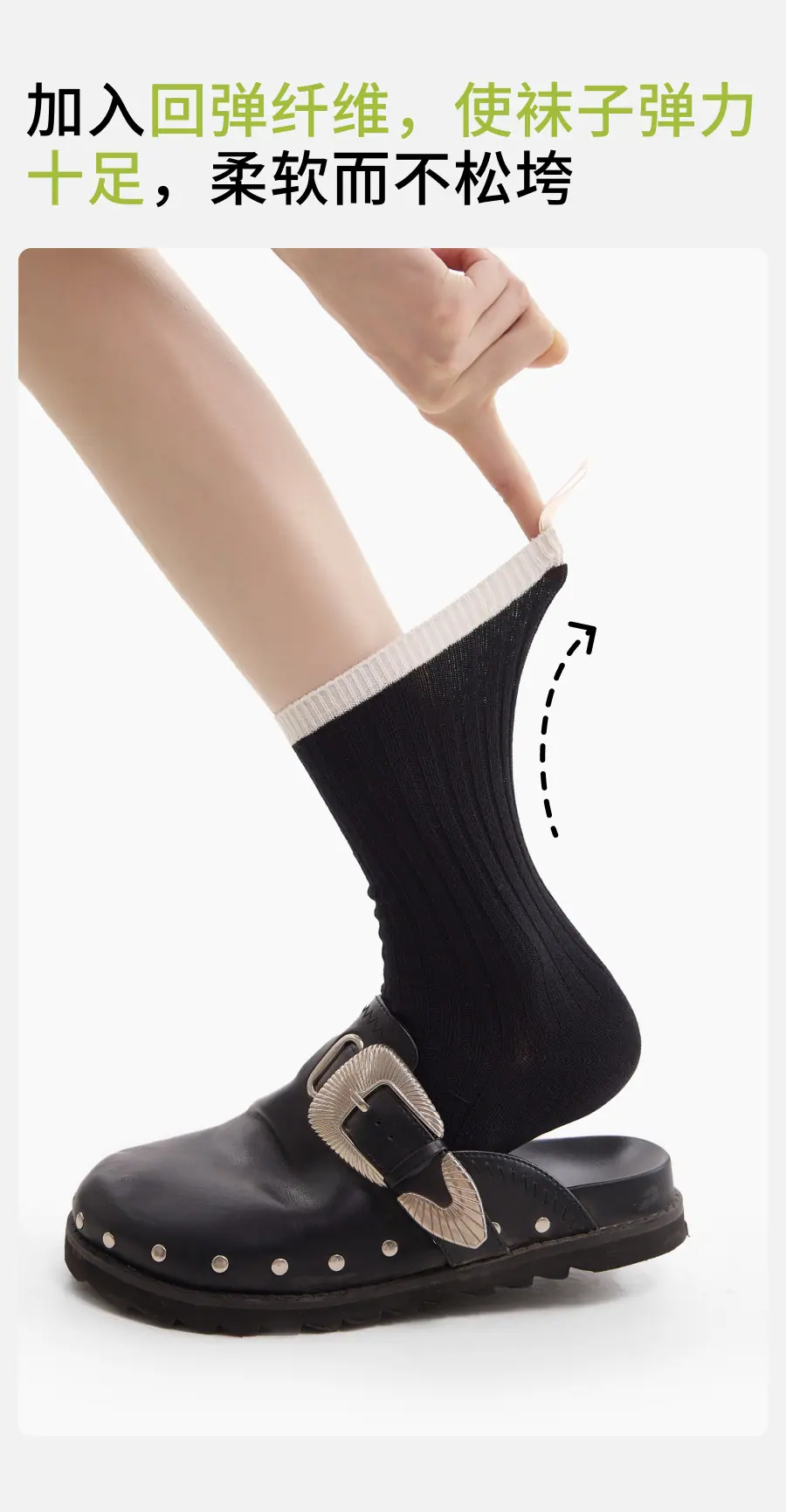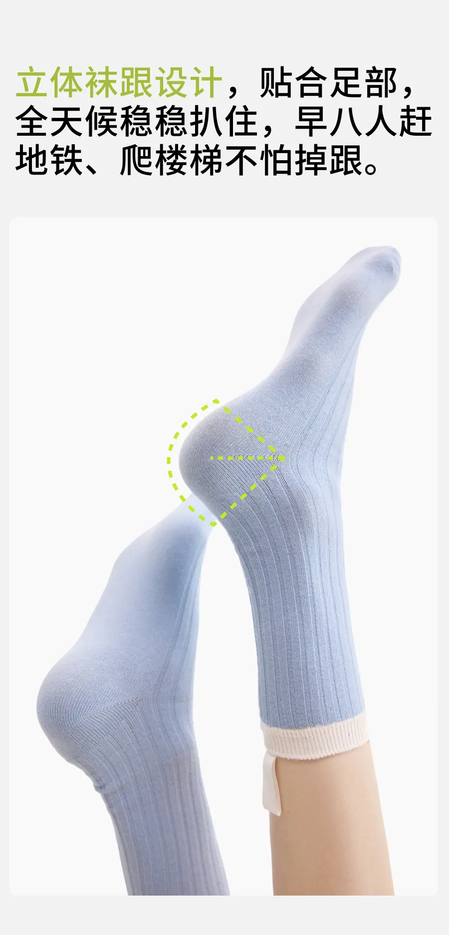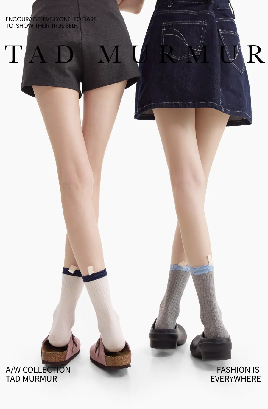 Calcetines de Mujer Algodón Puro Otoño e Invierno Clásico Bloque de Color Patchwork Calcetines Holgados Calcetines de Media Caña Casuales Blancos Usables Estilo Coreano Etiqueta de Tela