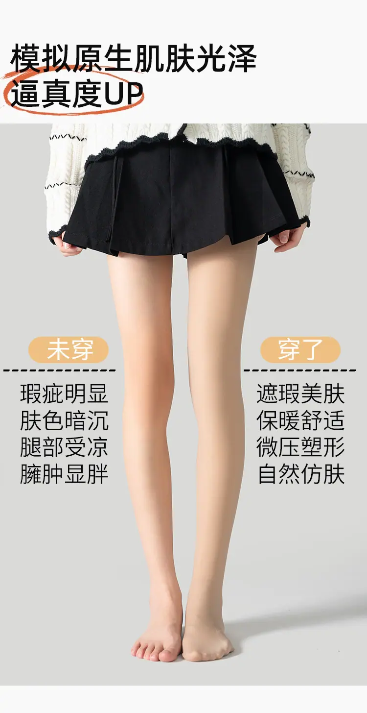 Otoño e invierno más terciopelo más leggings gruesos base líquida artefacto de pierna desnuda sensación nude pantimedias tono piel negra calcetines integrados luz de agua