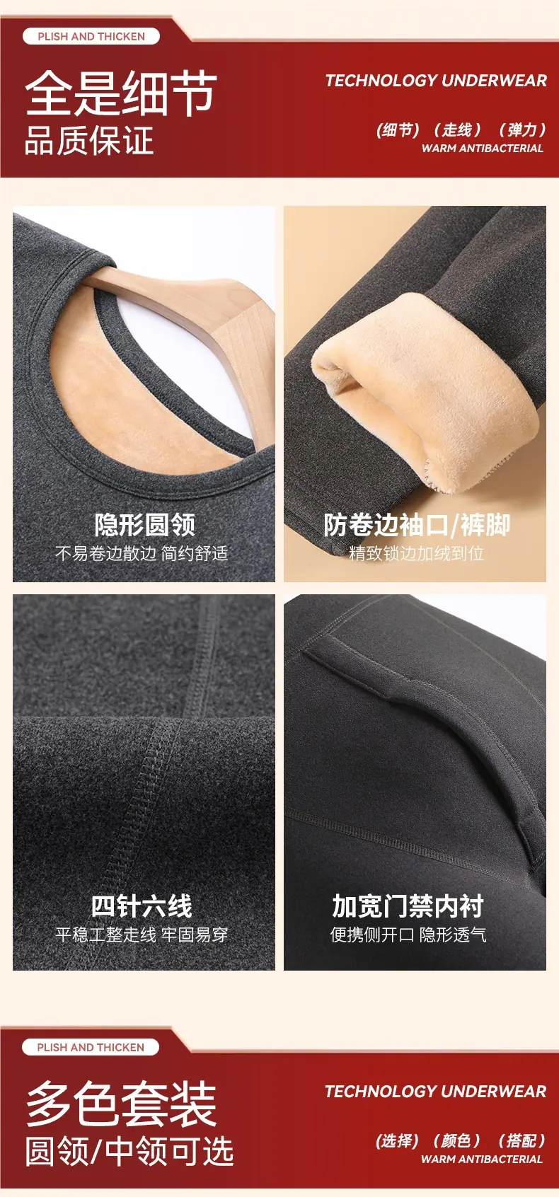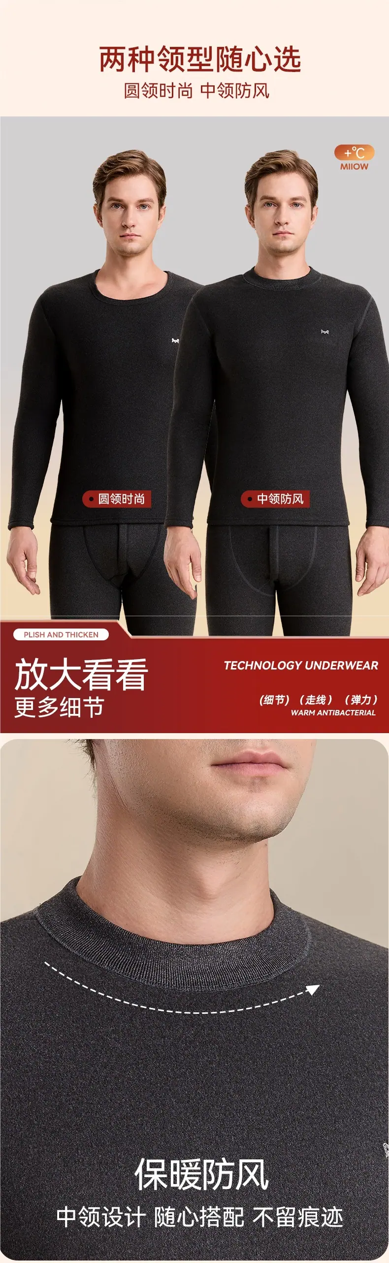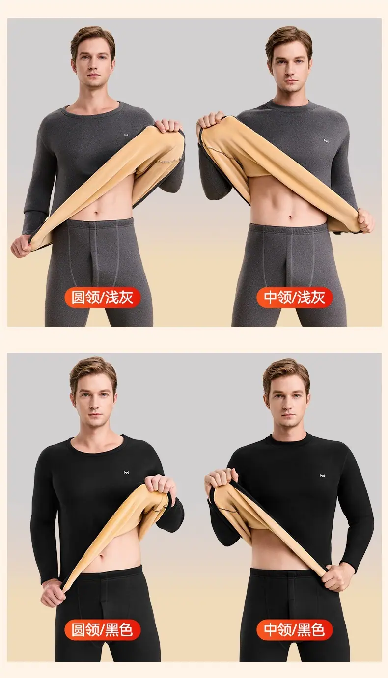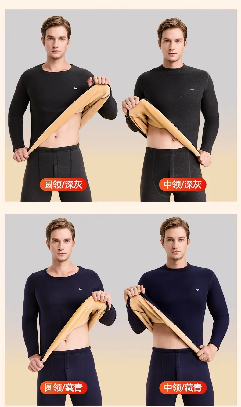 Ropa Interior Cálida para Hombre Set de Ropa y Pantalones de Otoño Generador de Calor con Forro Polar Grueso Cuello Medio Alto Capa Base Estilo de Invierno para Hombre