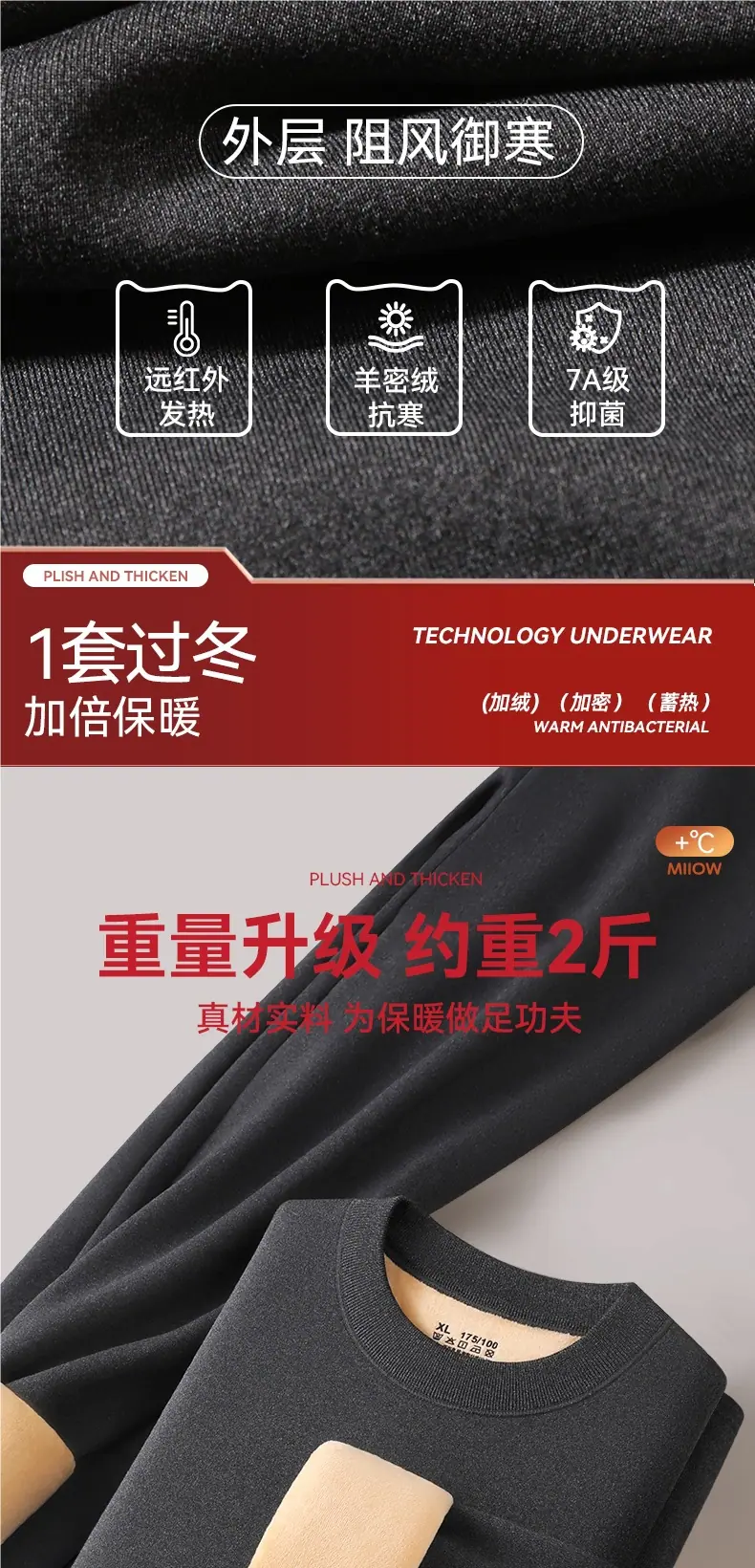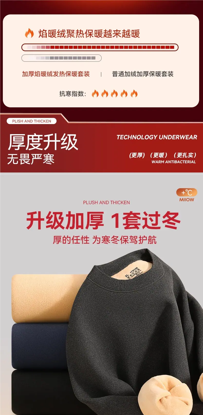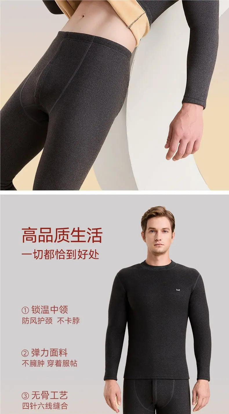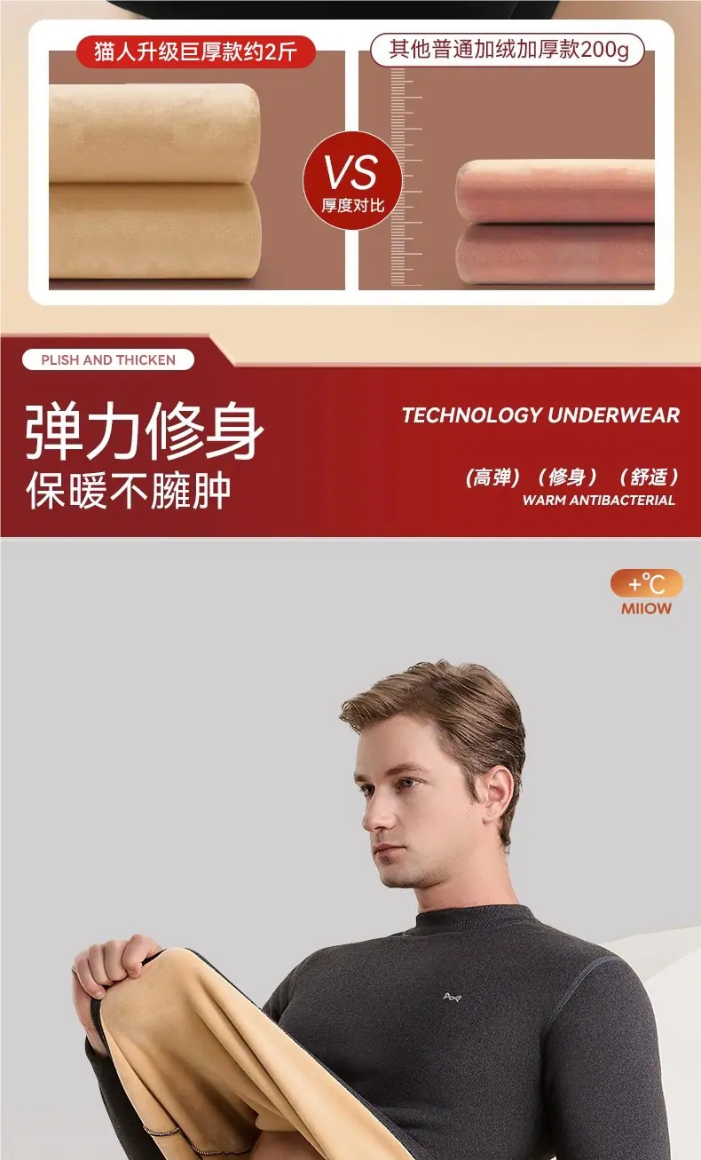 Ropa Interior Cálida para Hombre Set de Ropa y Pantalones de Otoño Generador de Calor con Forro Polar Grueso Cuello Medio Alto Capa Base Estilo de Invierno para Hombre