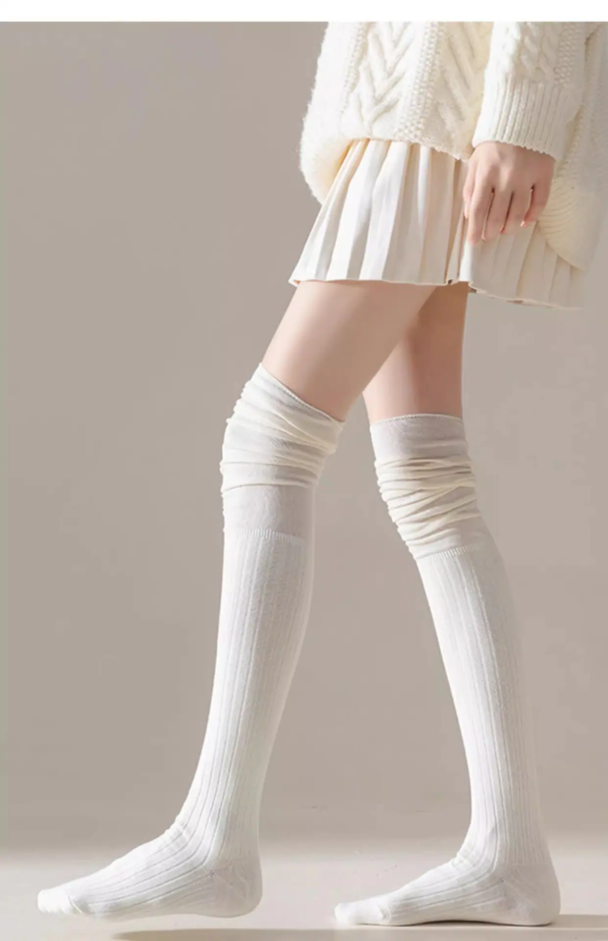 Compra Calcetines de Mujer Otoño e Invierno Calcetines Largos por Encima de la Rodilla Tubo Alto Adelgazantes Blancos Calcetines Arrugados Calcetines hasta la Rodilla Calcetines de Media Caña Versátiles de Alta Calidad al por mayor en Joom.pro