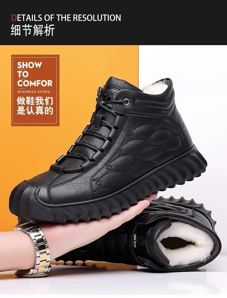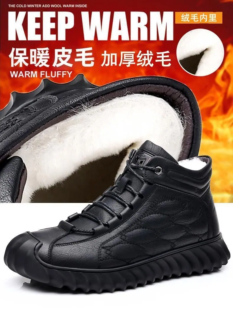 Compra Liquidación de Invierno 2024 Cuero Cálido con forro polar Zapatos de Algodón para Hombre Nieve a Prueba de Frío Botas Altas Antideslizantes Zapatos Gruesos de Algodón para Hombre al por mayor en Joom.pro