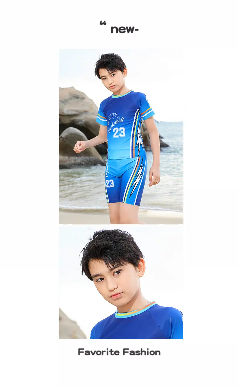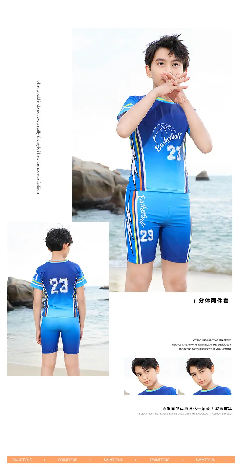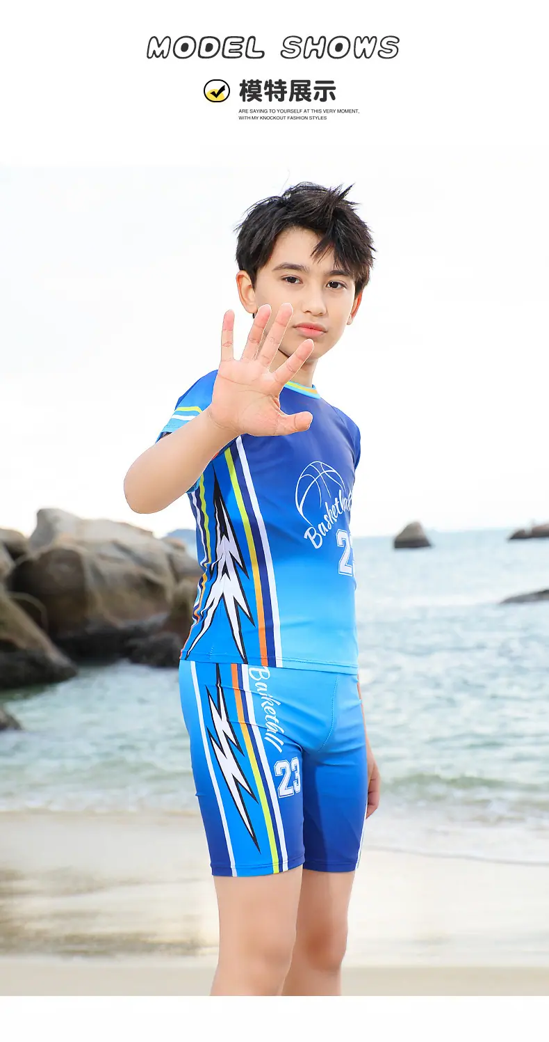 Compra Traje de baño profesional de entrenamiento para niños dividido manga corta bóxer traje de surf para niños medianos y grandes traje de baño para niño gordo para piscina al por mayor en Joom.pro