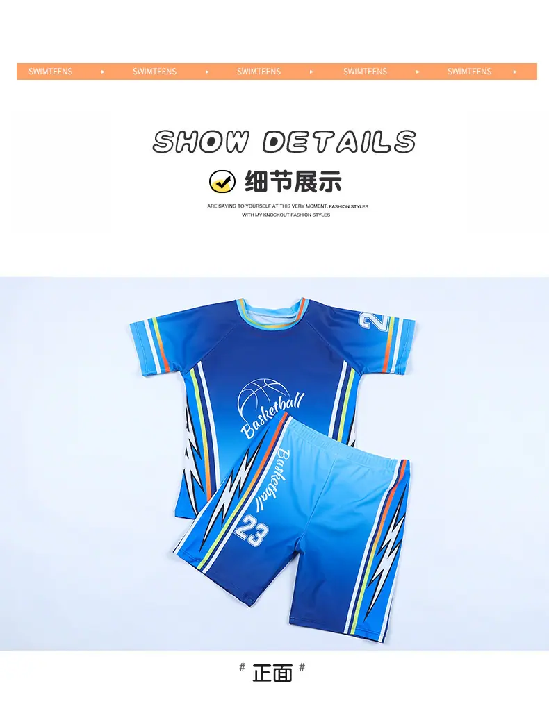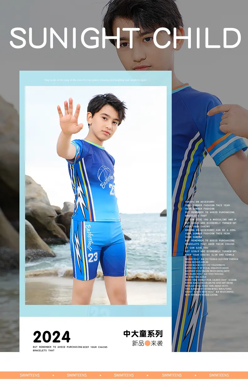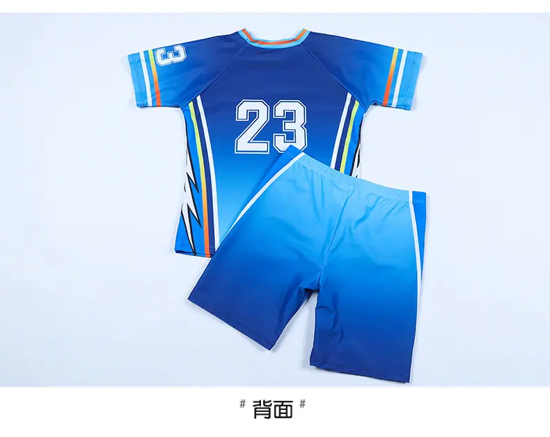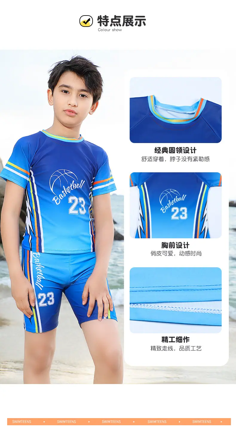 Compra Traje de baño profesional de entrenamiento para niños dividido manga corta bóxer traje de surf para niños medianos y grandes traje de baño para niño gordo para piscina al por mayor en Joom.pro