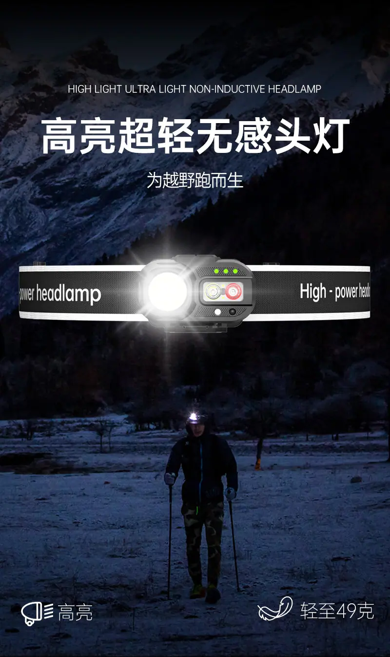 Compra Linterna Frontal LED para Exteriores de Alta Intensidad y Largo Alcance Inducción Larga Duración de Batería Portátil para Ciclismo al Aire Libre Luz para Correr de Noche Luz para Pesca Nocturna al por mayor en Joom.pro