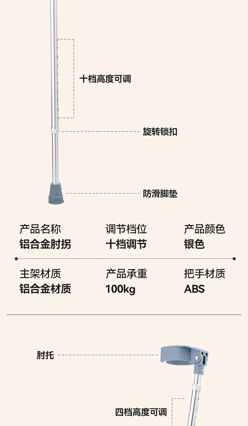 Compra Fabricante Codo de Aleación de Aluminio Personalizado Muleta de Codo Rehabilitación por Discapacidad Altura Ajustable Muleta de Mano Bastón para Caminar para Ancianos al por mayor en Joom.pro