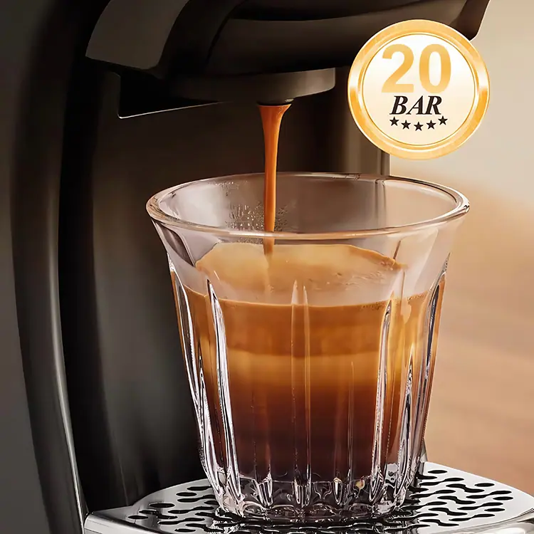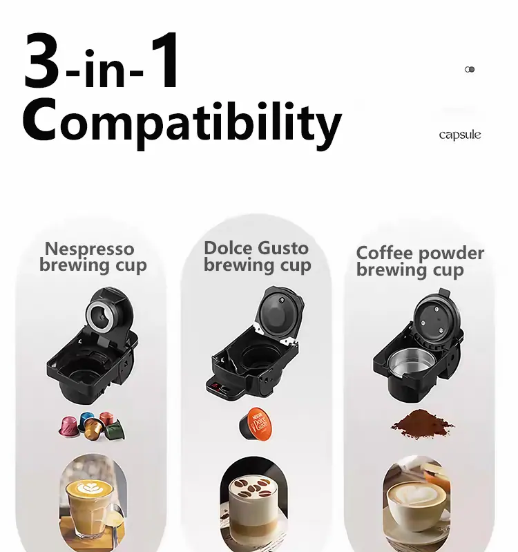 1.3 en 1 Cafetera Espresso:La Máquina de Espresso está diseñada para funcionar perfectamente compatible con cápsulas Nespresso y cápsulas Lavazza Blue. También es adecuado para café molido, por lo que puedes preparar una taza de café perfecta con la cantidad adecuada de café molido para tu gusto.. Si estás buscando una gran máquina de espresso, no busques más allá de nosotros. Sistema de Presión de 2.19 Bares Haciendo la Crema Perfecta: Cafetera Espresso Semiautomática 3 en 1, con bomba profesional de 19 bares y potente caldera de 1450W. Esta máquina de latte y capuchino le brinda una extracción de máxima calidad, lo que resulta en un aroma más fragante y rico. Esta cafetera capuchinera viene con dos modos de preparación, café expreso y café largo, para ayudarte a ajustarte a tus preferencias personales de sabor.. Puede usar nuestra máquina de café espresso para preparar cappuccinos, lattes o café blanco solo en casa o en la oficina.