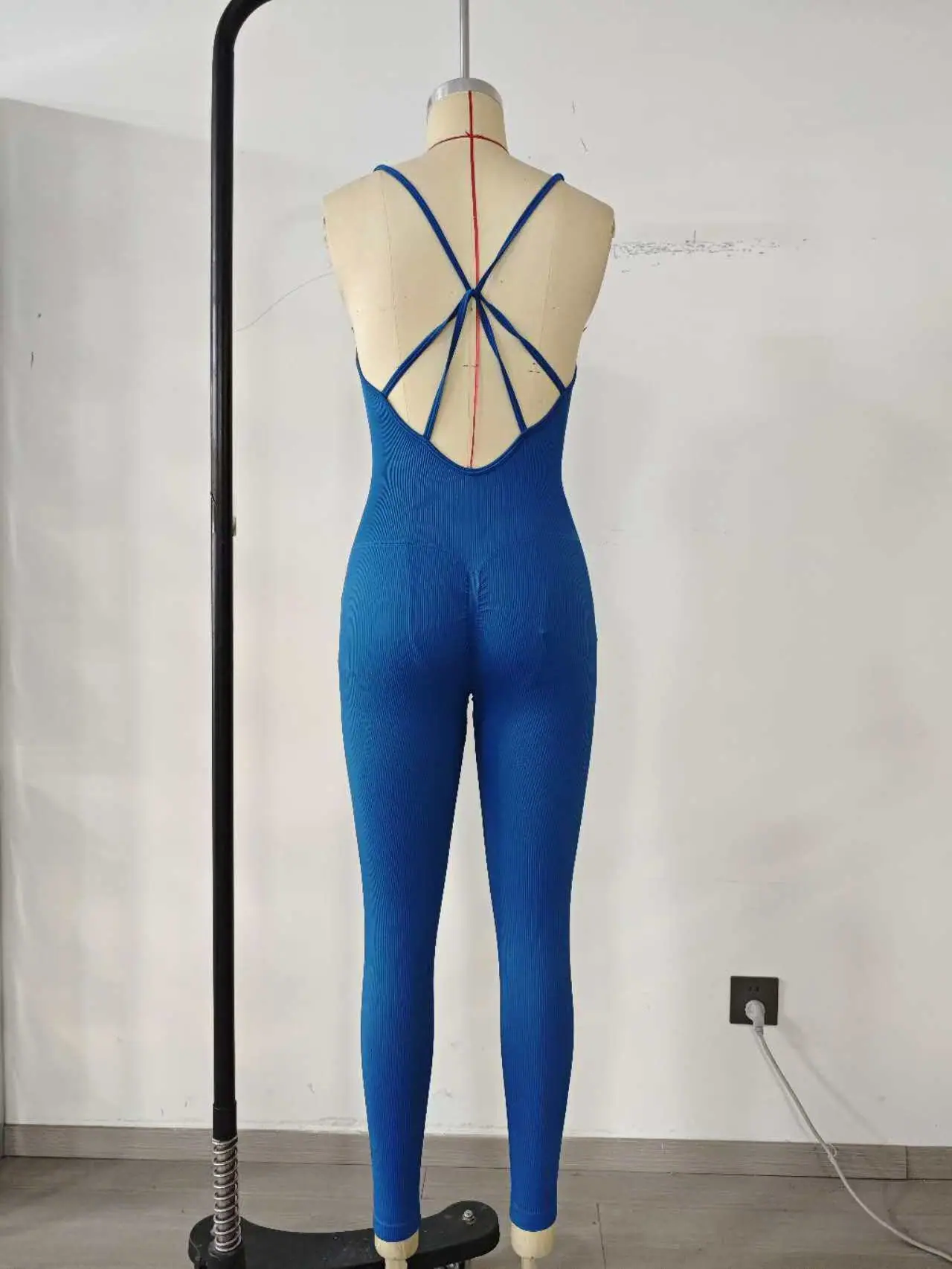 Compra Traje de Yoga Sexy de Una Pieza Europeo y Americano Trasero de Durazno Secado Rápido Espalda Hermosa Cruzada Sin Almohadilla en el Pecho Ajustado Fitness Pantalón Largo Body al por mayor en Joom.pro