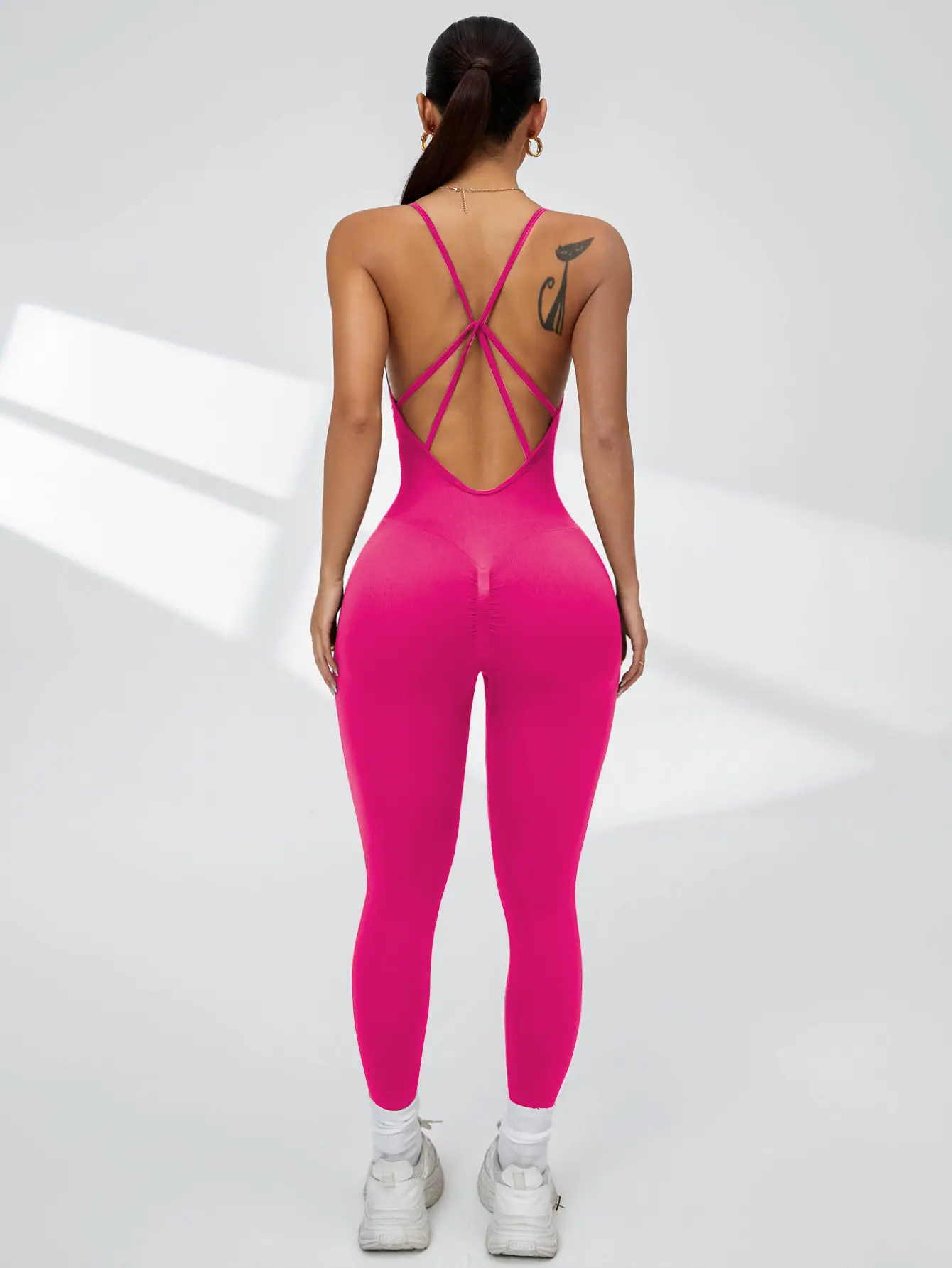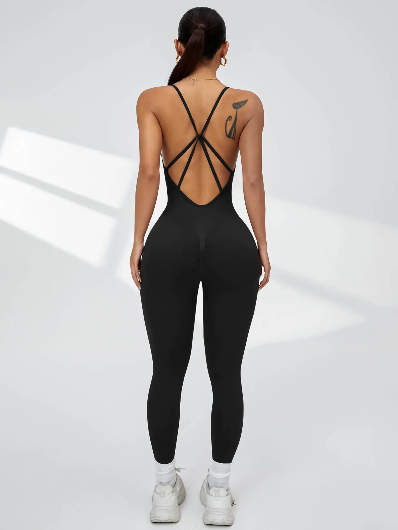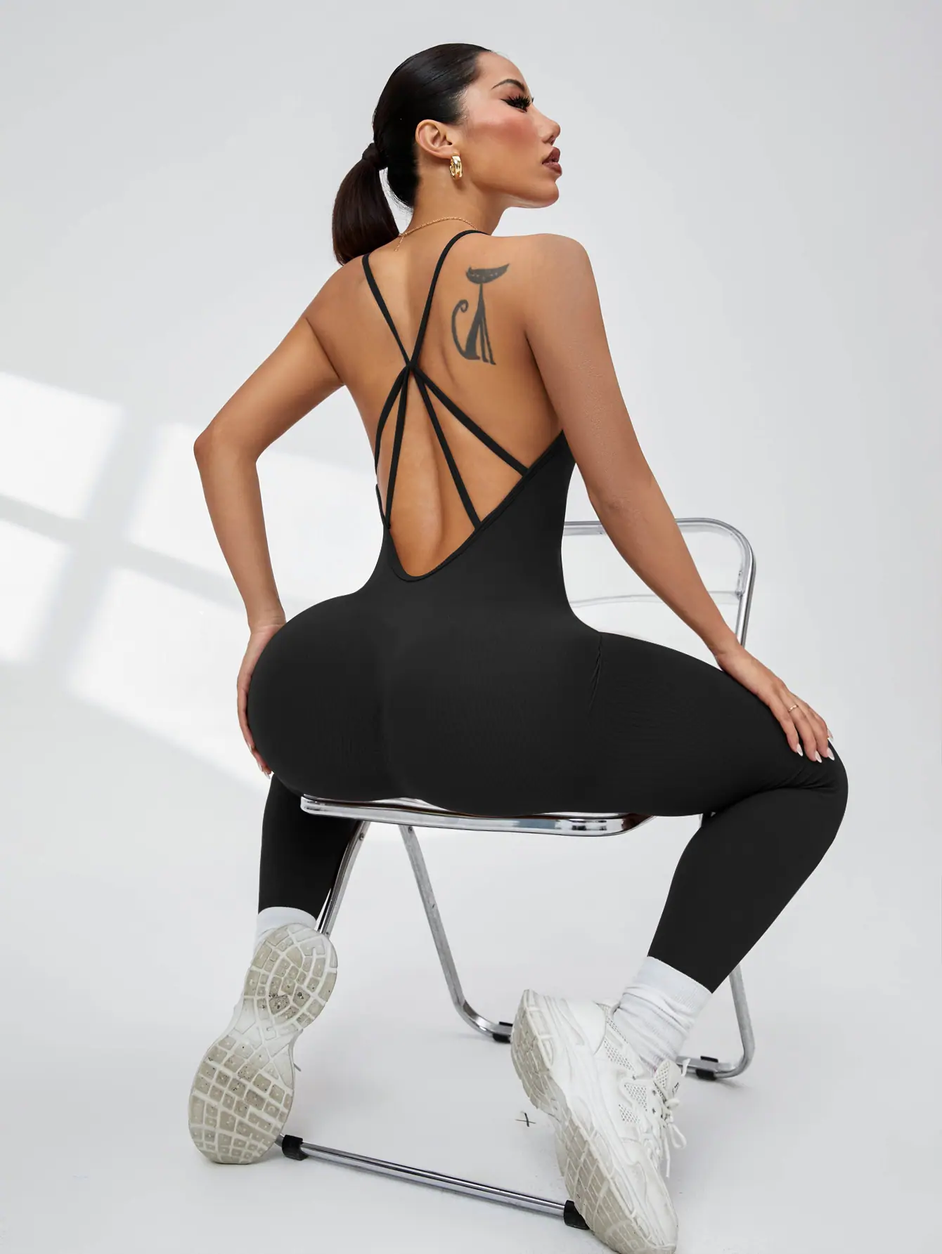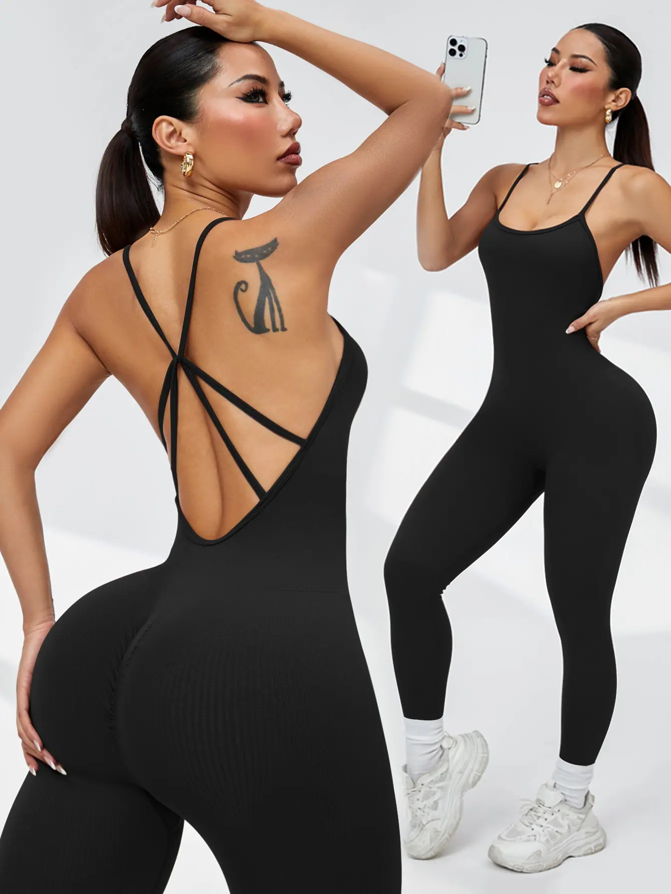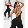 Traje de Yoga Sexy de Una Pieza Europeo y Americano Trasero de Durazno Secado Rápido Espalda Hermosa Cruzada Sin Almohadilla en el Pecho Ajustado Fitness Pantalón Largo Body