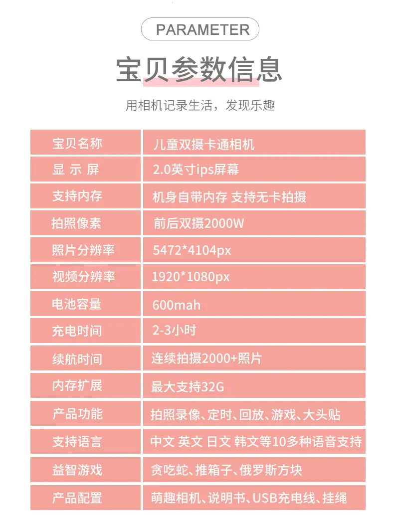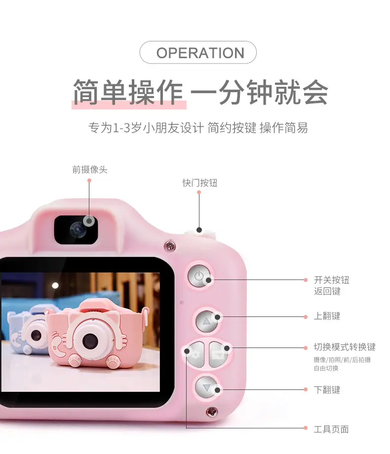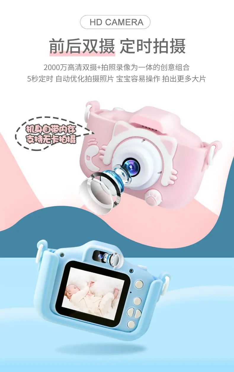 Cámara para niños digital cámara doble delantera y trasera mini cámara juguete puede tomar fotos video estudiantes campus regalo de cumpleaños
