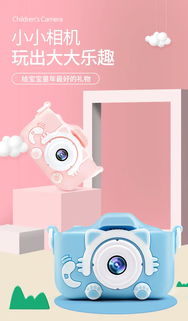 Compra Cámara para niños digital cámara doble delantera y trasera mini cámara juguete puede tomar fotos video estudiantes campus regalo de cumpleaños al por mayor en Joom.pro