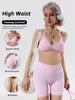 Compra Conjunto Deportivo de Yoga DF para Mujer Sujetador Deportivo de Espalda Descubierta con Cuello Halter Faja Moldeadora de Cintura Control de Abdomen Glúteos de Melocotón Pantalones Capri de Fitness al por mayor en Joom.pro