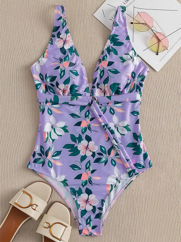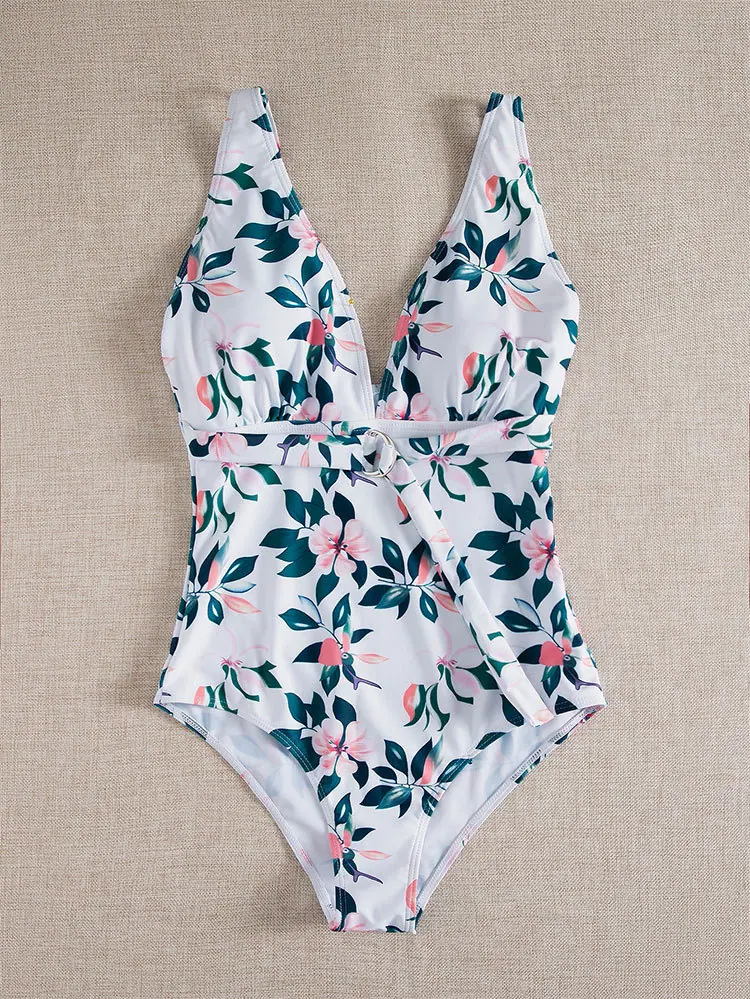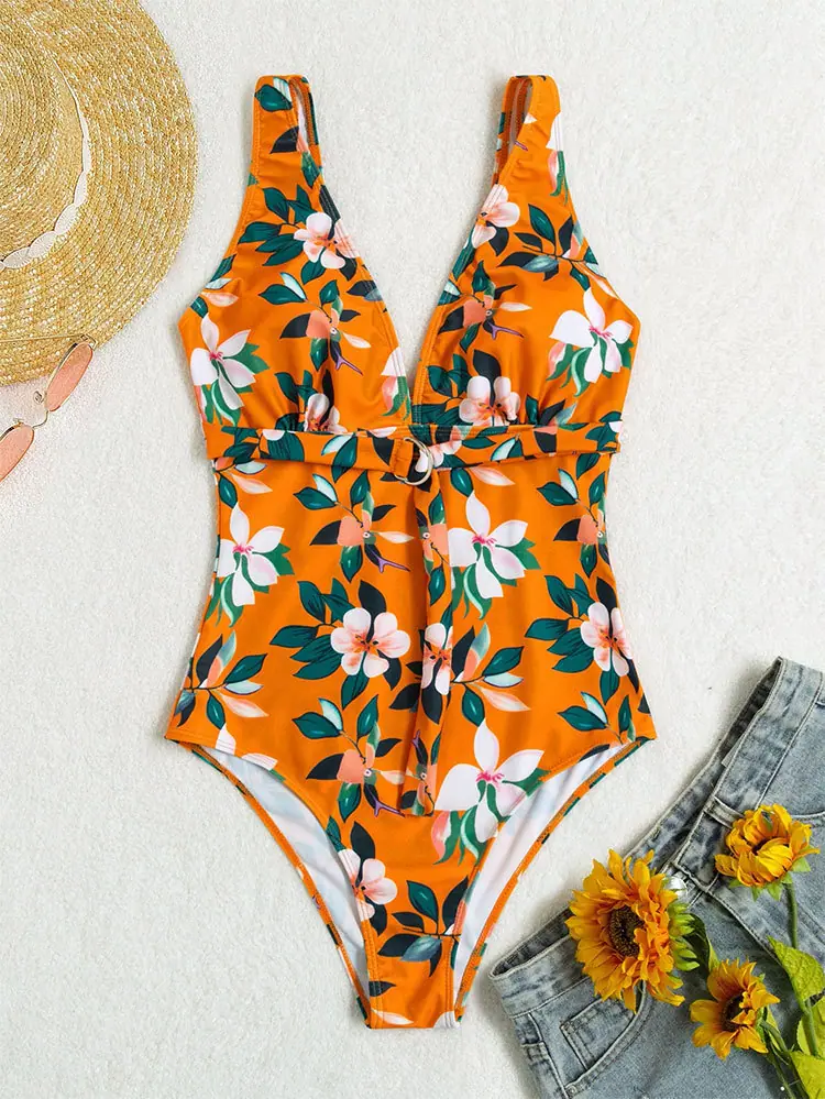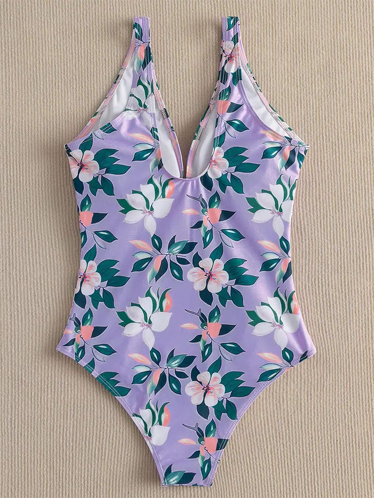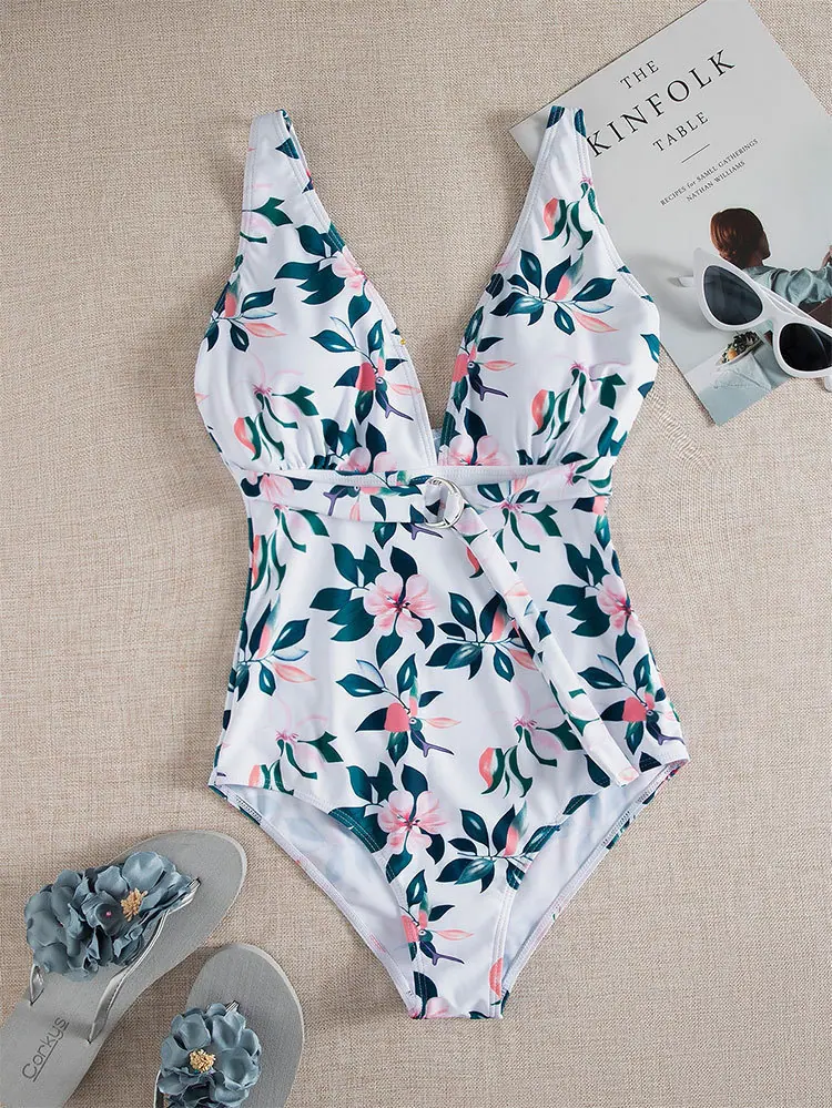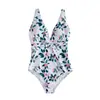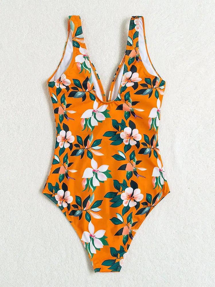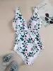 Compra Traje de Baño Entero 2025 Nuevo Europeo y Americano Transfronterizo Color Sólido Escote Profundo V Mujer Cintura Alta Sexy Floral Playa Traje de Baño Bikini al por mayor en Joom.pro
