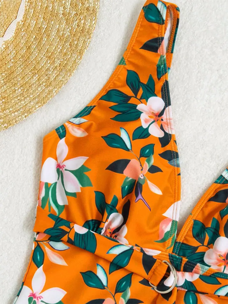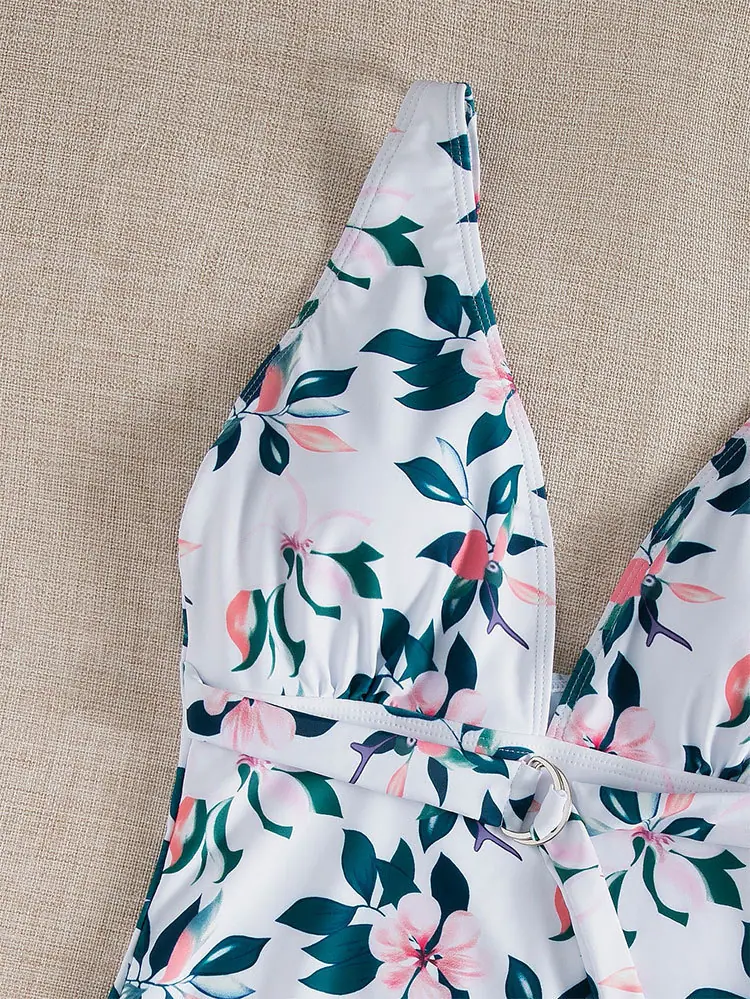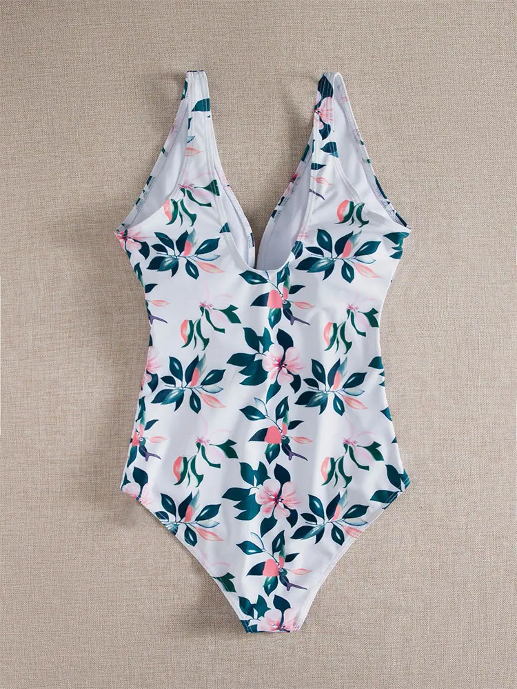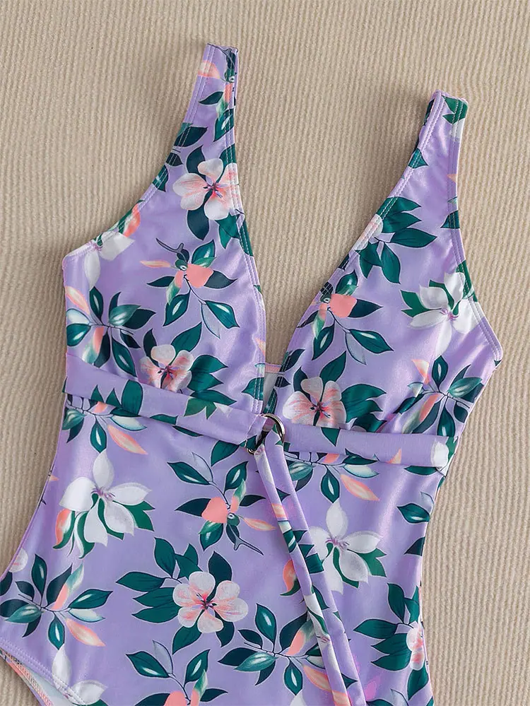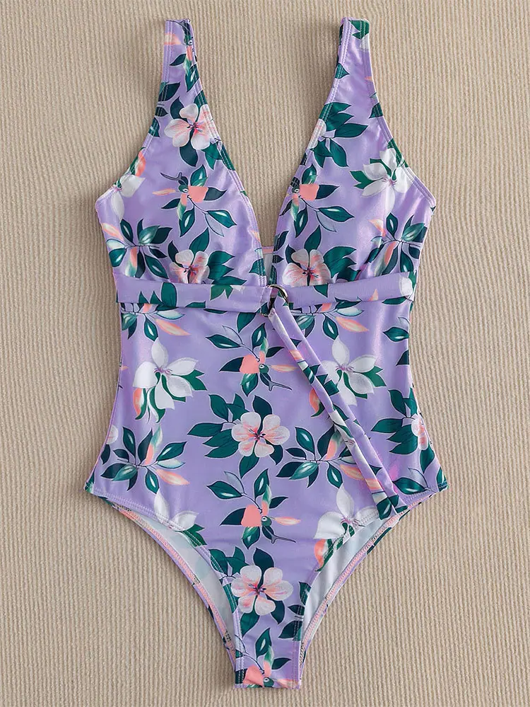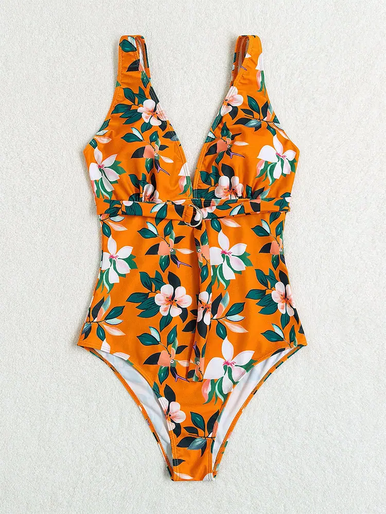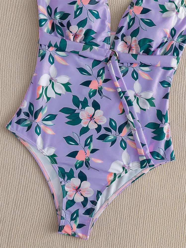 Compra Traje de Baño Entero 2025 Nuevo Europeo y Americano Transfronterizo Color Sólido Escote Profundo V Mujer Cintura Alta Sexy Floral Playa Traje de Baño Bikini al por mayor en Joom.pro
